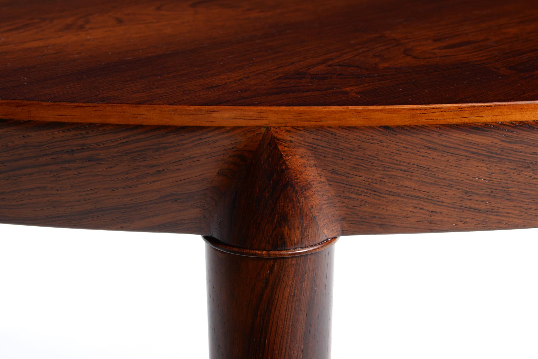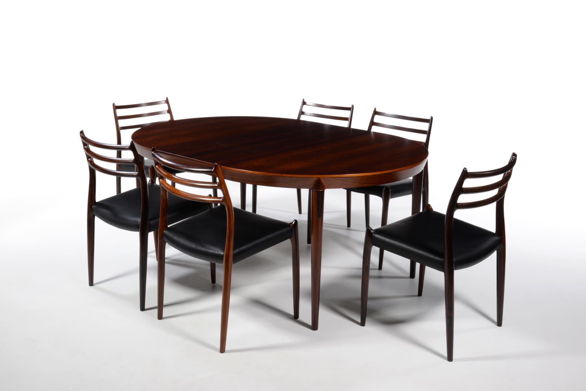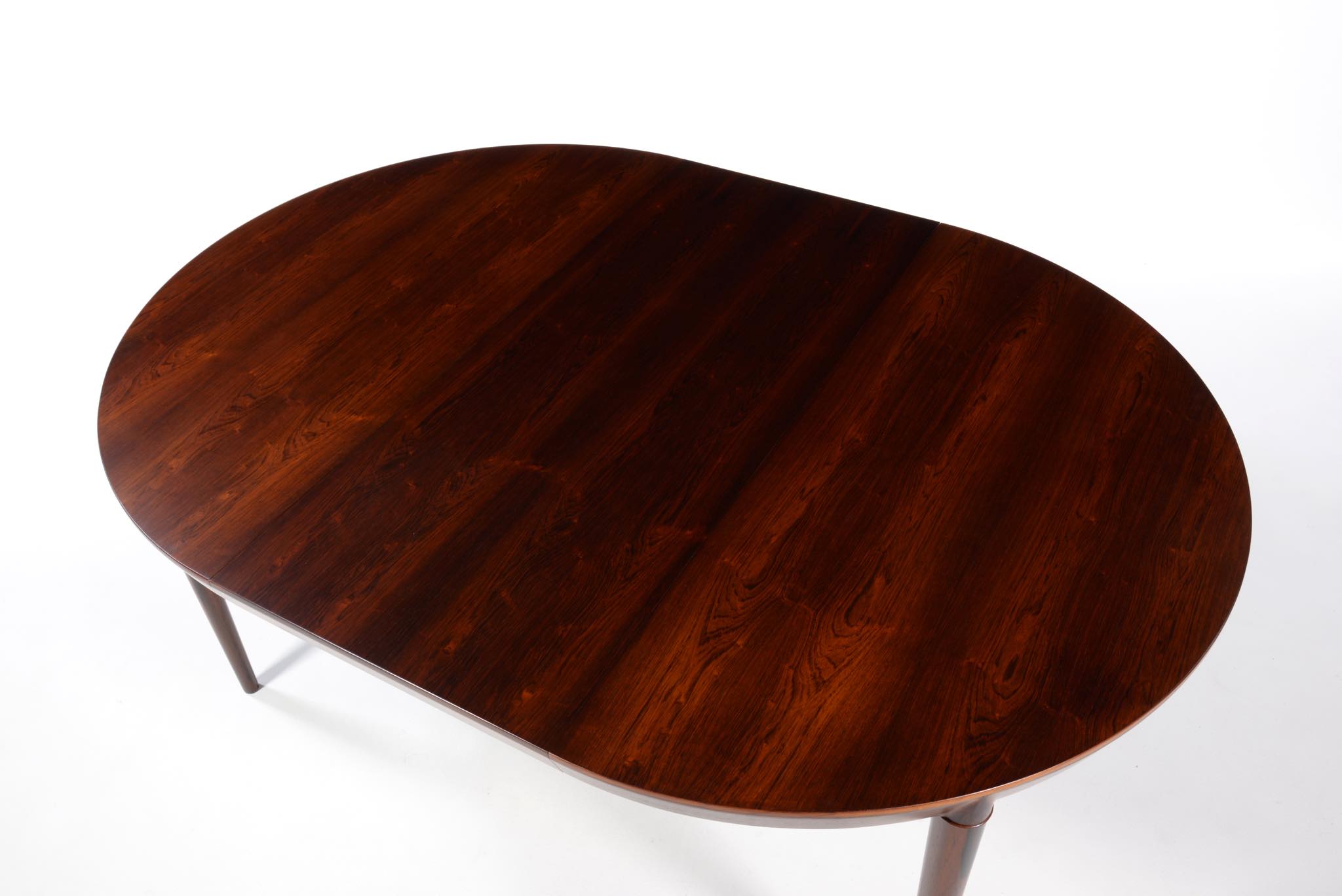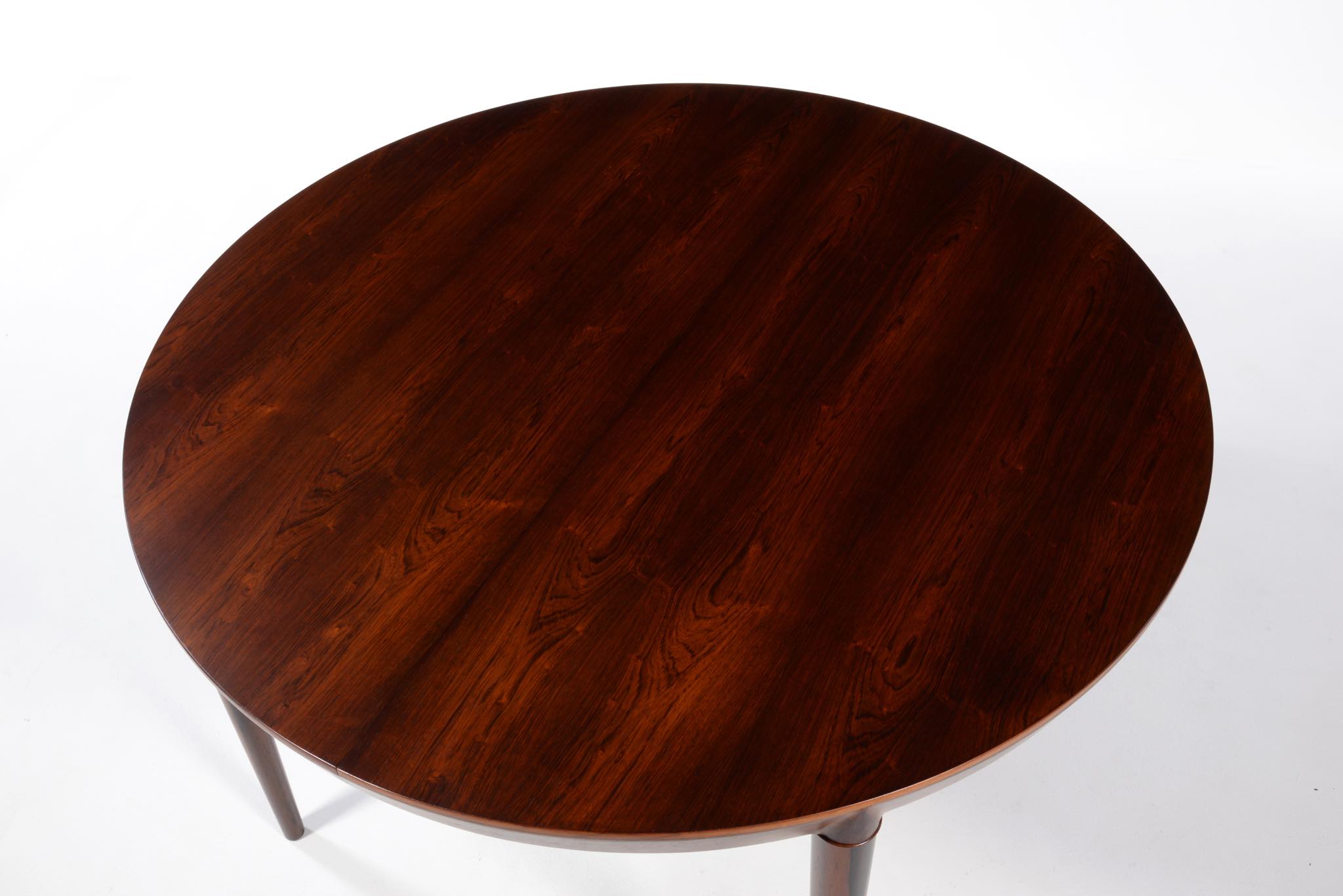 デンマークの家具デザイナー、Erik Riisager Hansen/エリック・リサガー・ハンセンによるダイニングテーブルです。天板と脚との接合に特徴のあるモデルで、工芸的であり、線の細い佇まいに定評があります。素材はブラジル原産と思しきローズウッド材が用いられており、エクステンションリーフは一枚付属します。コンディションは良好です。