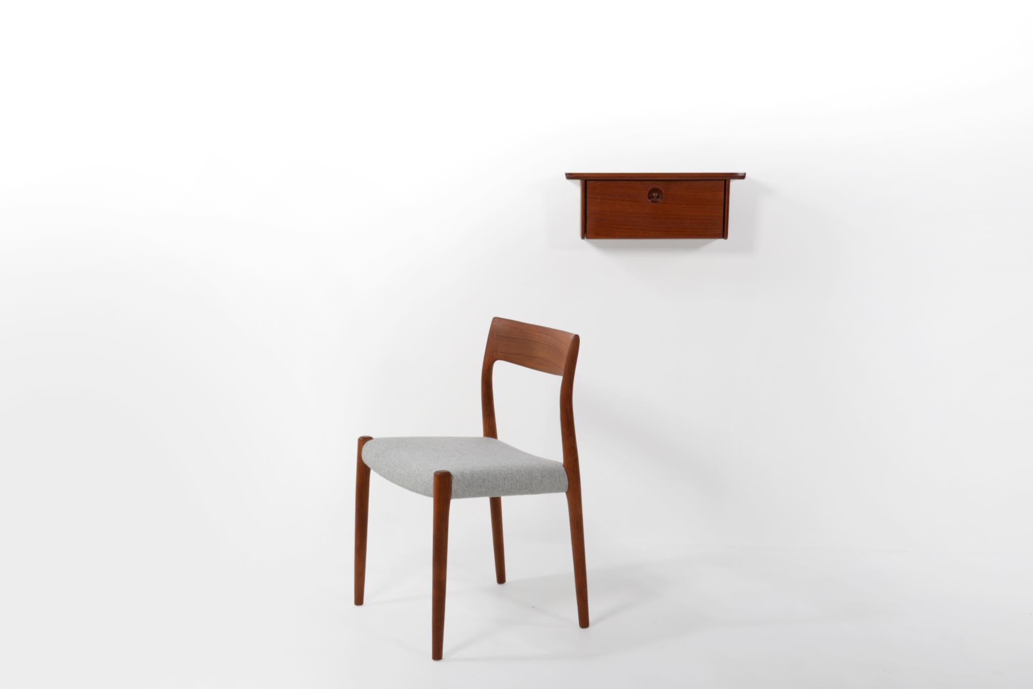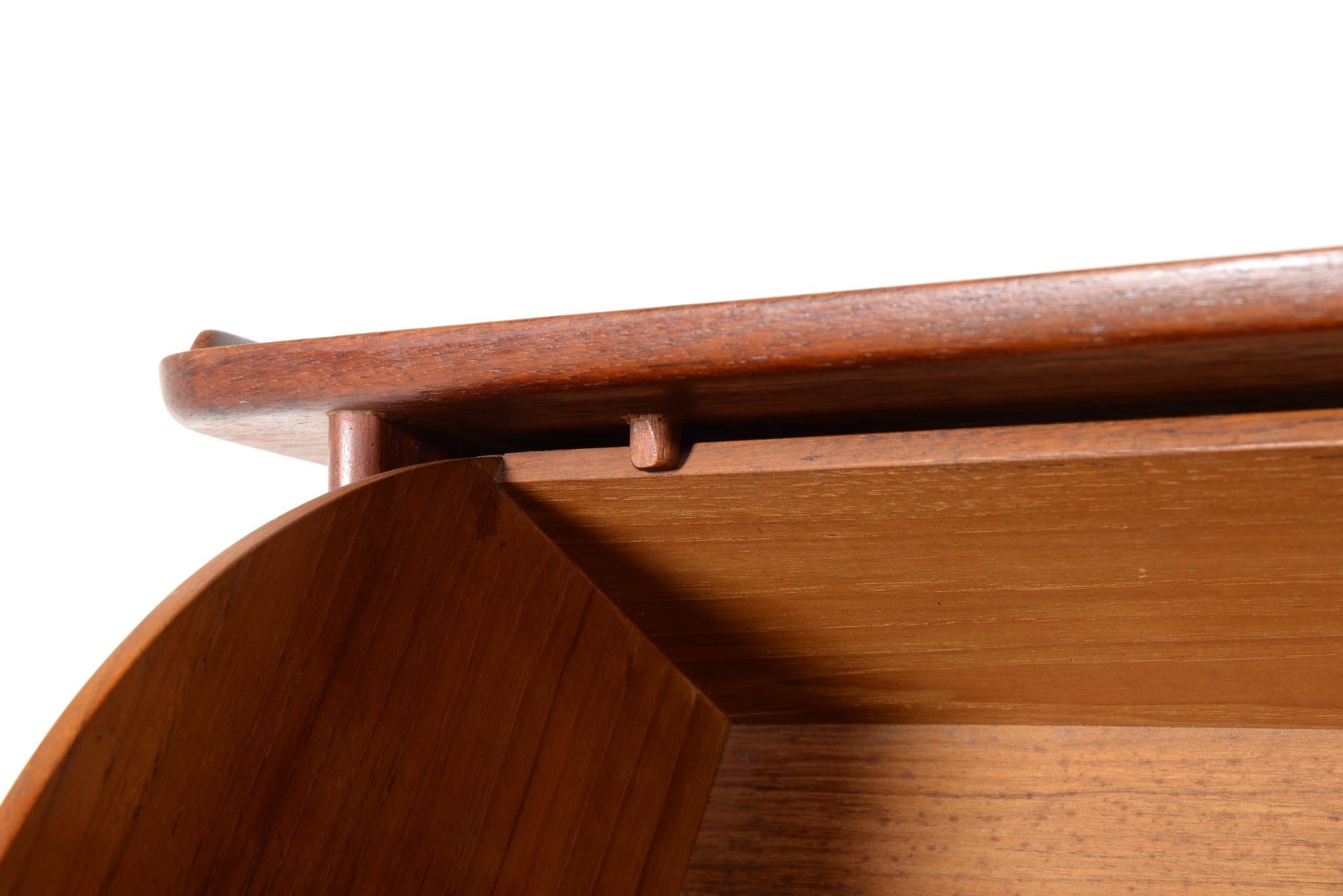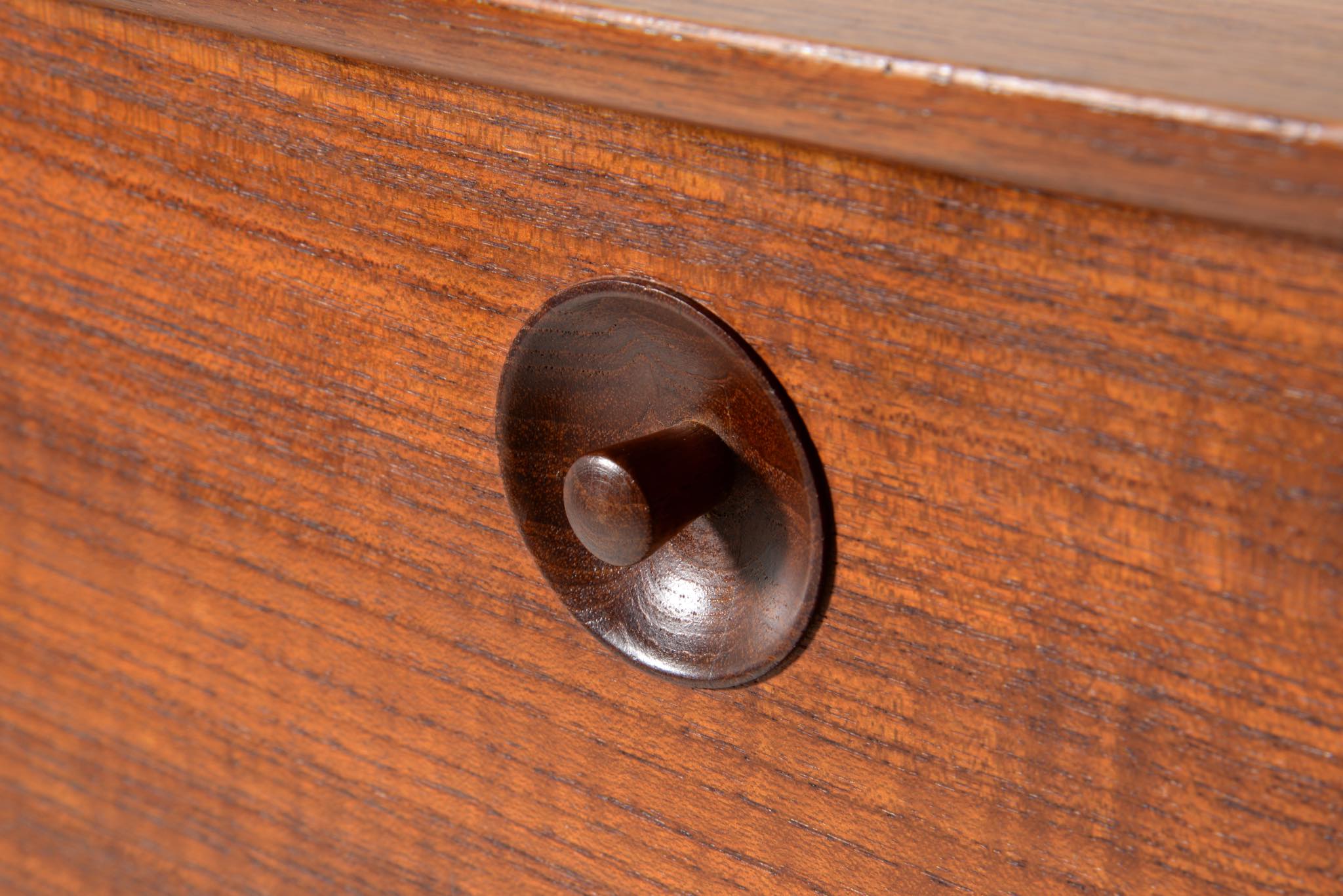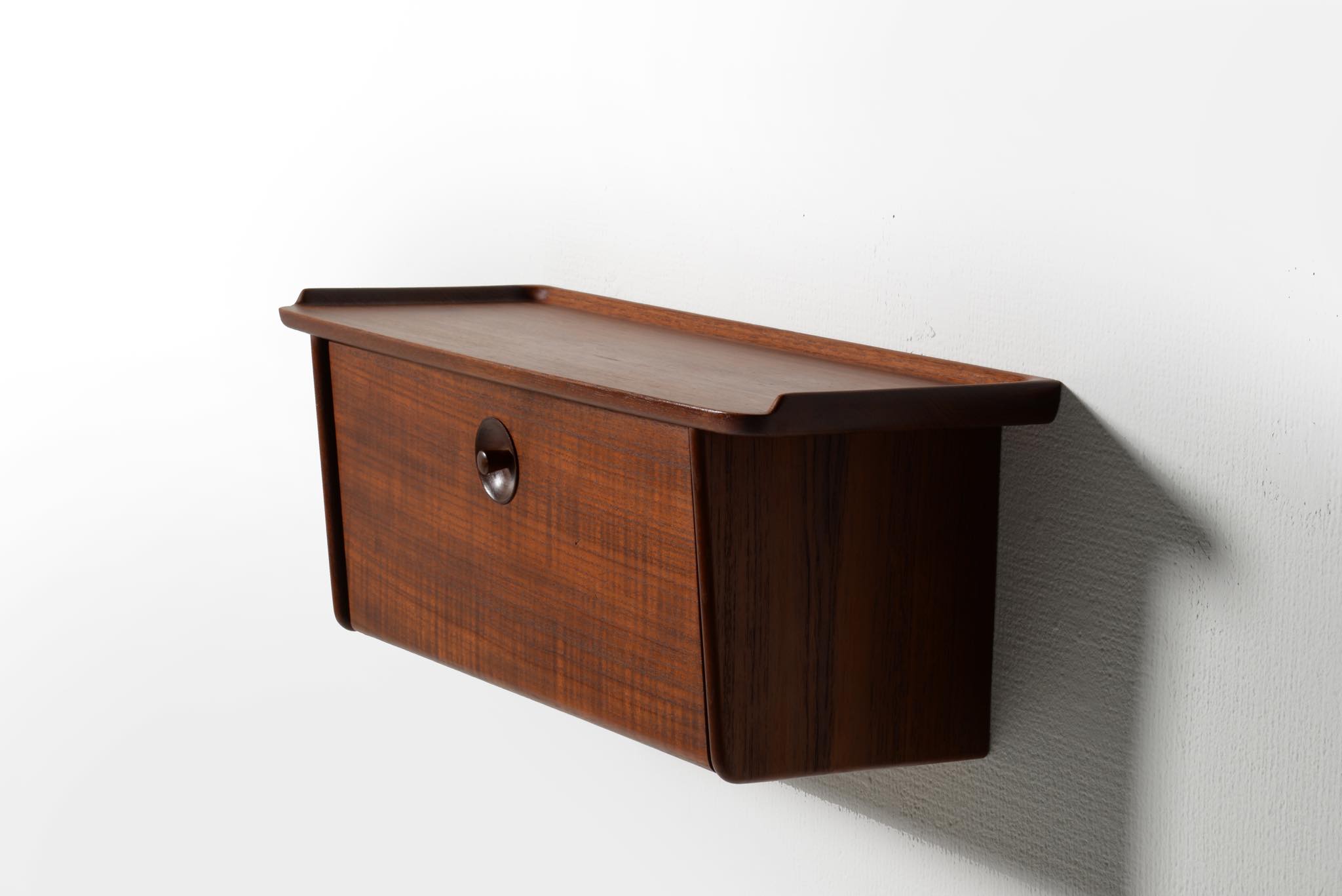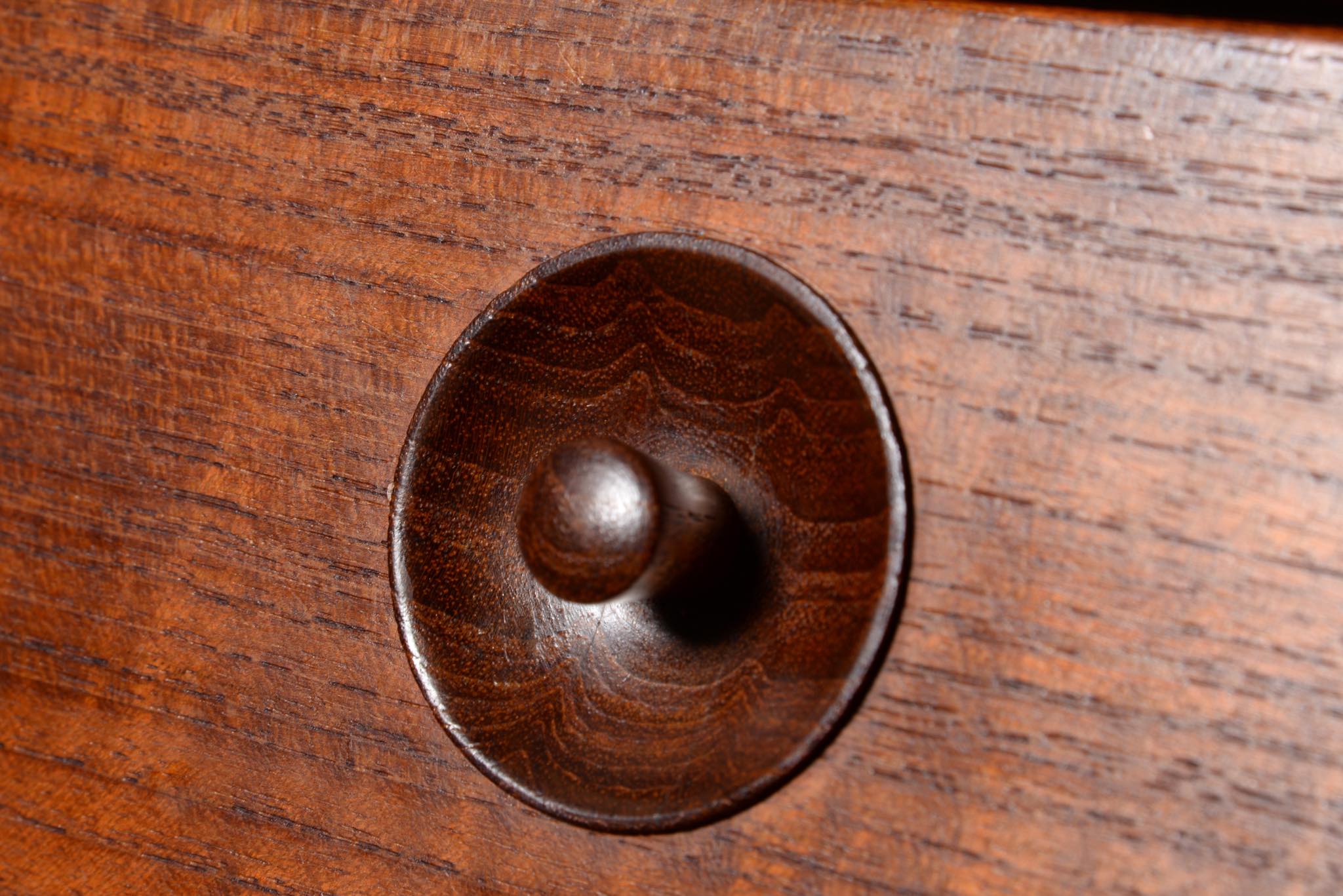上質な家具を手がける工房として知られる、ポントピダンによるコンソールボックスです。1950年代頃に作られたものでしょう。タイ国原産と思しき良質なチーク材が用いられています。玄関に設え、衣類ブラシや家の鍵などを収納したものでしょう。コンディションは良好ですが、正面扉の一部に打痕がみられます。