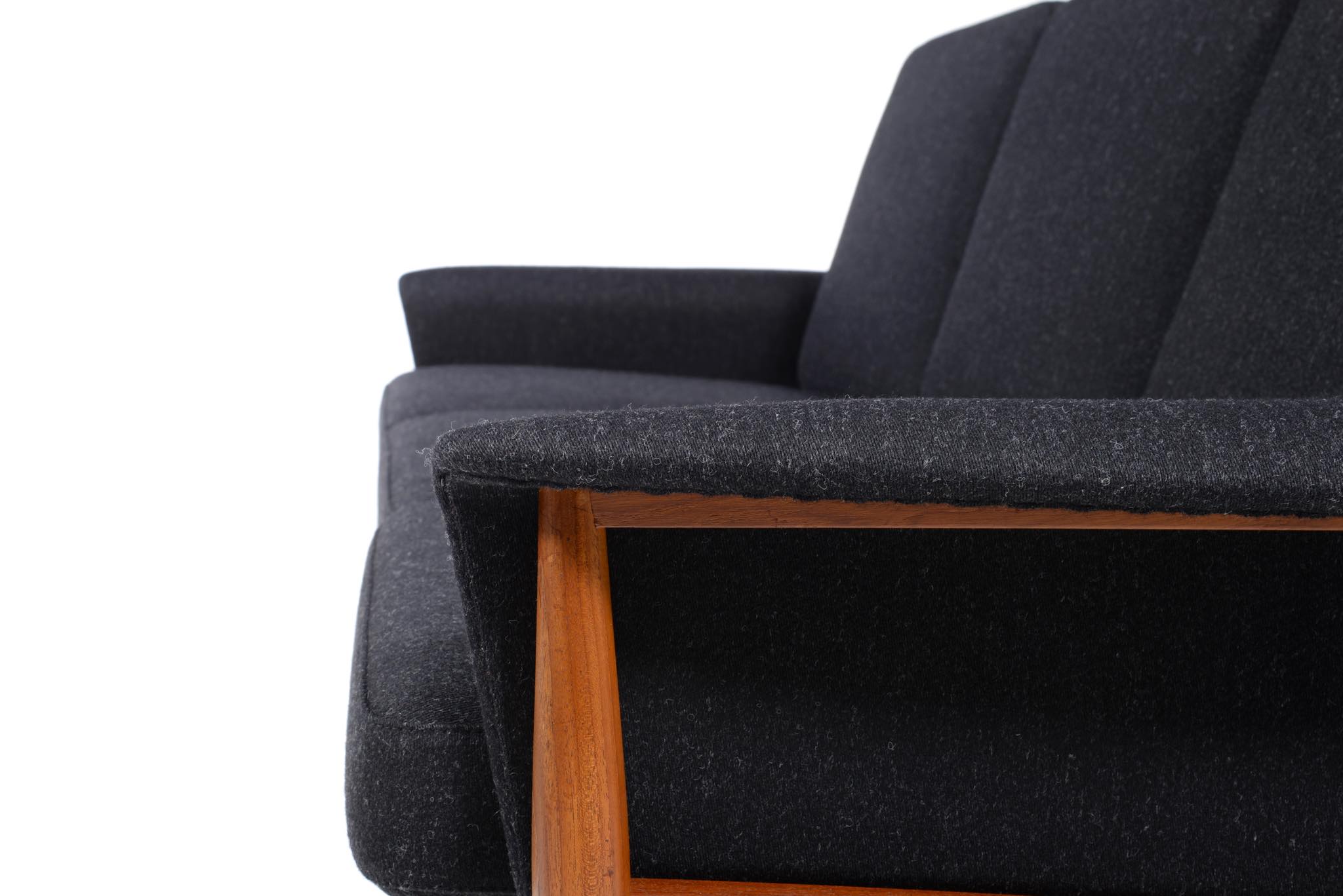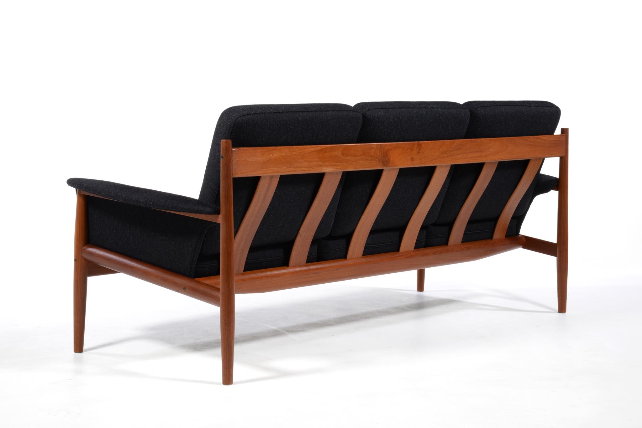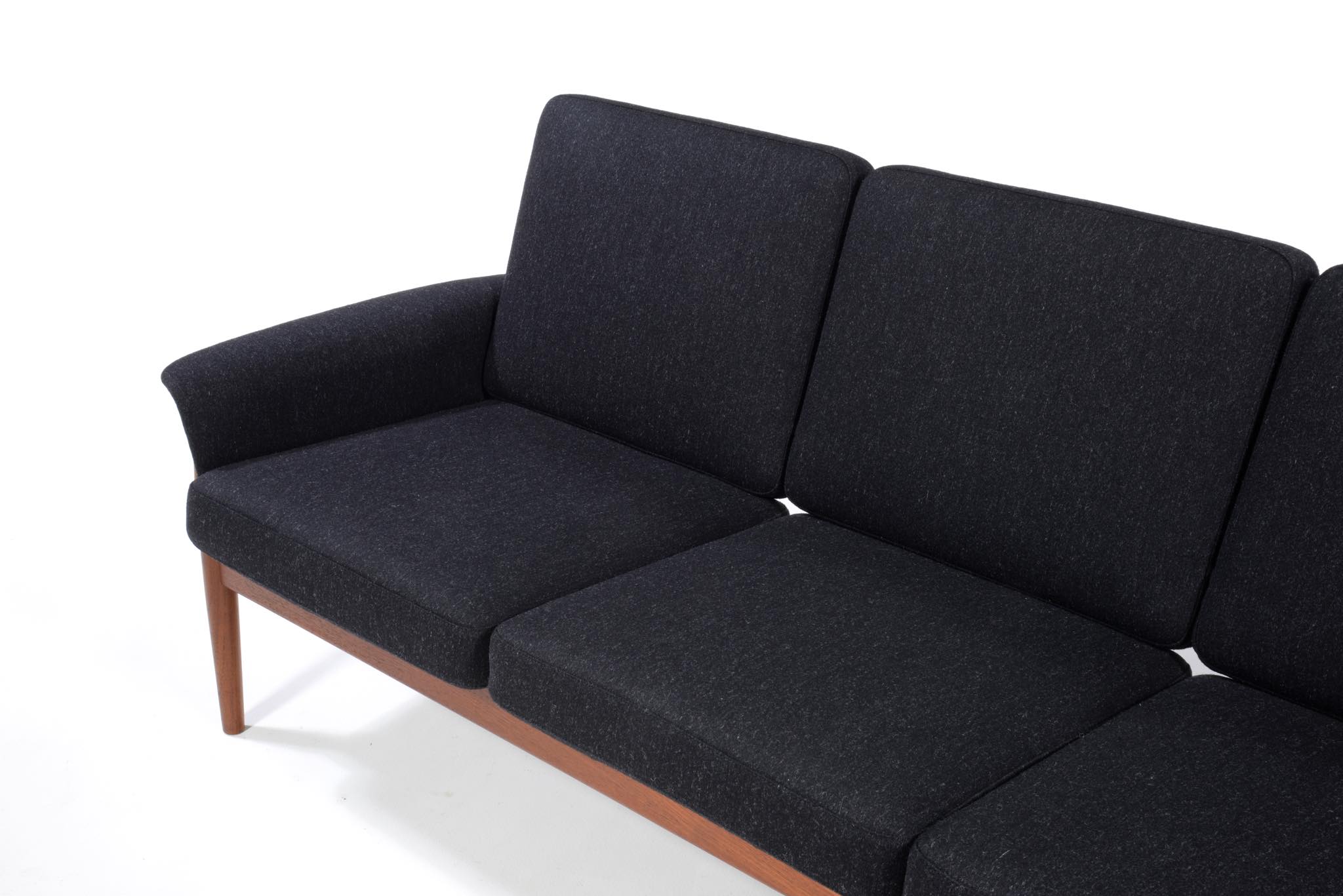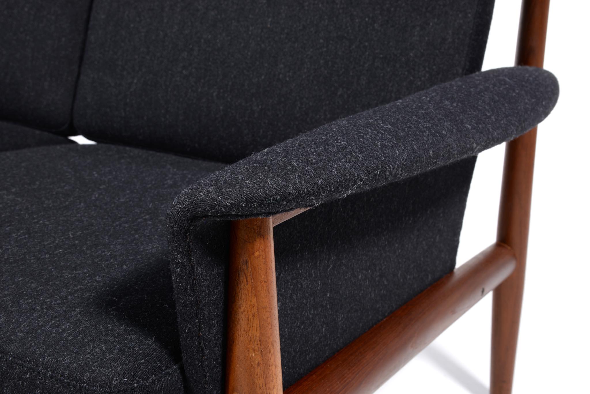 1960年代のデンマークを代表する家具工房、France and Søn/フランス&サンによって作られたソファです。フレームにはタイ国原産と思しき良質なチーク材が用いられ、クッションにはスプリングを内包しています。ホールド感のある座り心地で定評のあるモデルです。ファブリックは新調しきれいな状態です。