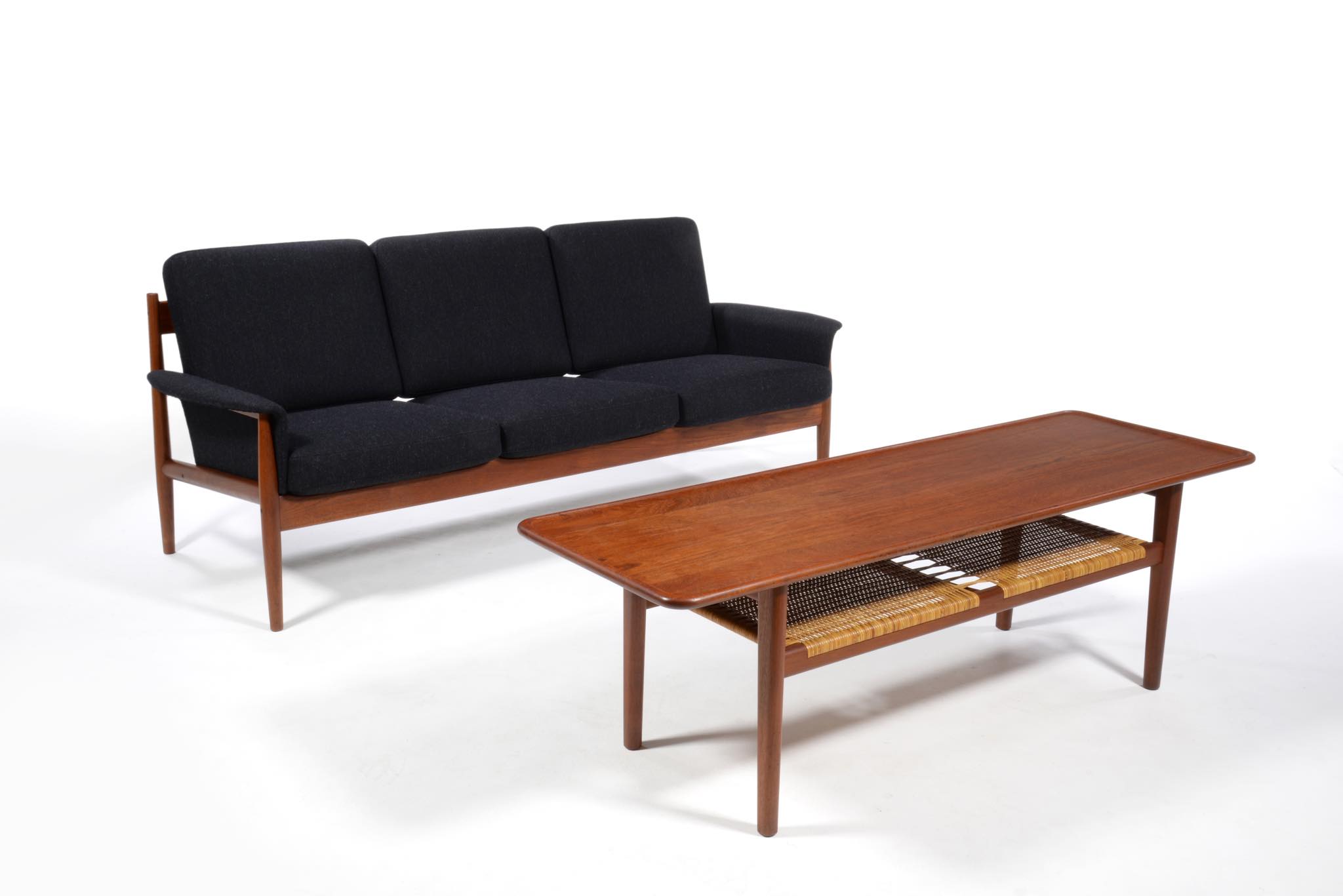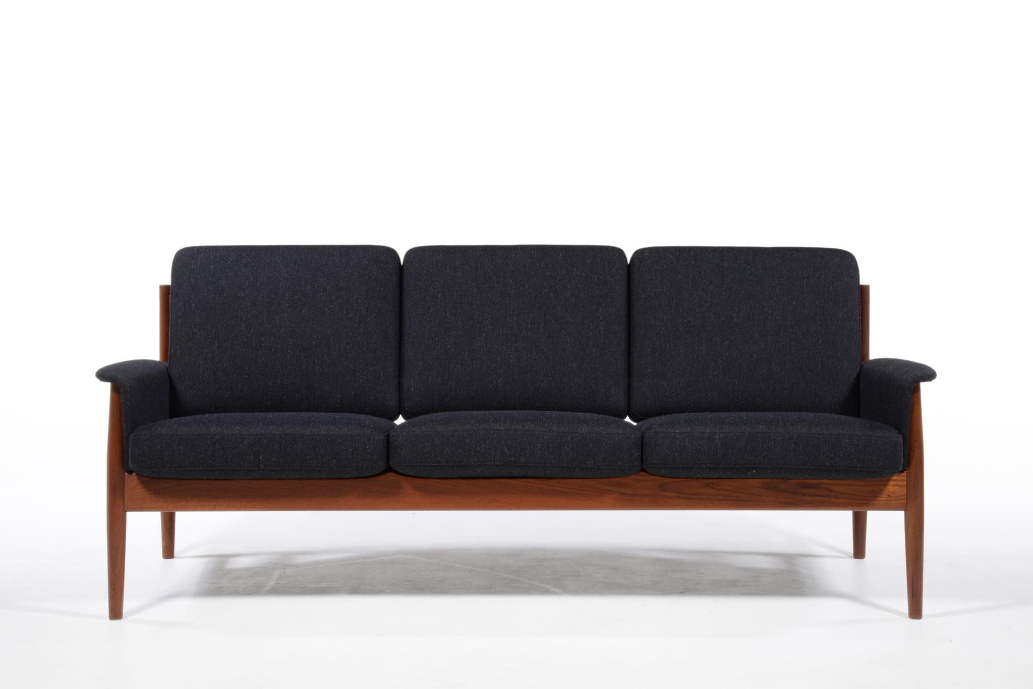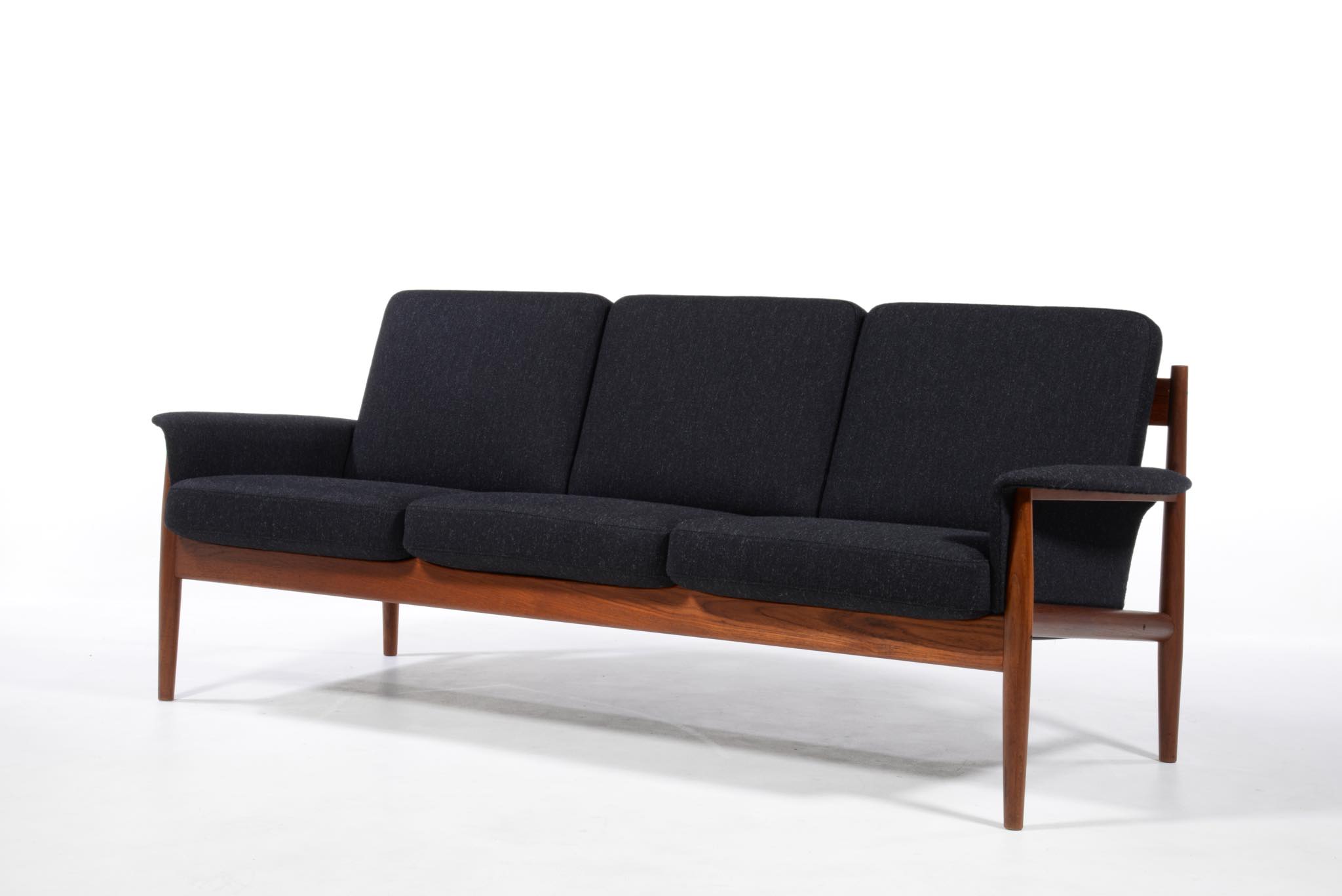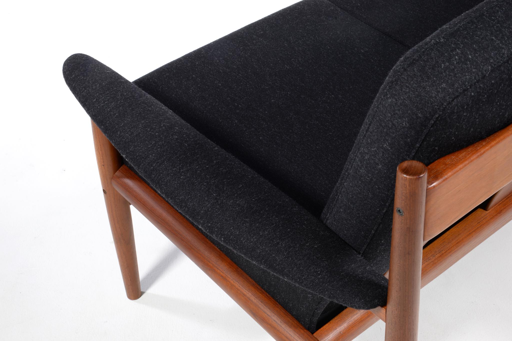 1960年代のデンマークを代表する家具工房、France and Søn/フランス&サンによって作られたソファです。フレームにはタイ国原産と思しき良質なチーク材が用いられ、クッションにはスプリングを内包しています。ホールド感のある座り心地で定評のあるモデルです。ファブリックは新調しきれいな状態です。