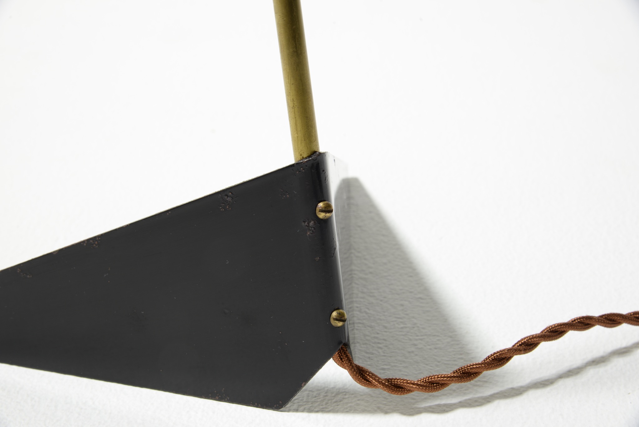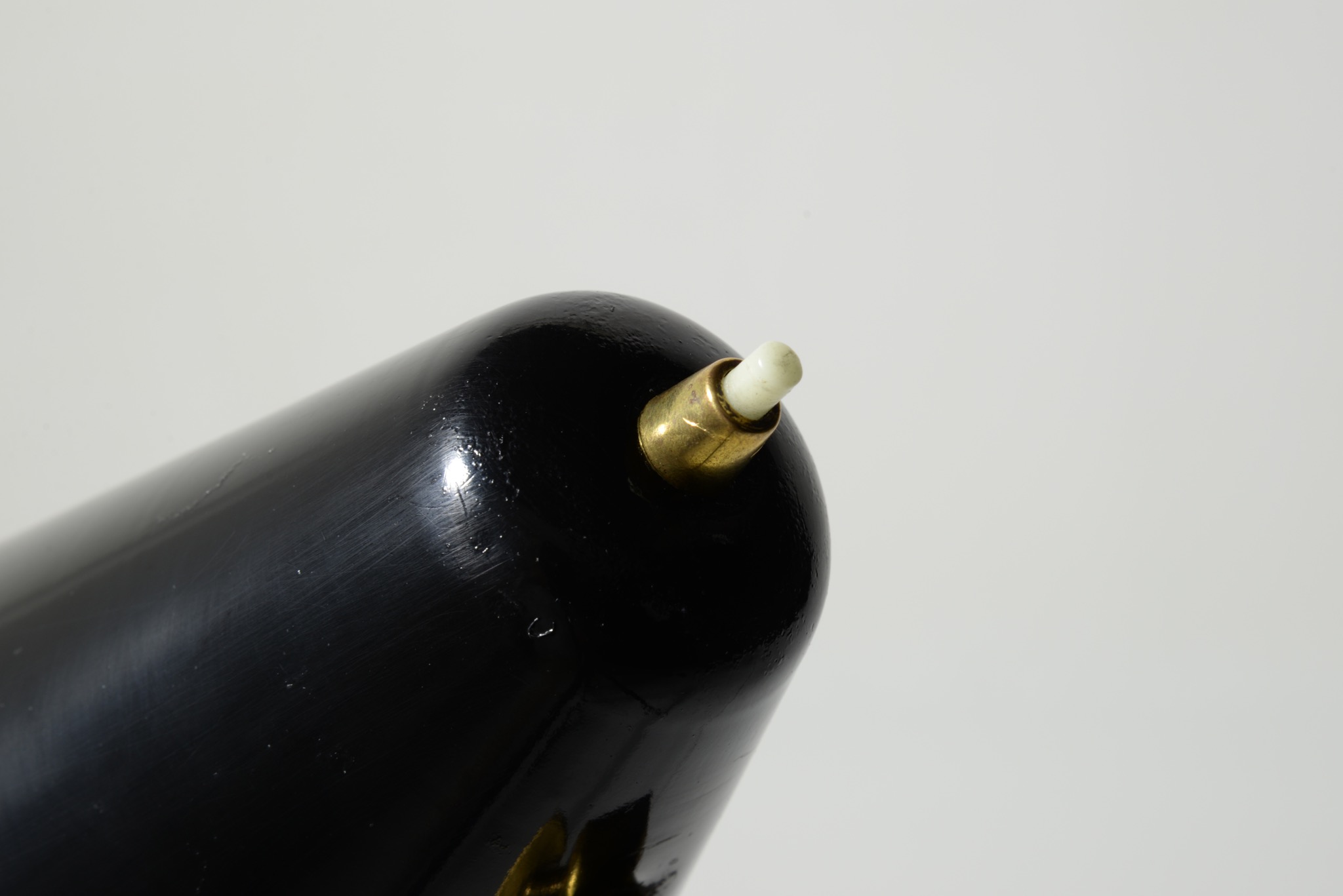 Black lacquered metal with brass stem