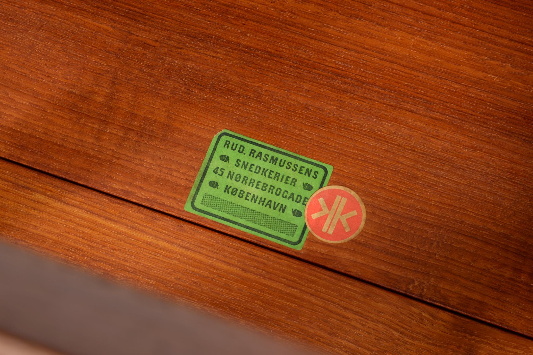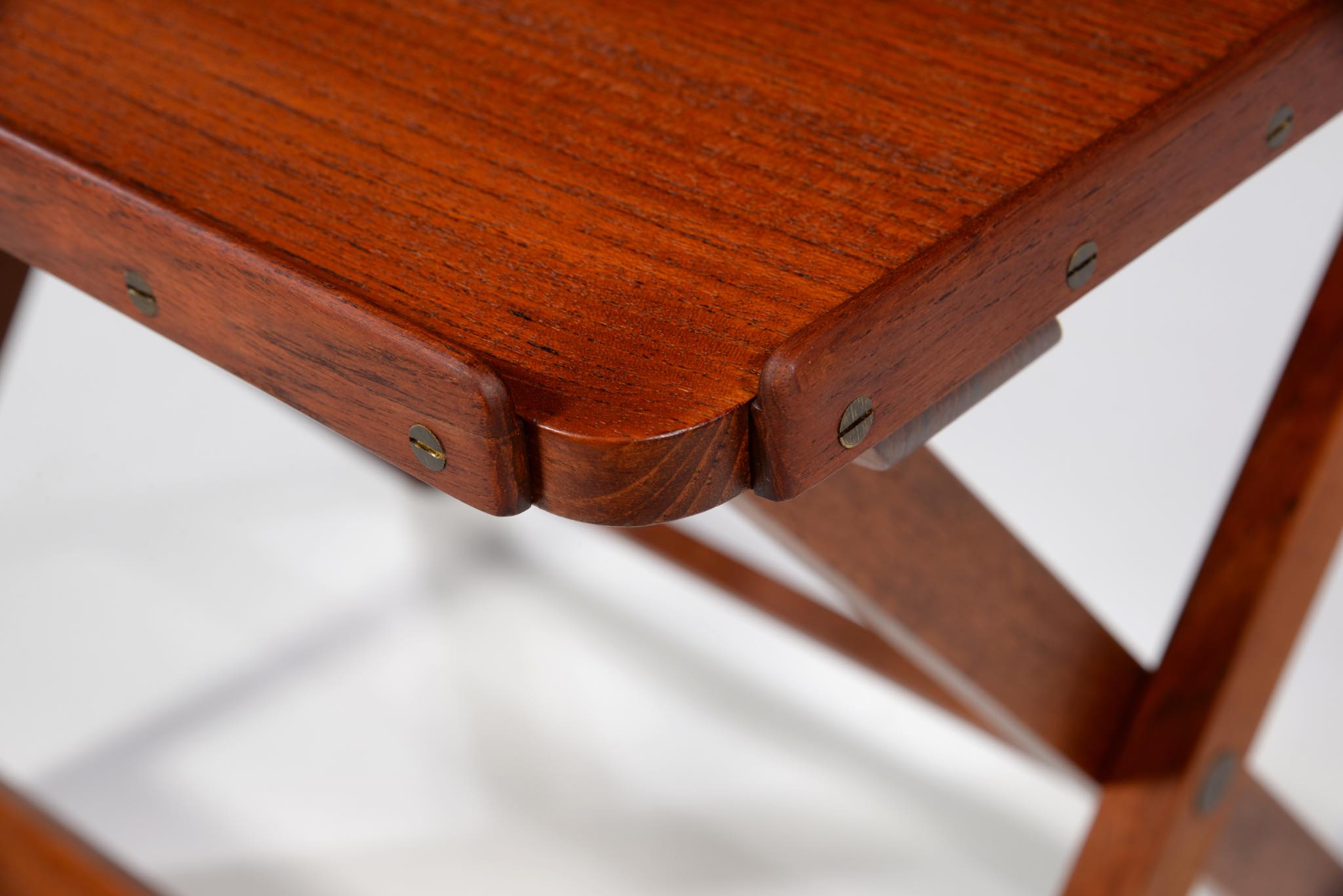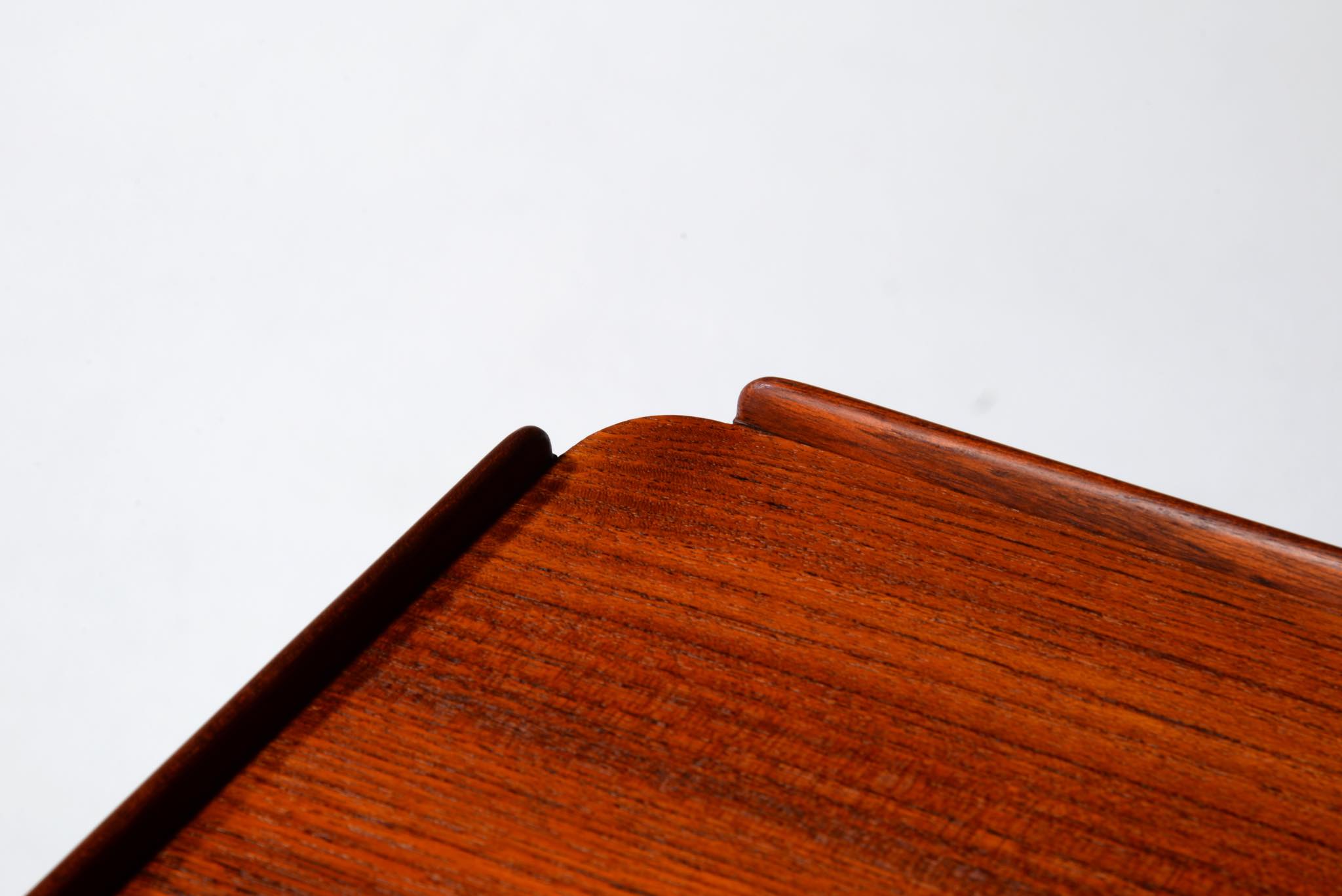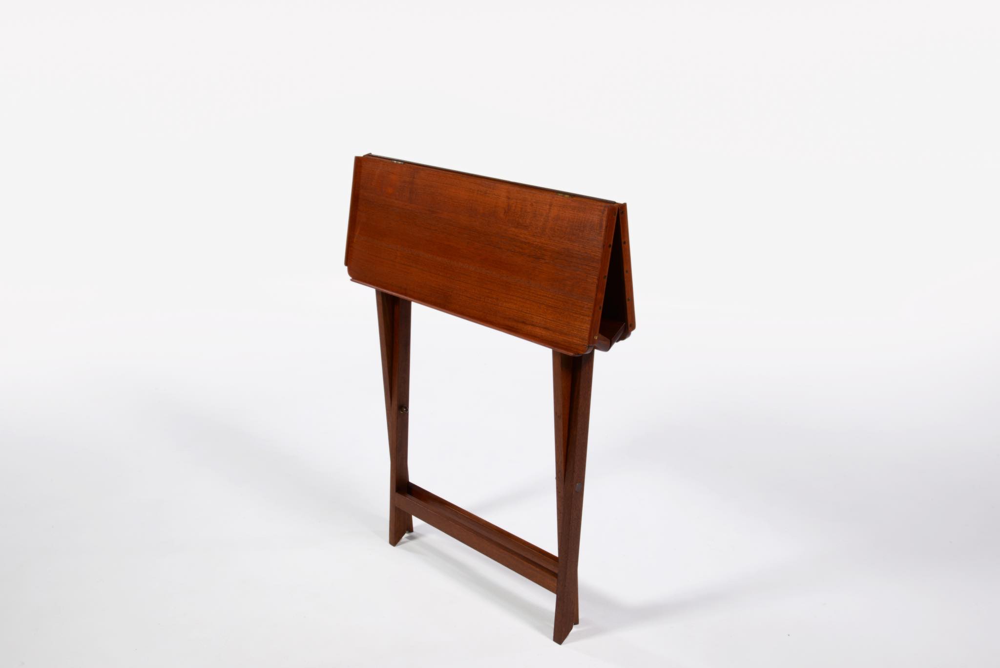 「デンマーク近代家具デザインの父」と称され、デザイナーでプロフェッサーを務めた、Kaare Klint/コーア・クリントによるフォールディングテーブルです。フォールディング式のシェーズロングと共にデザインされたもので、使用しないときは畳んで仕舞える構造のものです。良質なチーク材に真鍮の蝶番やビスを用いて組まれています。わずかに修復した部分がございますが、とても綺麗な状態です。