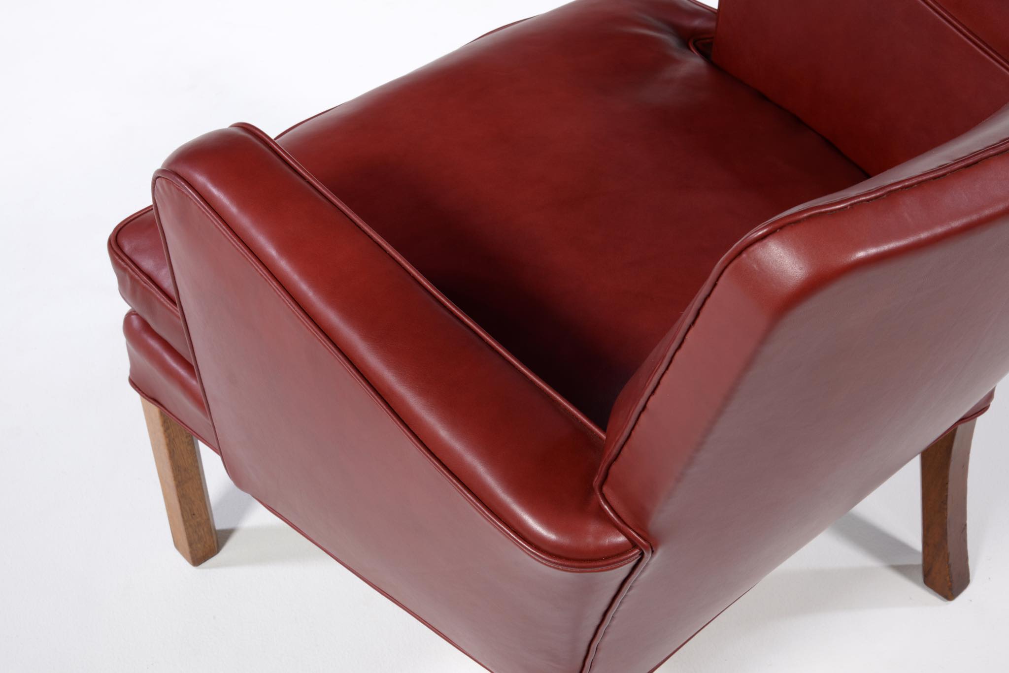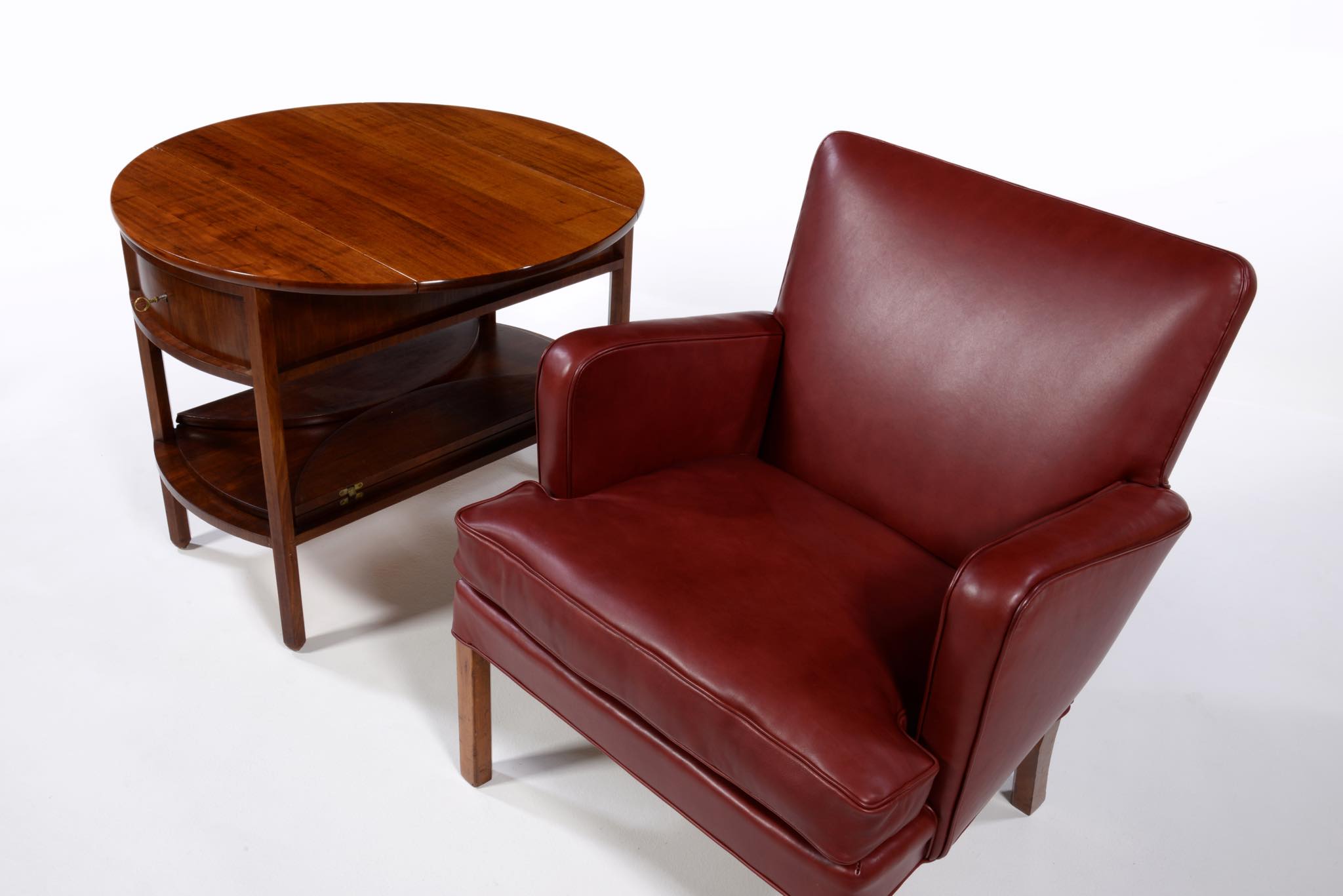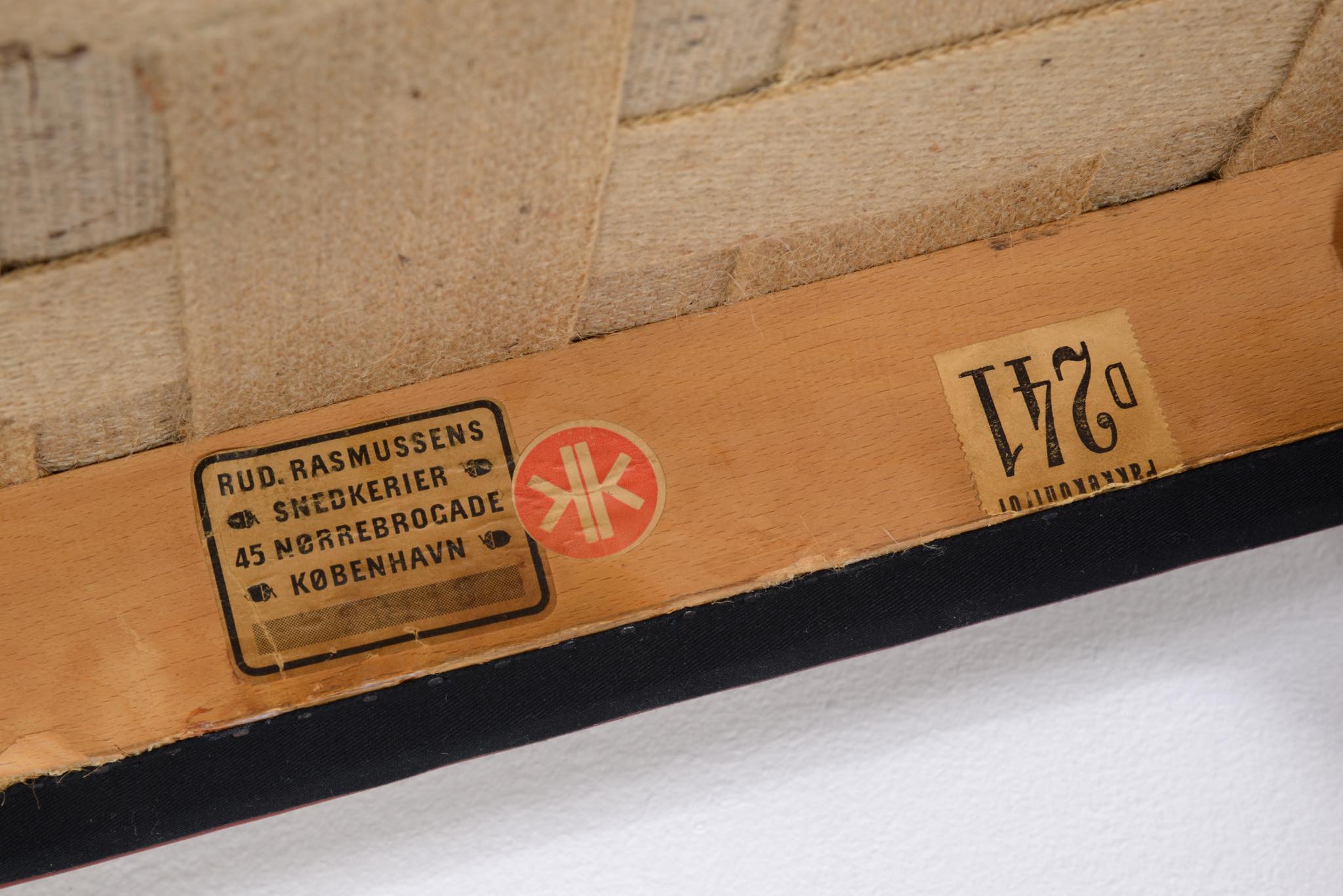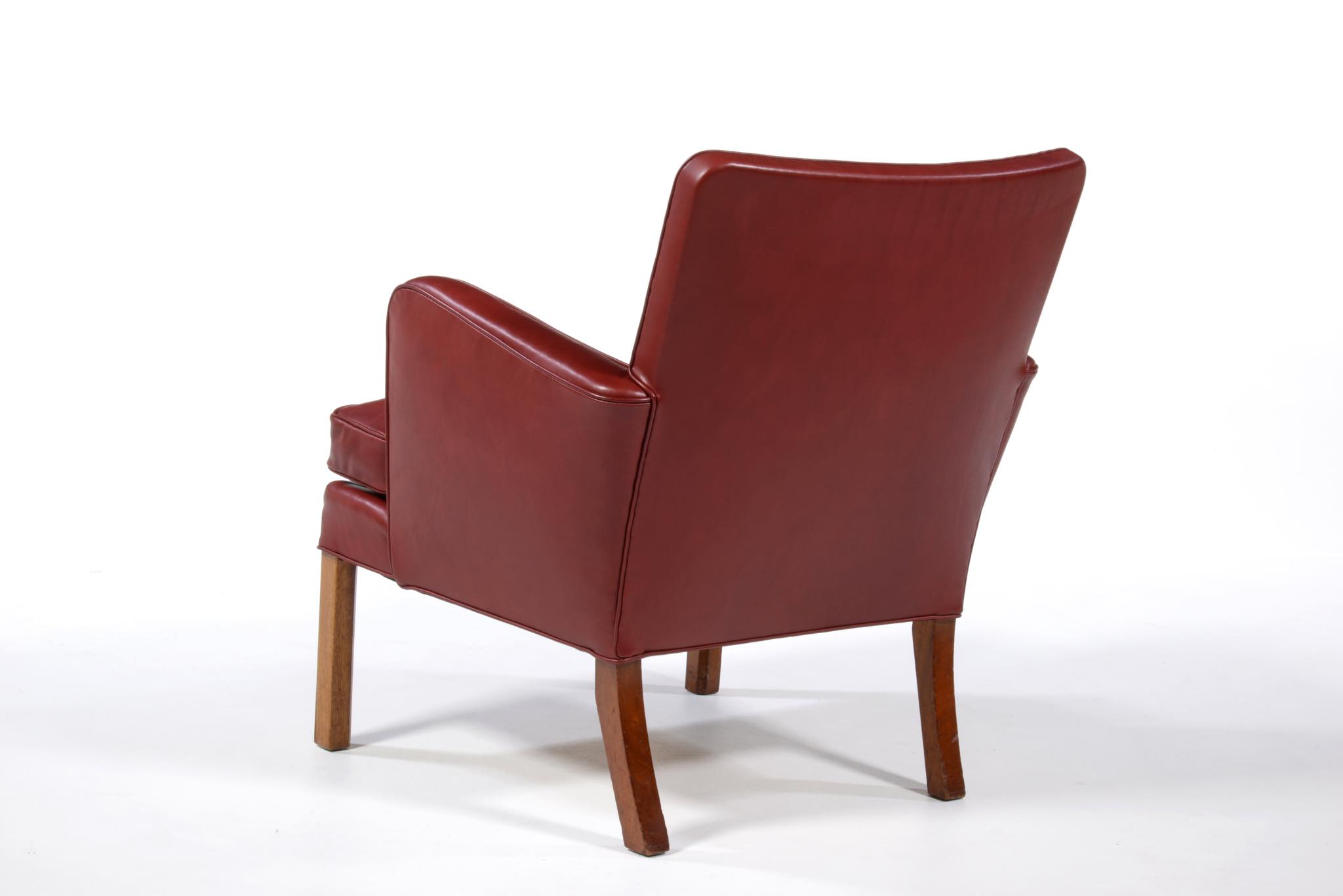 「デンマーク近代家具デザインの父」と称され、デザイナーでプロフェッサーを務めた、Kaare Klint/コーア・クリントによる "model 5313" イージーチェア初期タイプです。1936年にデザインされ、1937年開催のコペンハーゲンキャビネットメーカーズギルド展にて発表されたモデルです。1960年まで製作されていたようですが、こちらのイージーチェアは比較的早い時期に作られたものと思われます。デンマークのソーレンセンレザー社の皮革にて張り替えを行い、シートに内包された羽毛クッションも新調しました。シートクッションは使い込むうちに馴染んでくるでしょう。