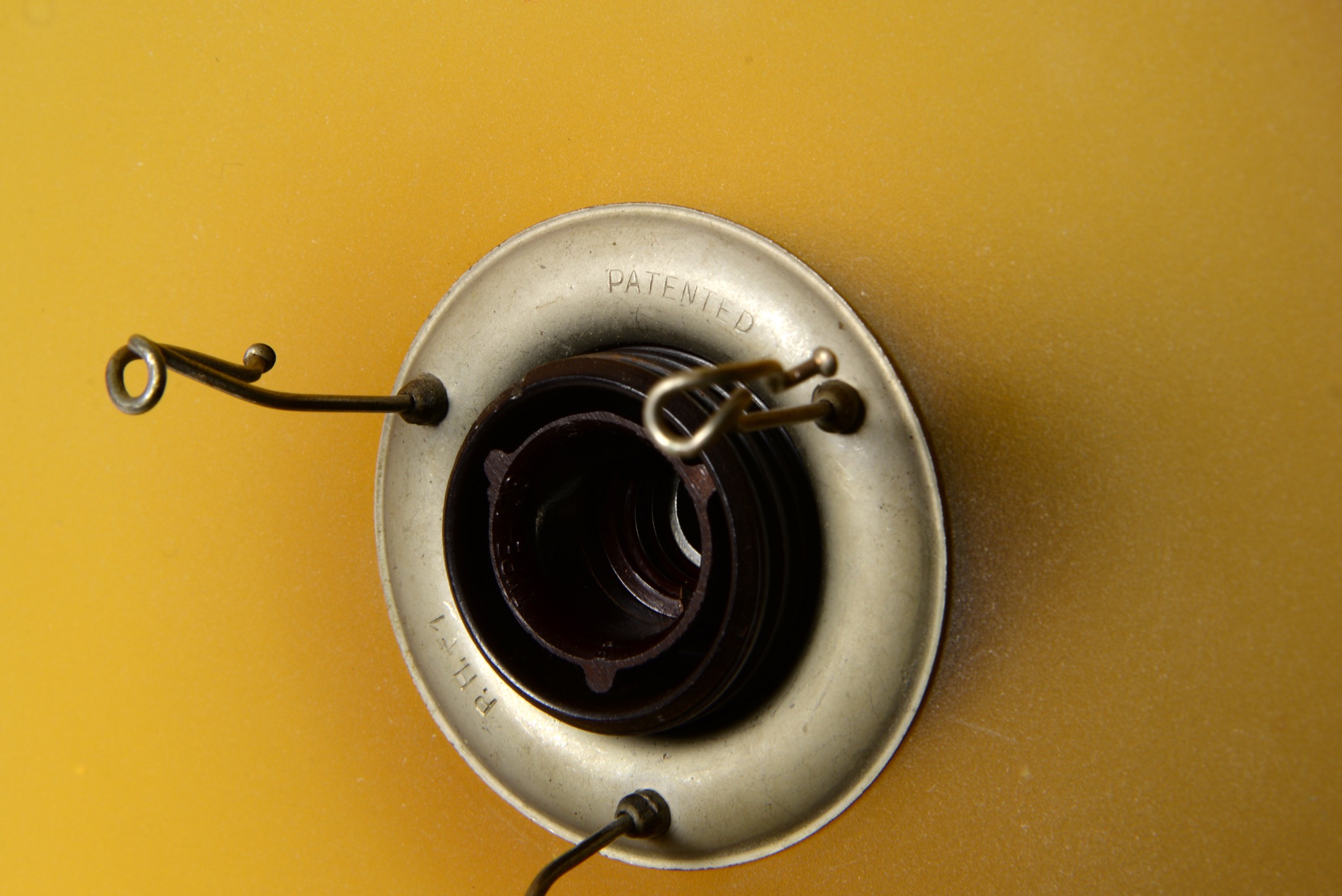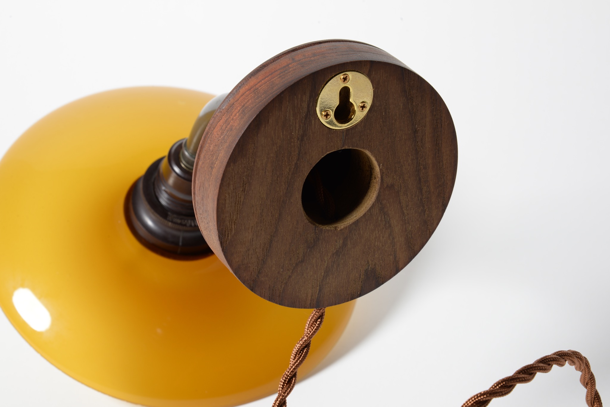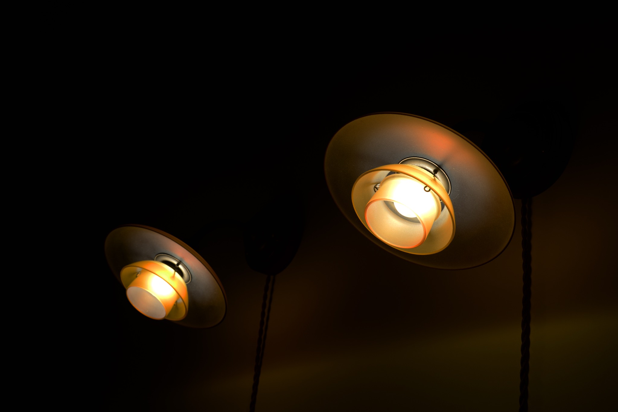 デンマークのデザイナー、Poul Henningsen/ポール・ヘニングセンによってデザインされたPH2/1ウォールランプ "Nr.4821" 一対です。1930年代に作られたものでしょう。アップライトピアノを設置した壁の両サイドに取り付けるなど、壁面や柱に取り付けるためのランプです。銅製のアームにベークライトのソケットボックス、アンバーガラスのシェードが備わります。チーク材の台座は当店で作成しました。ボトムボウルは備わりません。大きなダメージは無くきれいな状態です。