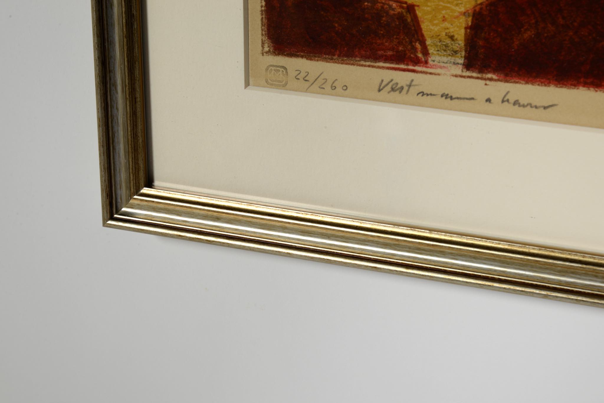 Lithograph in colors in original frame with new mat