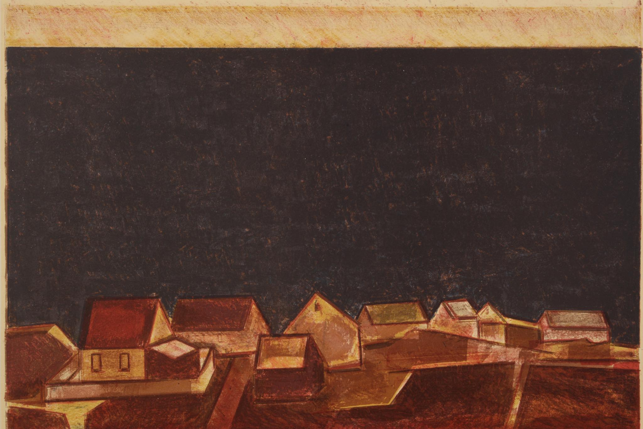 デンマーク人の画家、グラフィックアーティストのジャック・カンプマンは、デンマーク人の両親のもとイギリス・ロンドンに生まれ、第二次世界大戦後、デンマーク領のフェロー諸島に定住し、島に見られる起伏のある荒涼とした風景や集落を描き続けました。画家としての活動に留まらず、美術教師として教壇にも立ちました。