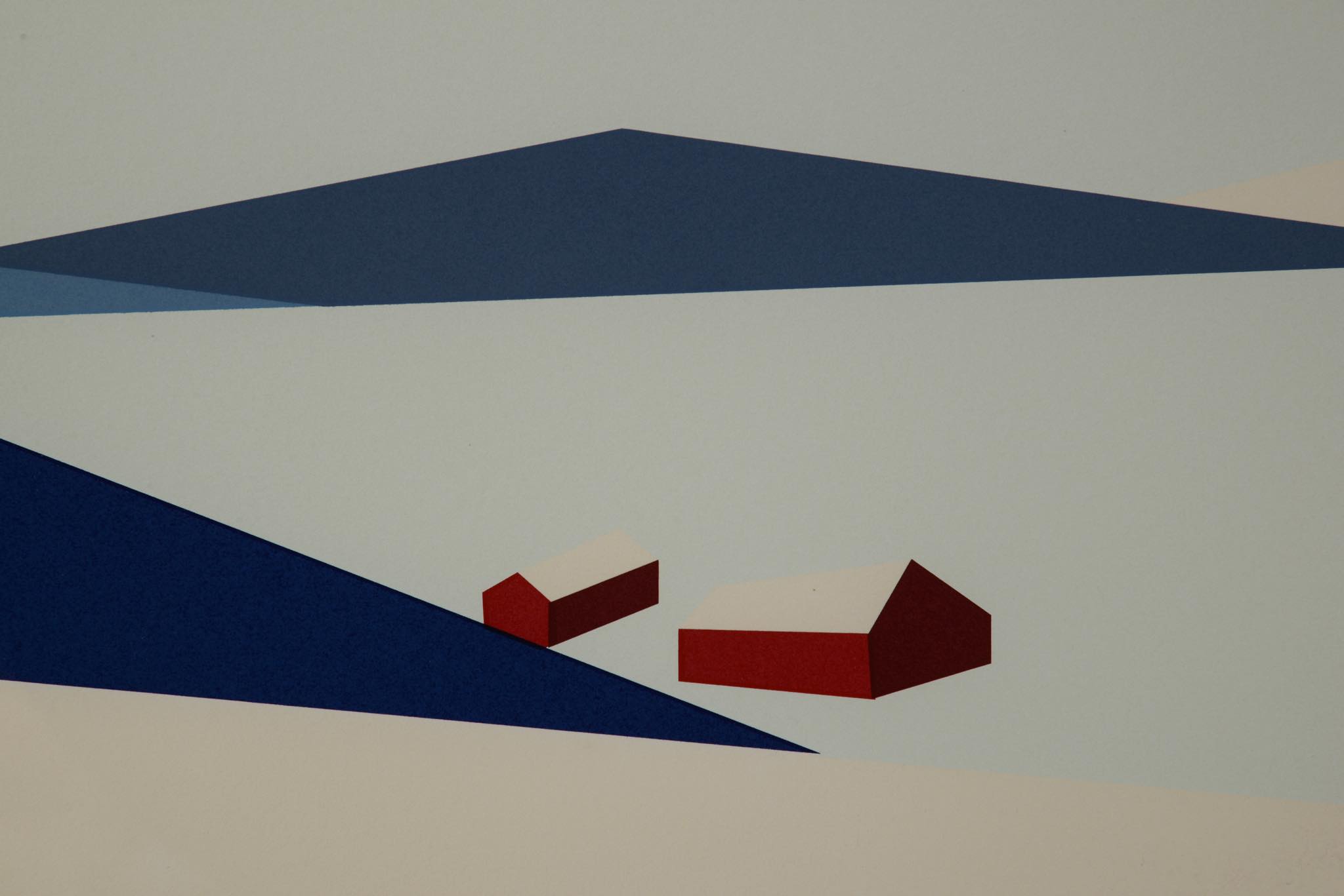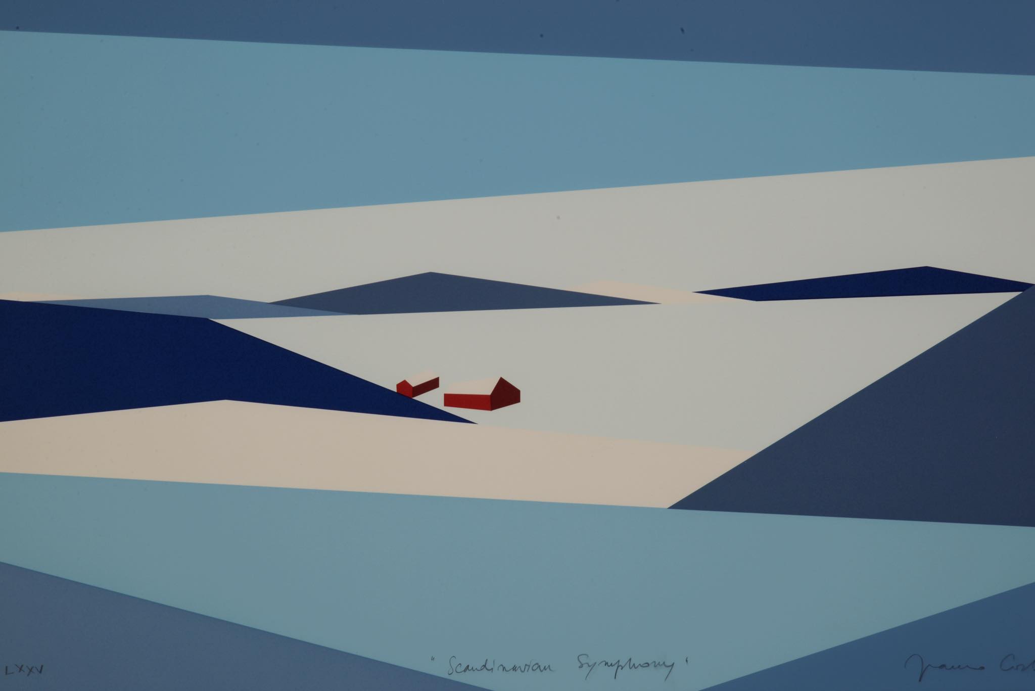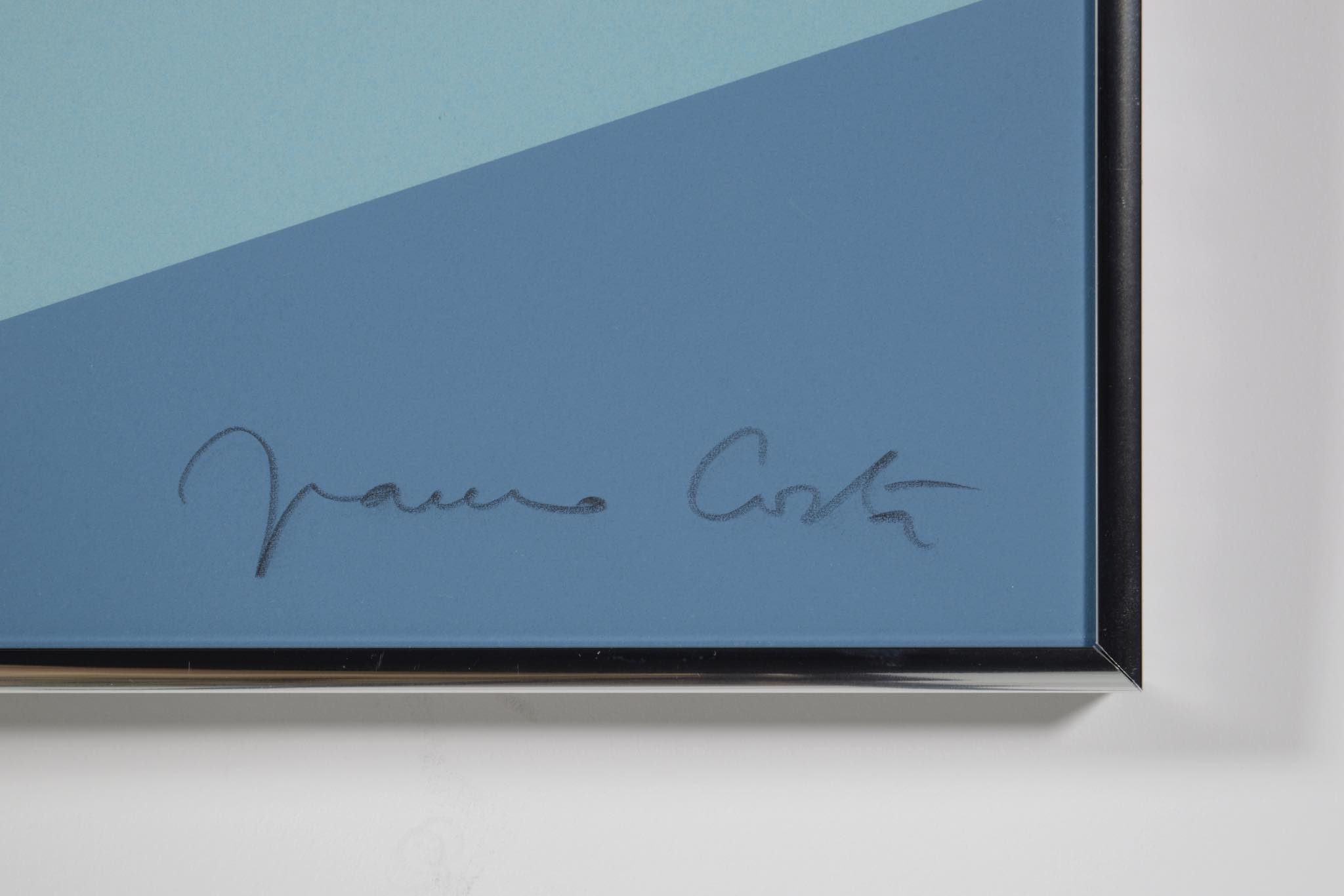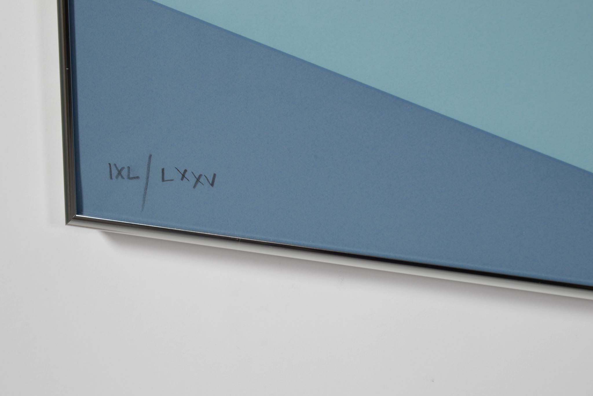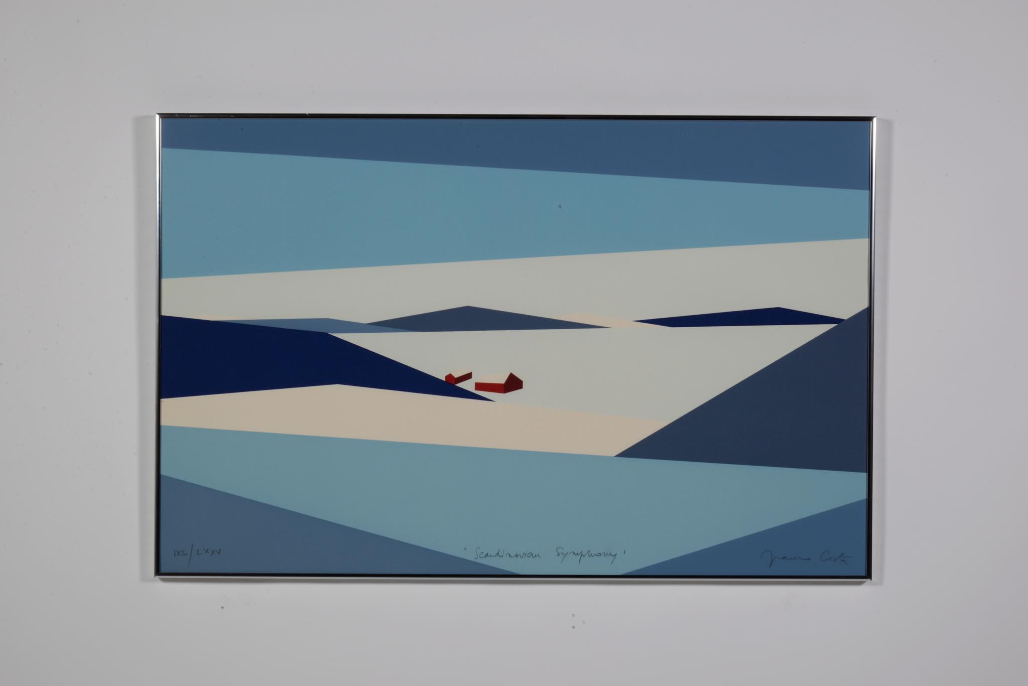 イタリアのアーティスト、Franco Costa/フランコ・コスタによるシルクスクリーン作品です。「Scandinavian Symphony/スカンジナヴィアの交響曲」と題された作品で、氏が北欧に滞在した1980年代以降に刷られたものと思われます。オリジナルのアルミフレームはそのままに、アクリル板の内側を磨きました。エディションのローマ数字が書き間違えているのか何枚目の刷りか分かりませんが、75部刷りの作品となります。