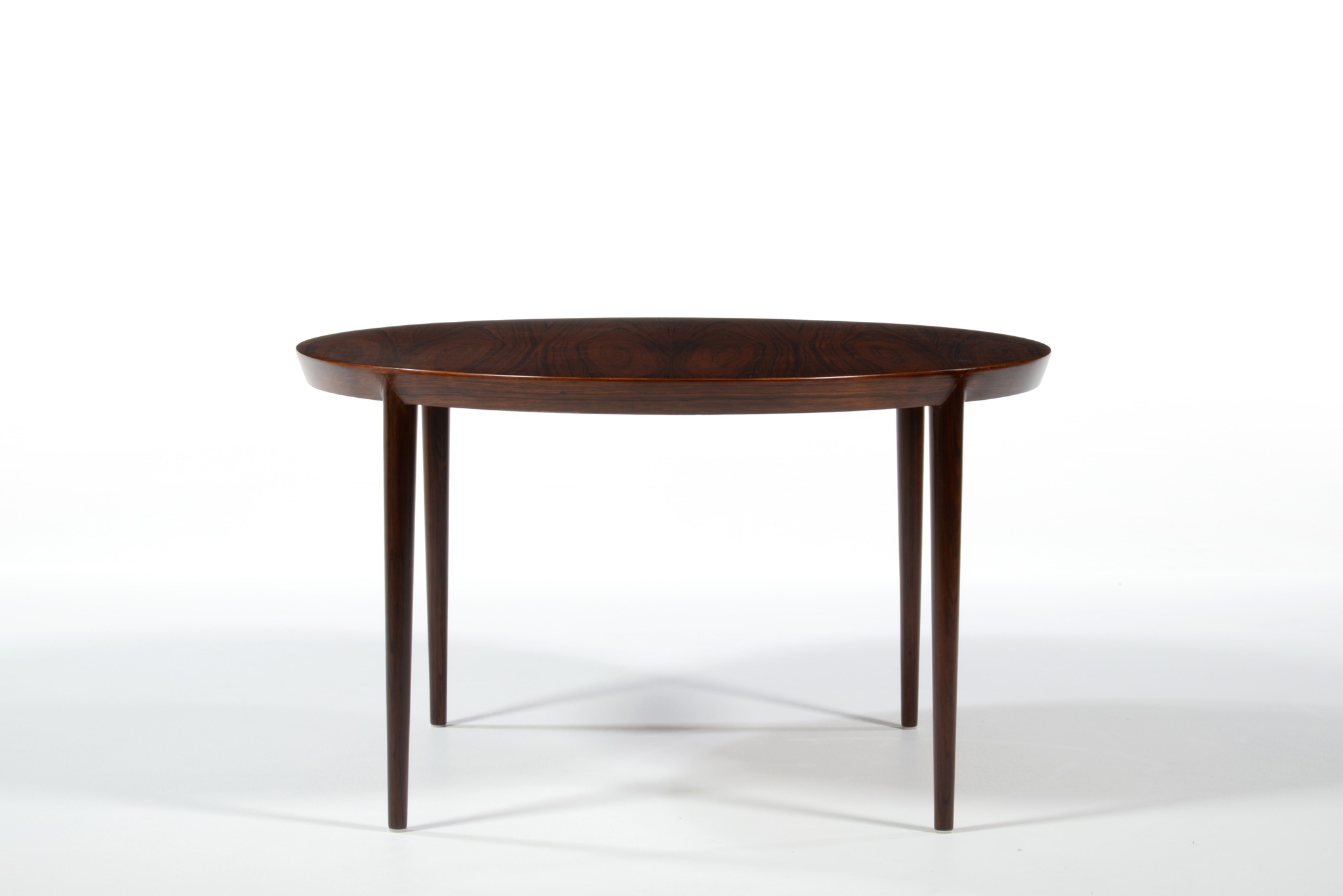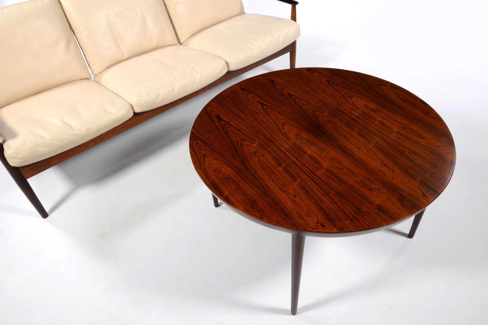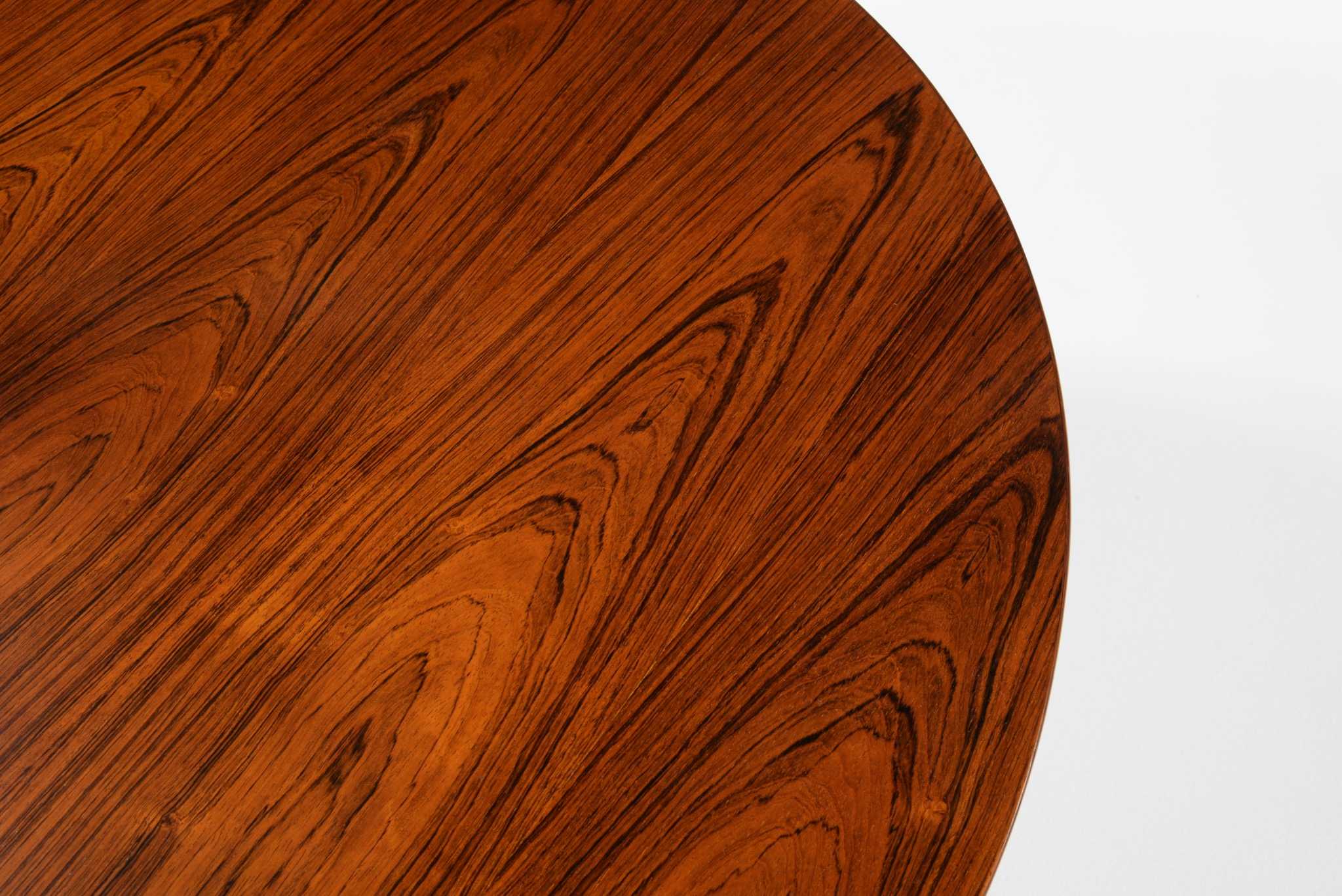 デンマークの家具デザイナー、Erik Riisager Hansen/エリック・リサガー・ハンセンによってデザインされたラウンド型コーヒーテーブルです。1960年代に作られたもので、天板と脚部との削り出しのような接合が工芸的な見所です。コンディションは良好です。