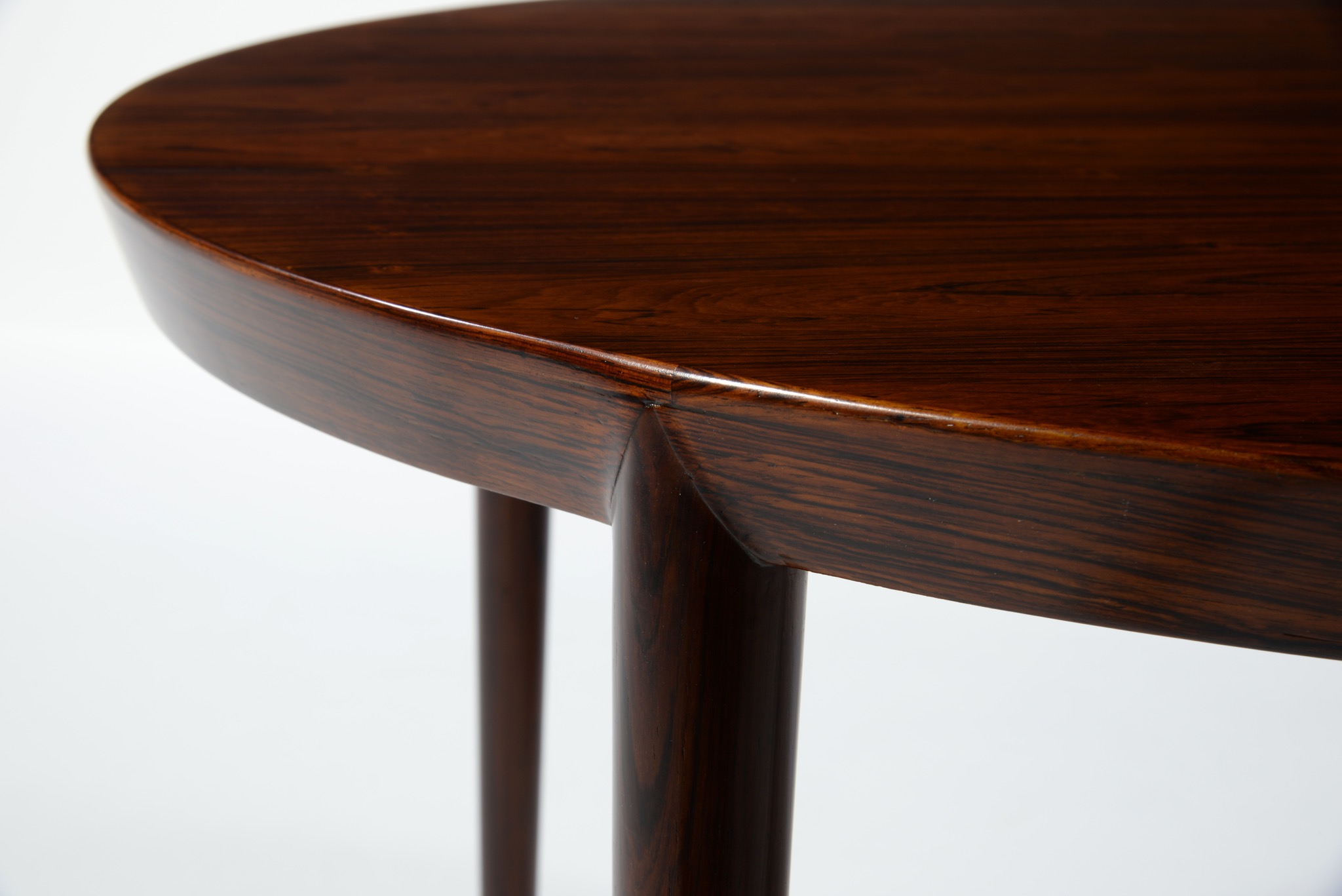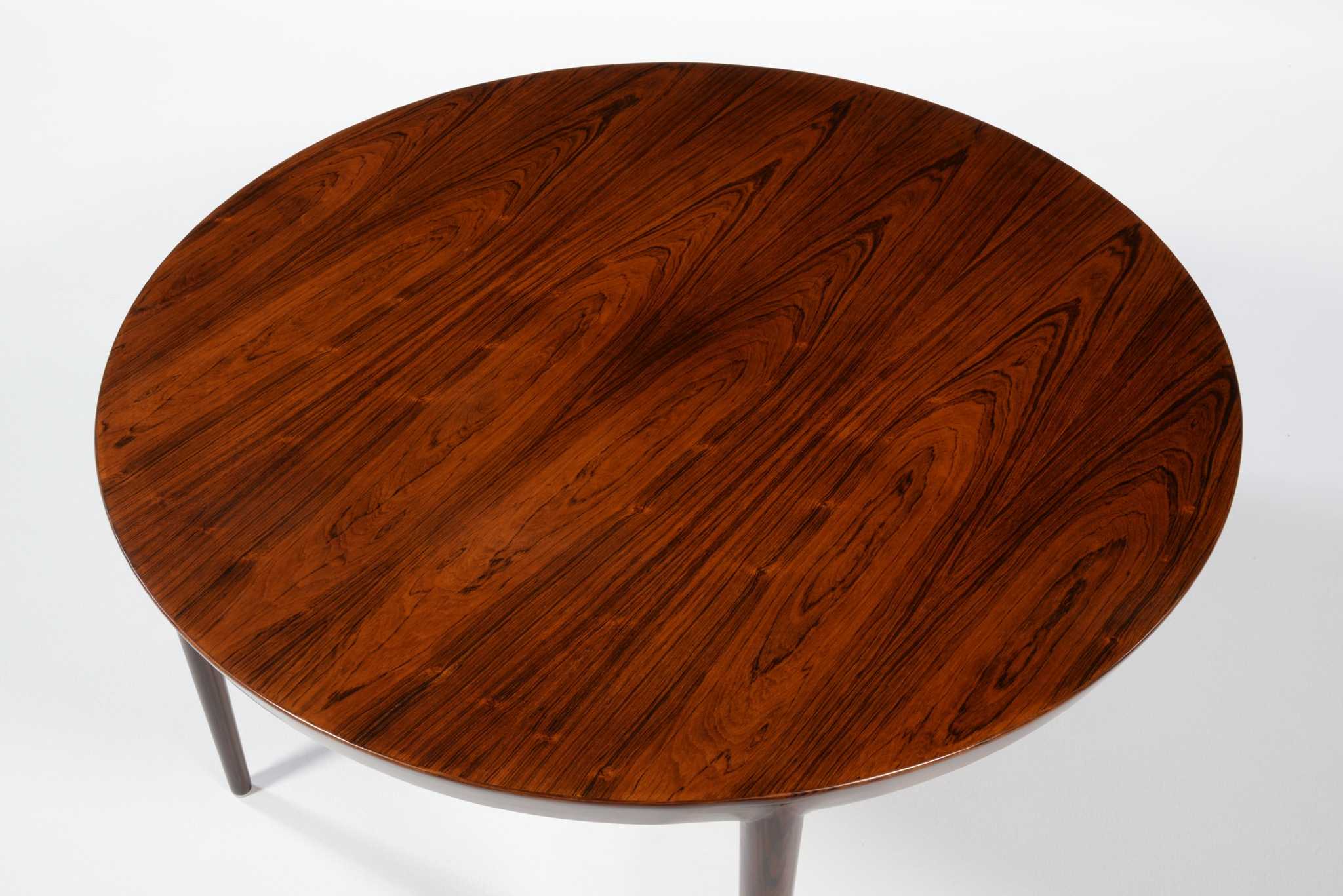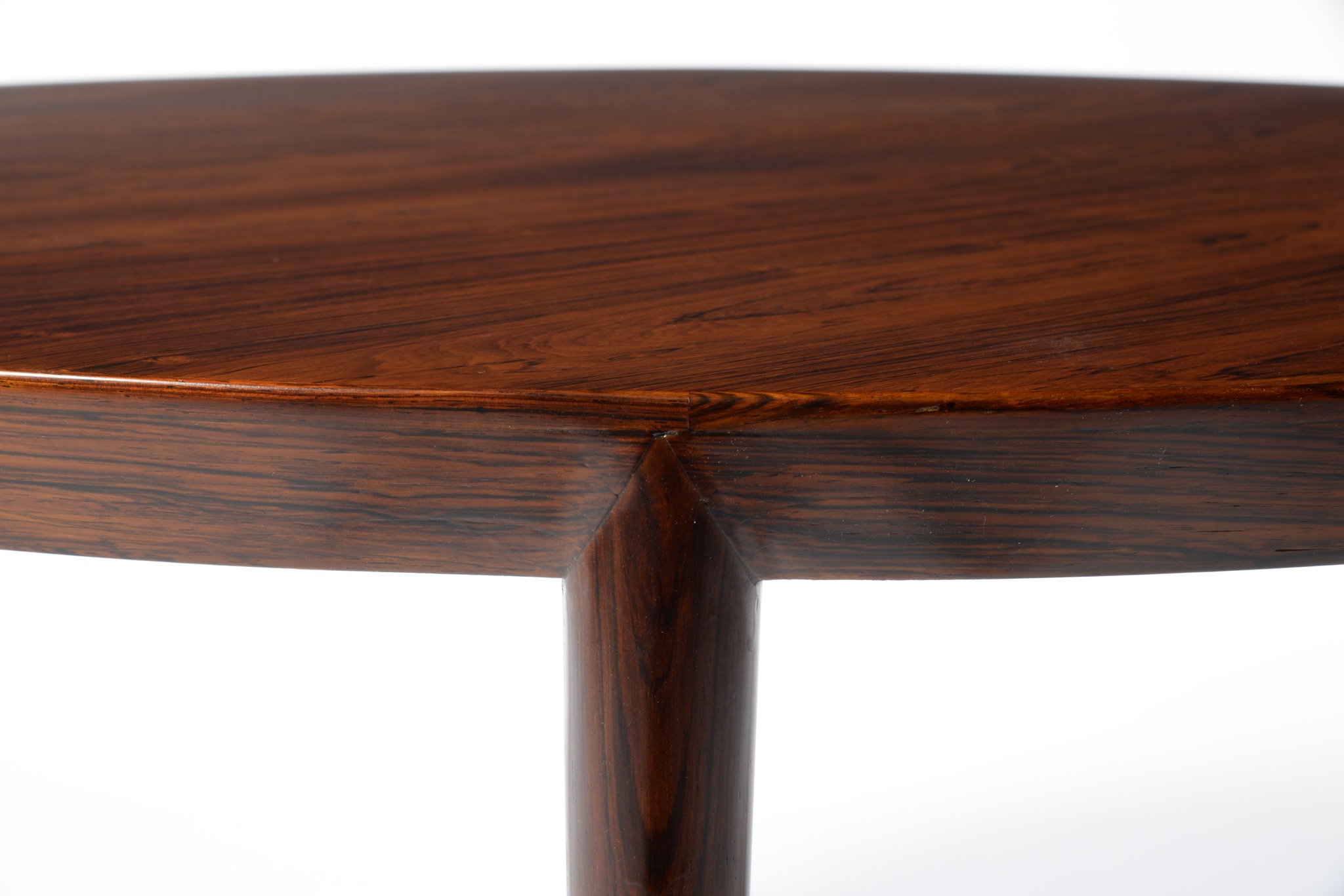 デンマークの家具デザイナー、Erik Riisager Hansen/エリック・リサガー・ハンセンによってデザインされたラウンド型コーヒーテーブルです。1960年代に作られたもので、天板と脚部との削り出しのような接合が工芸的な見所です。コンディションは良好です。