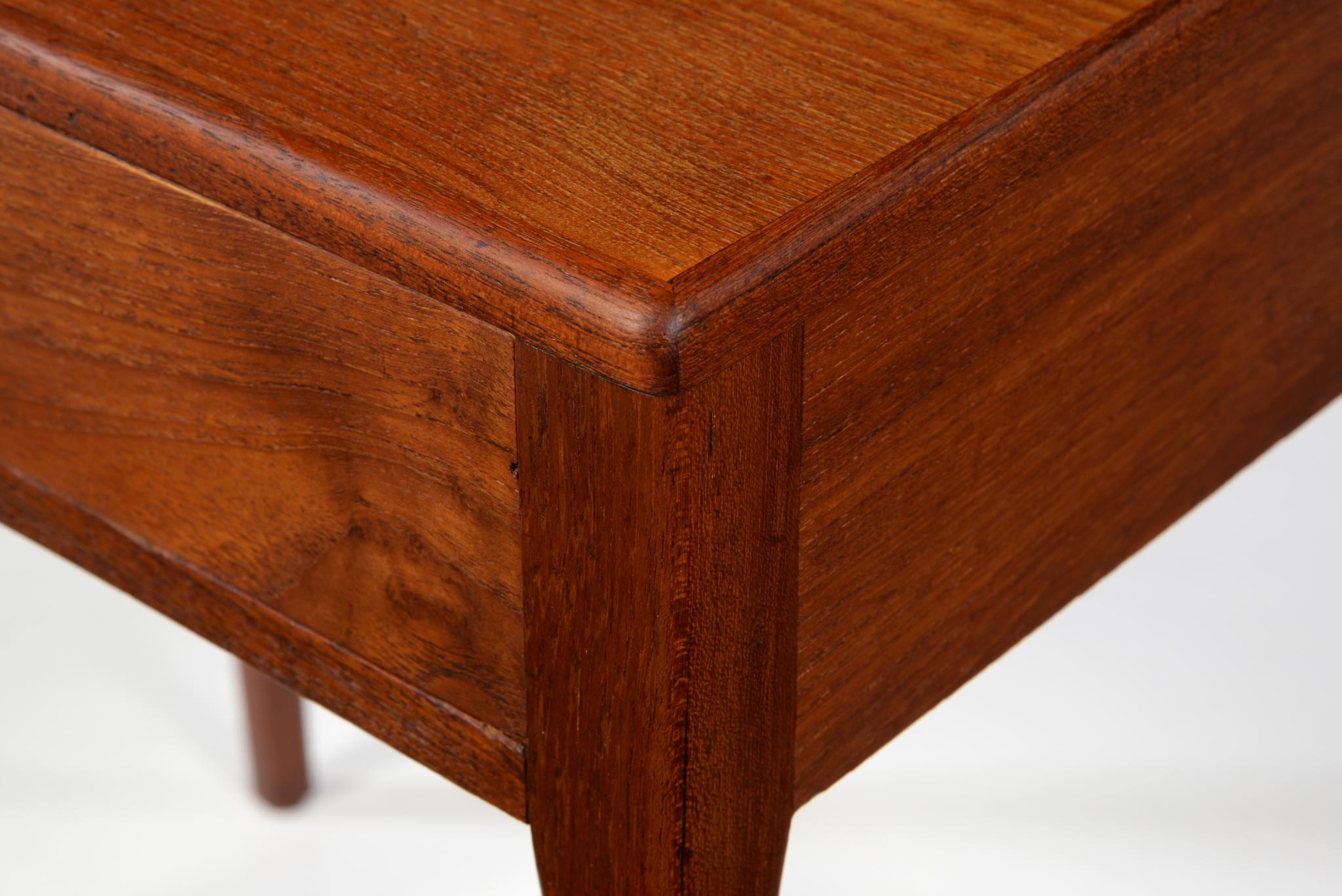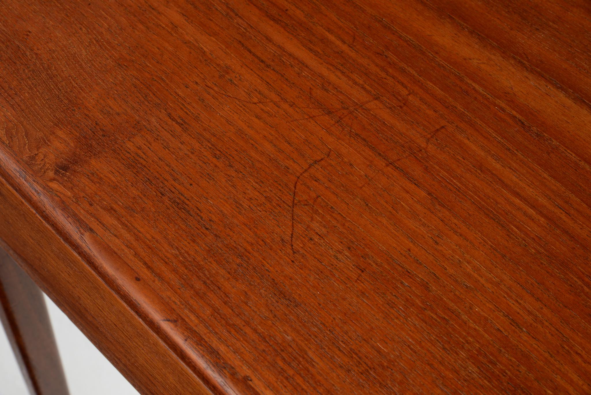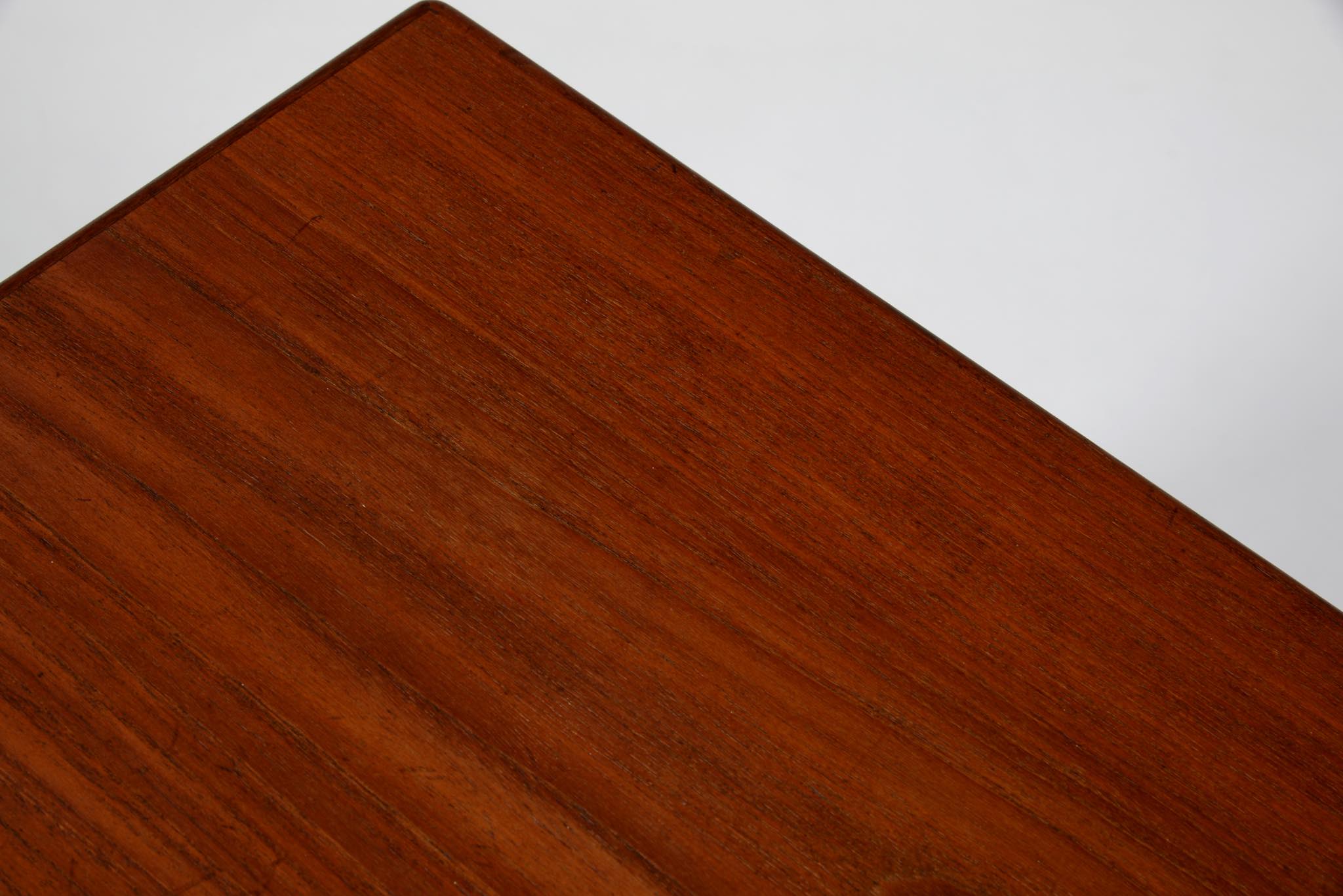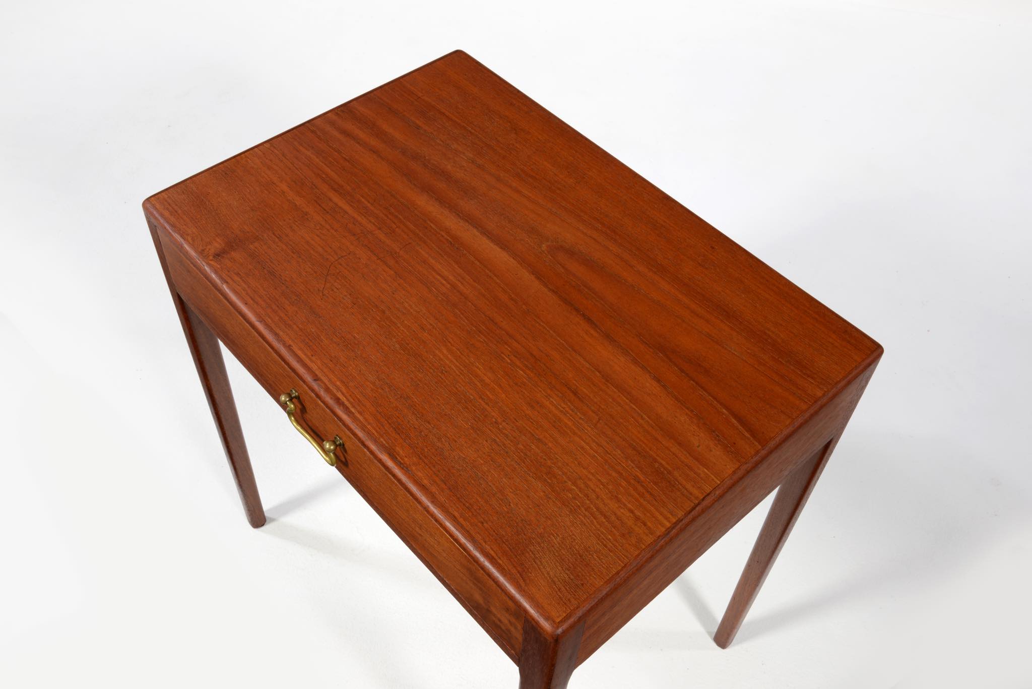 デンマーク製、1950年代に作られたサイドテーブルです。真鍮の引手のついた一杯の抽斗が備わります。デザイナーや工房等詳しいことは分かりませんが、丁寧に作られた作品です。天板に僅かな輪染みと小傷が見られます。また、左後脚に僅かな反りが見られますが、全体的なコンディションは良好です。