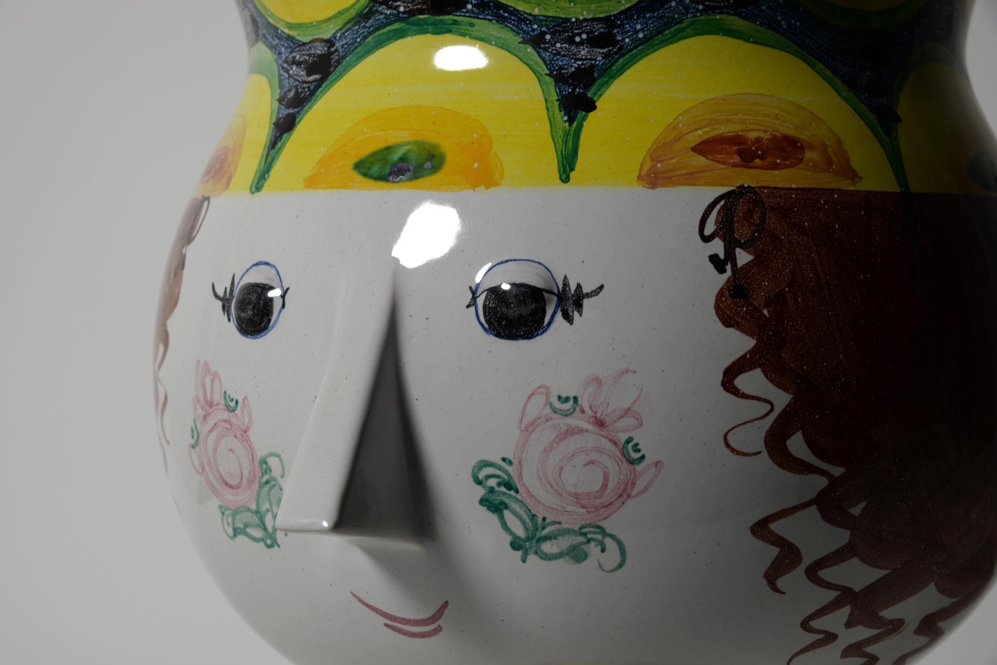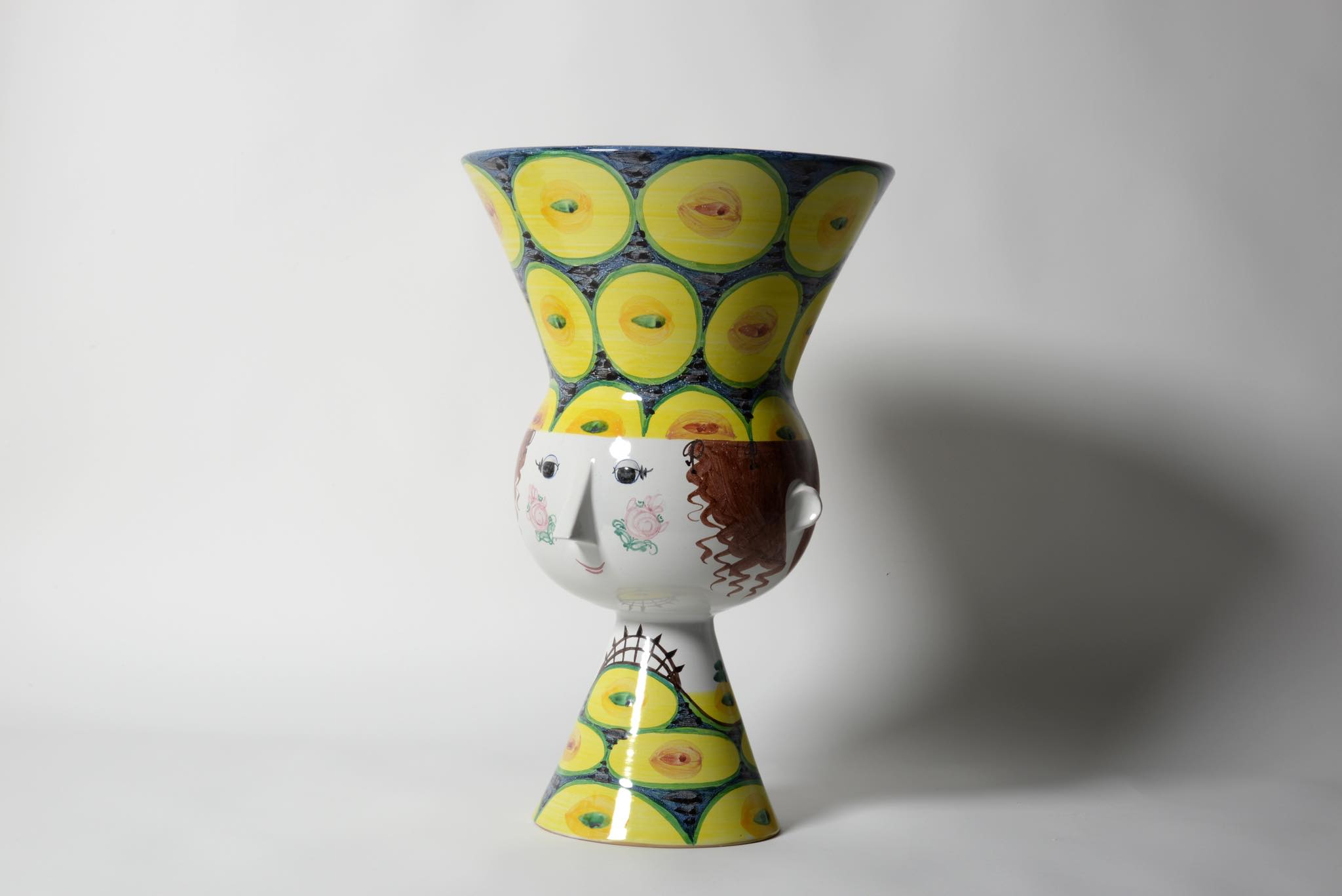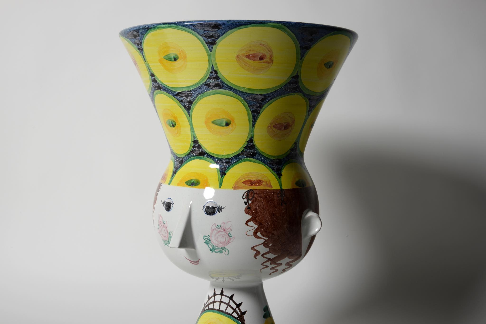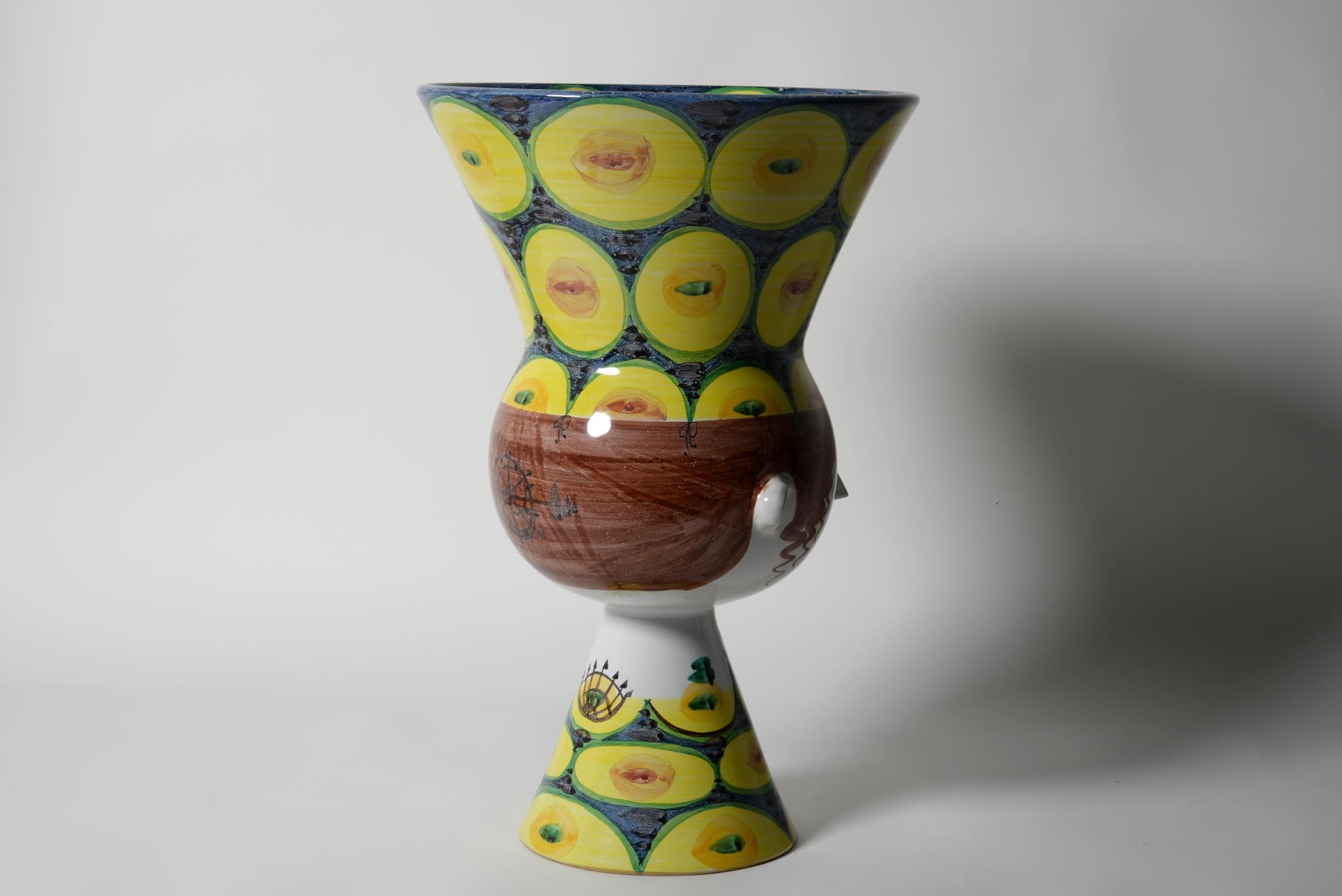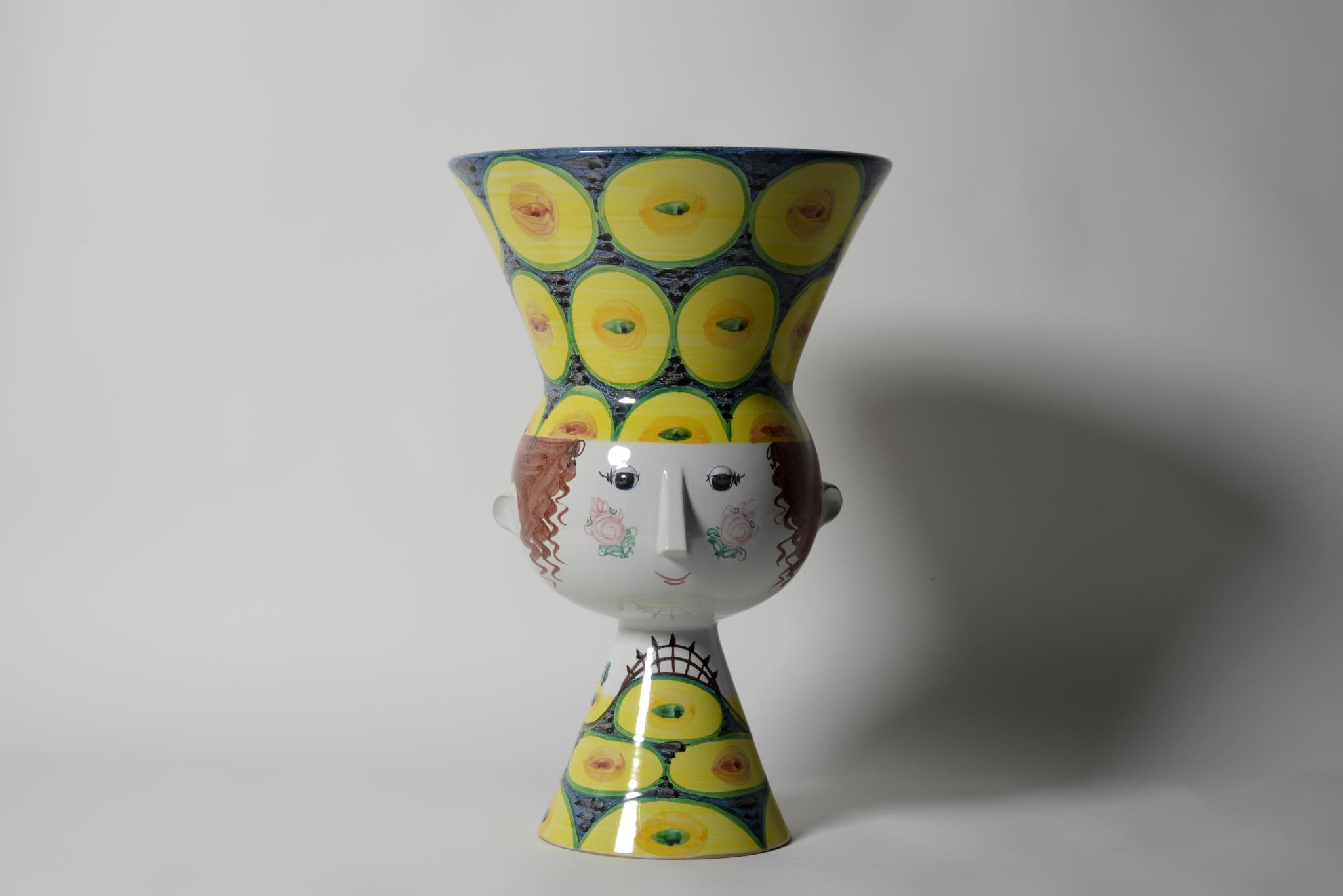 デンマークのアーティスト、Bjørn Wiinblad/ビョルン・ヴィンブラッドによる"V27"ベースです。嵩のある大きなタイプで迫力があります。眼も陶土が盛り付けされており立体的です。鼻先にごく小さな釉薬のチップが見られた為、古陶磁修復の専門職に依頼し共直し補修を行いました。とてもきれいな状態です。
