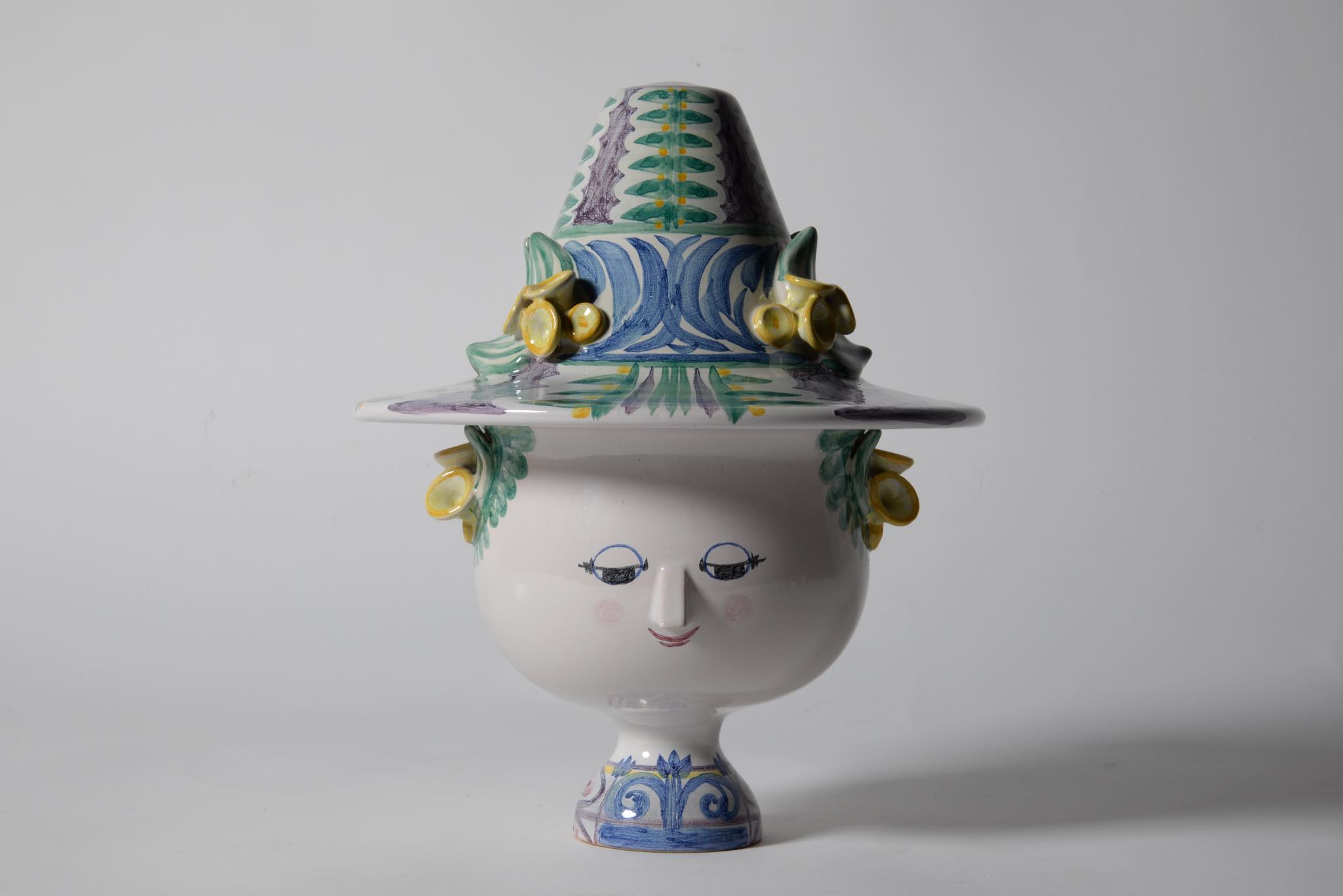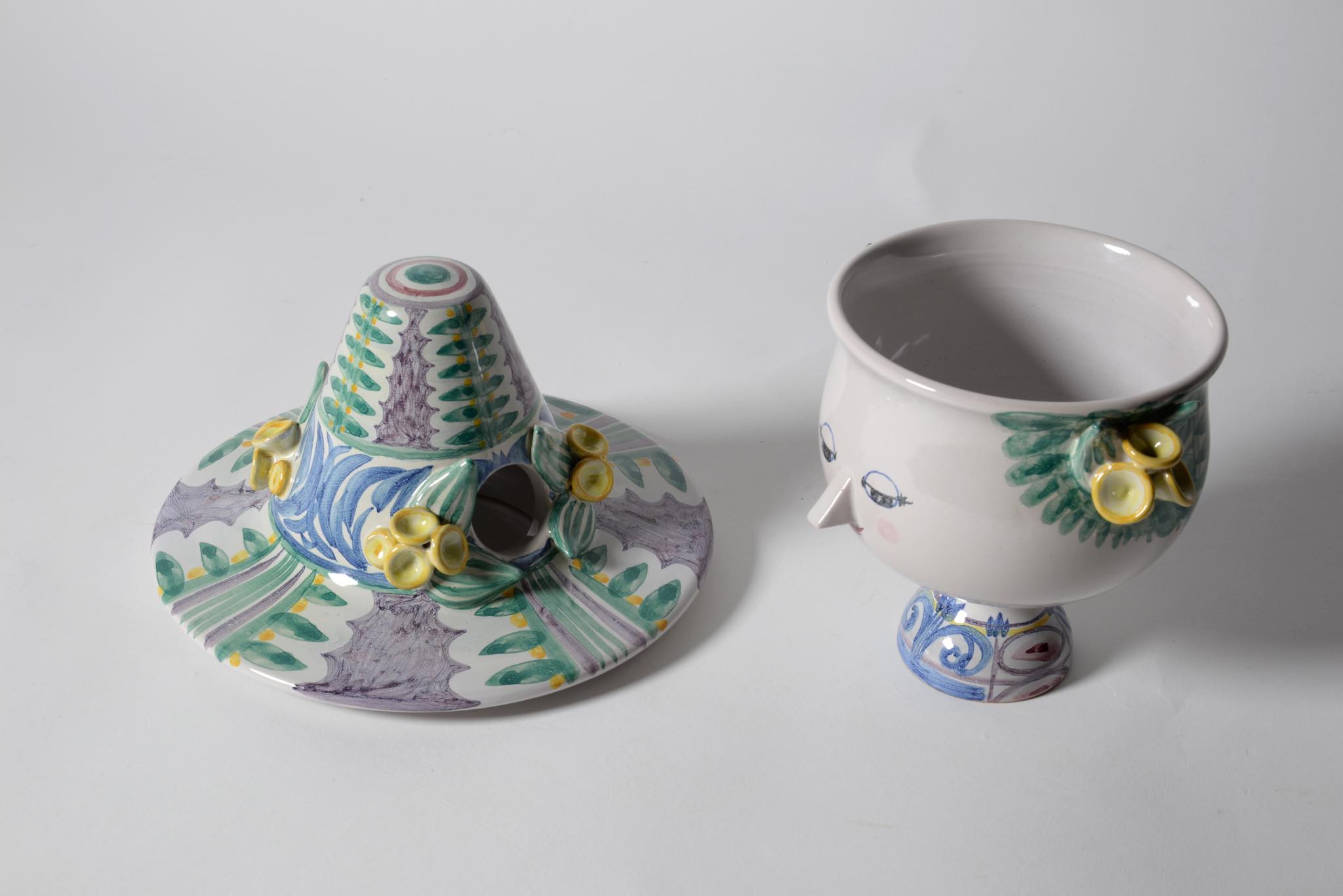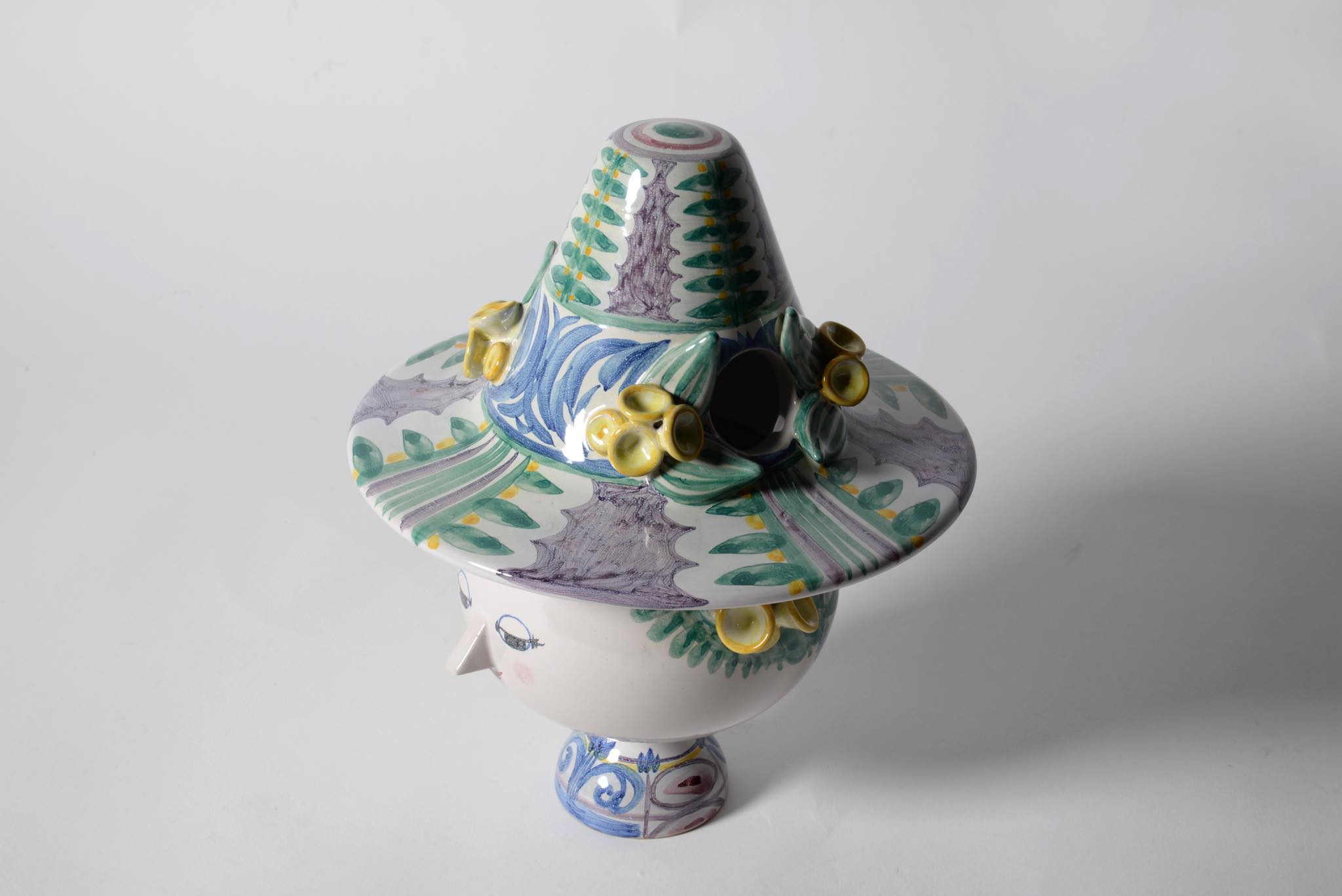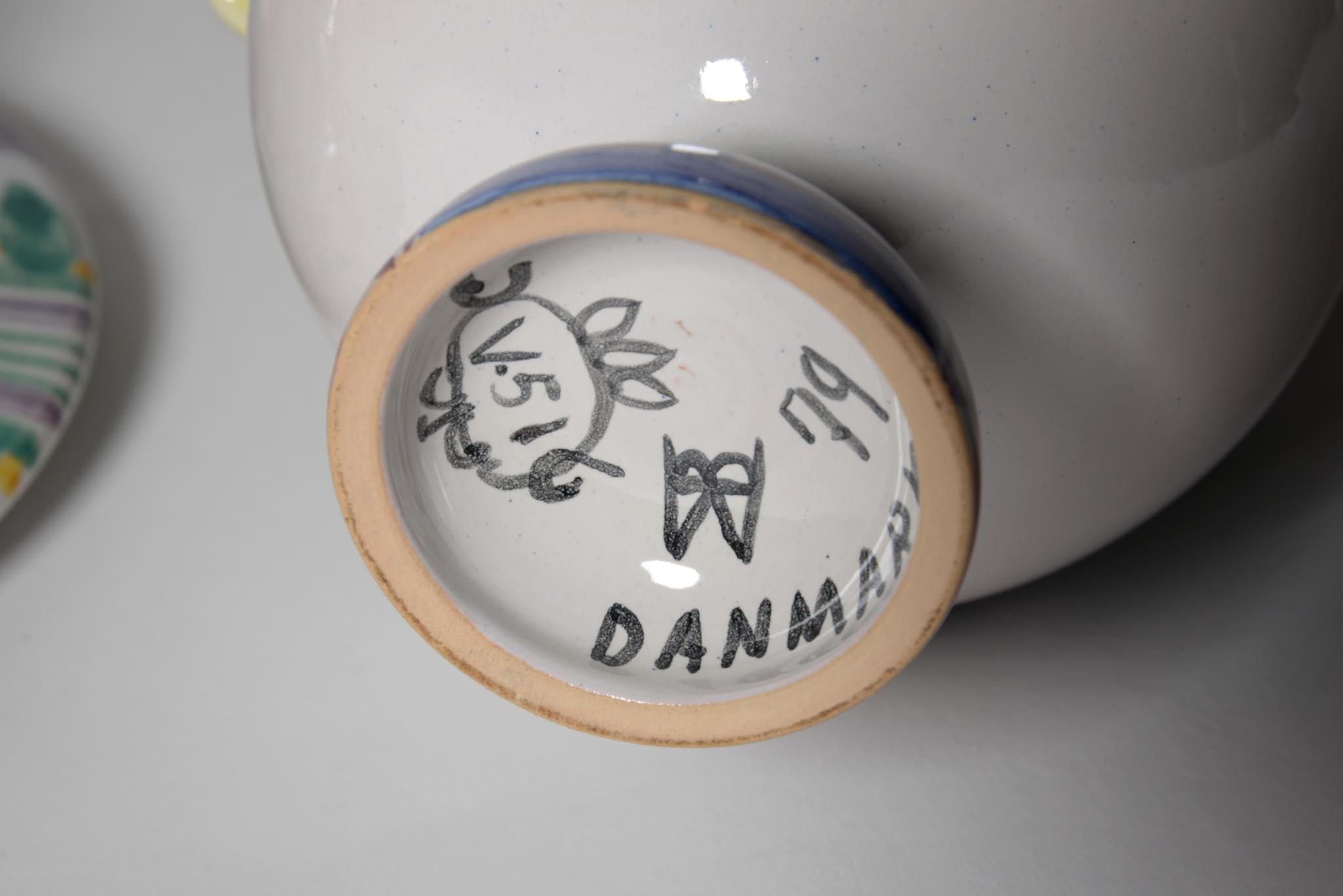 デンマークのアーティスト、Bjørn Wiinblad/ビョルン・ヴィンブラッドによる"V51"リッド&ボウルです。蓋を帽子に見立てており、キャンディポットとしてお使いいただけるでしょう。コンディションは良好です。