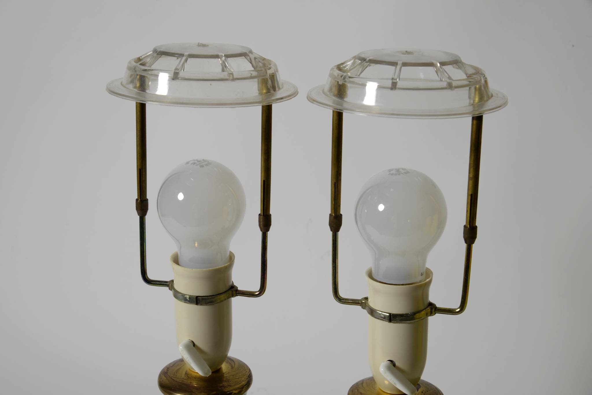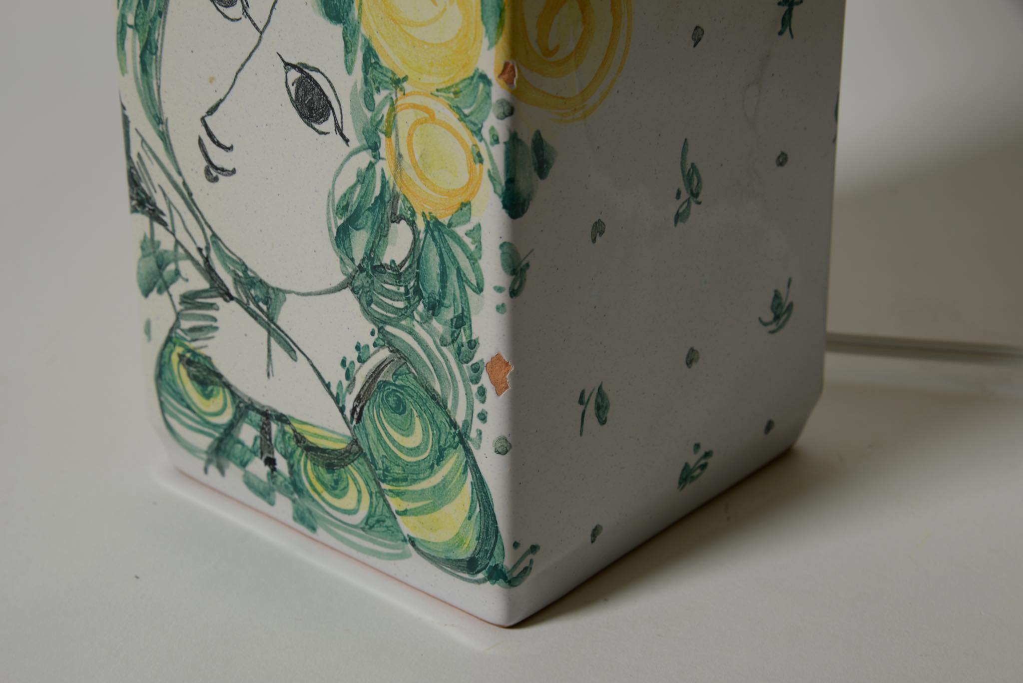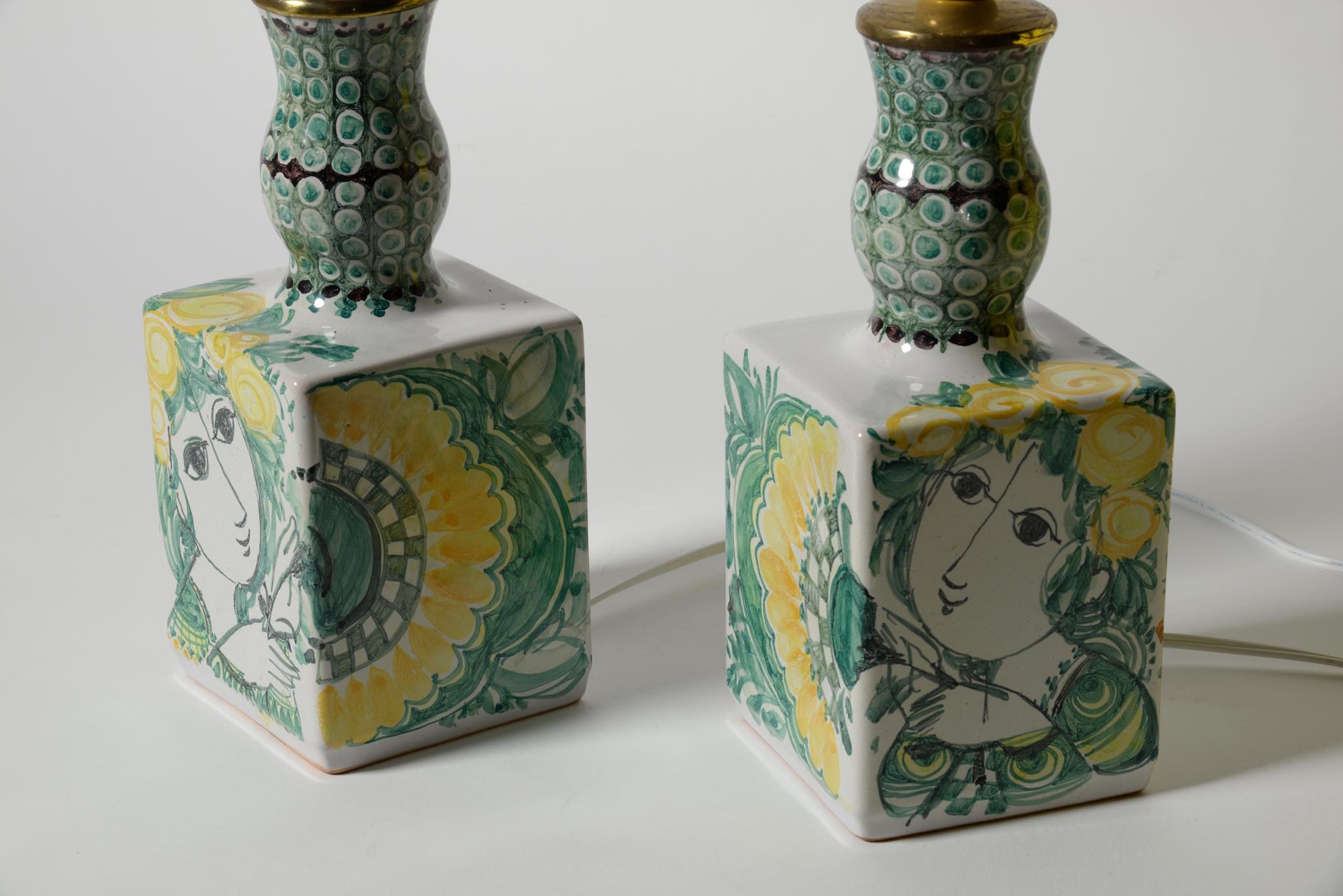 デンマークのアーティスト、Bjørn Wiinblad/ビョルン・ヴィンブラッドによるテーブルランプ一対です。1980年に焼成されたもので、ペアで置くことで、絵付けされたそれぞれの女性が向き合う格好となります。一方の本体にチップが見られますが、共直しでの修復が可能ですので詳しくはお問い合わせください。配線は新たに交換しております。