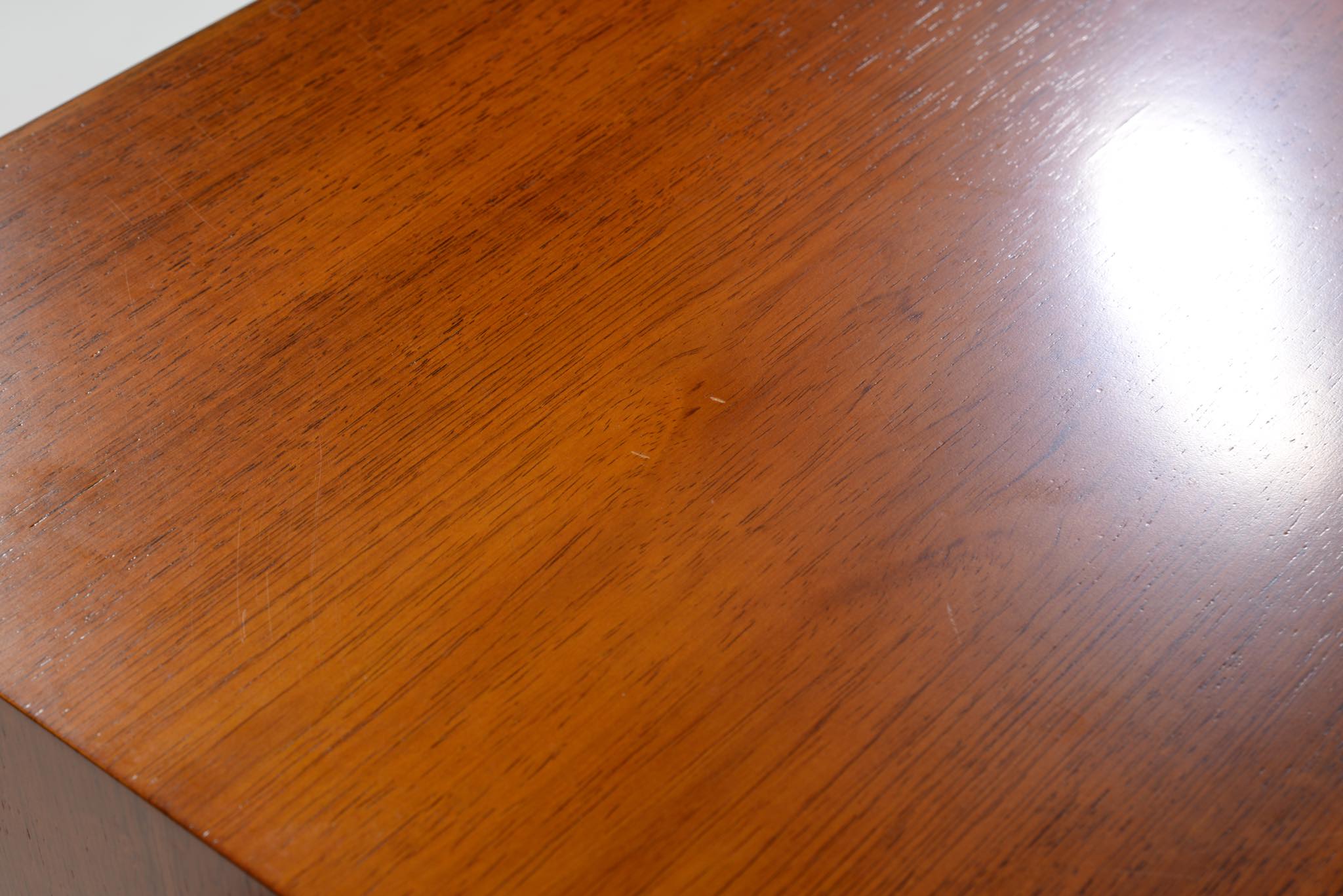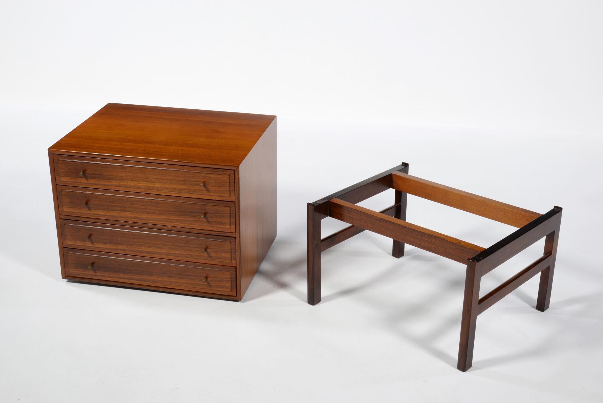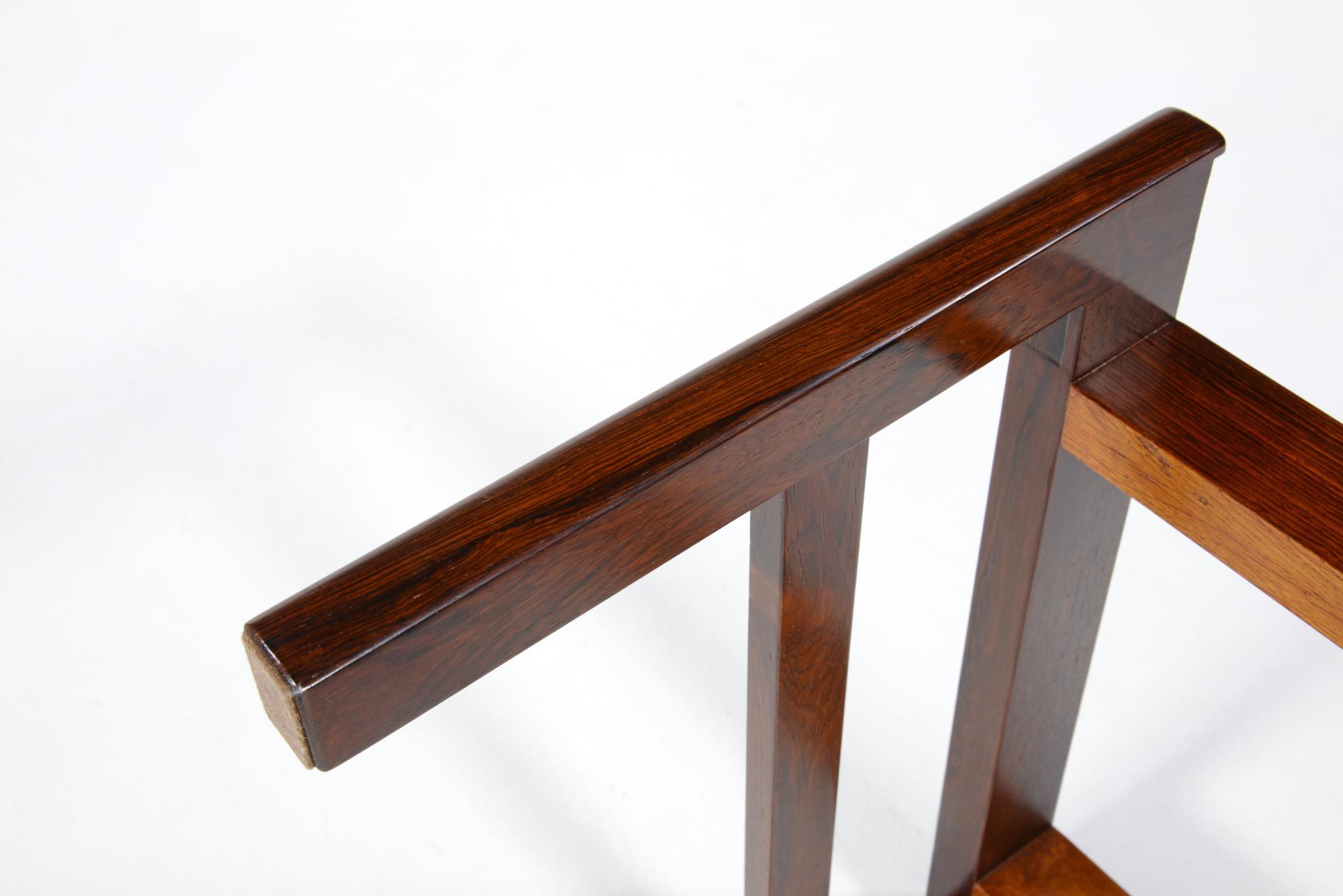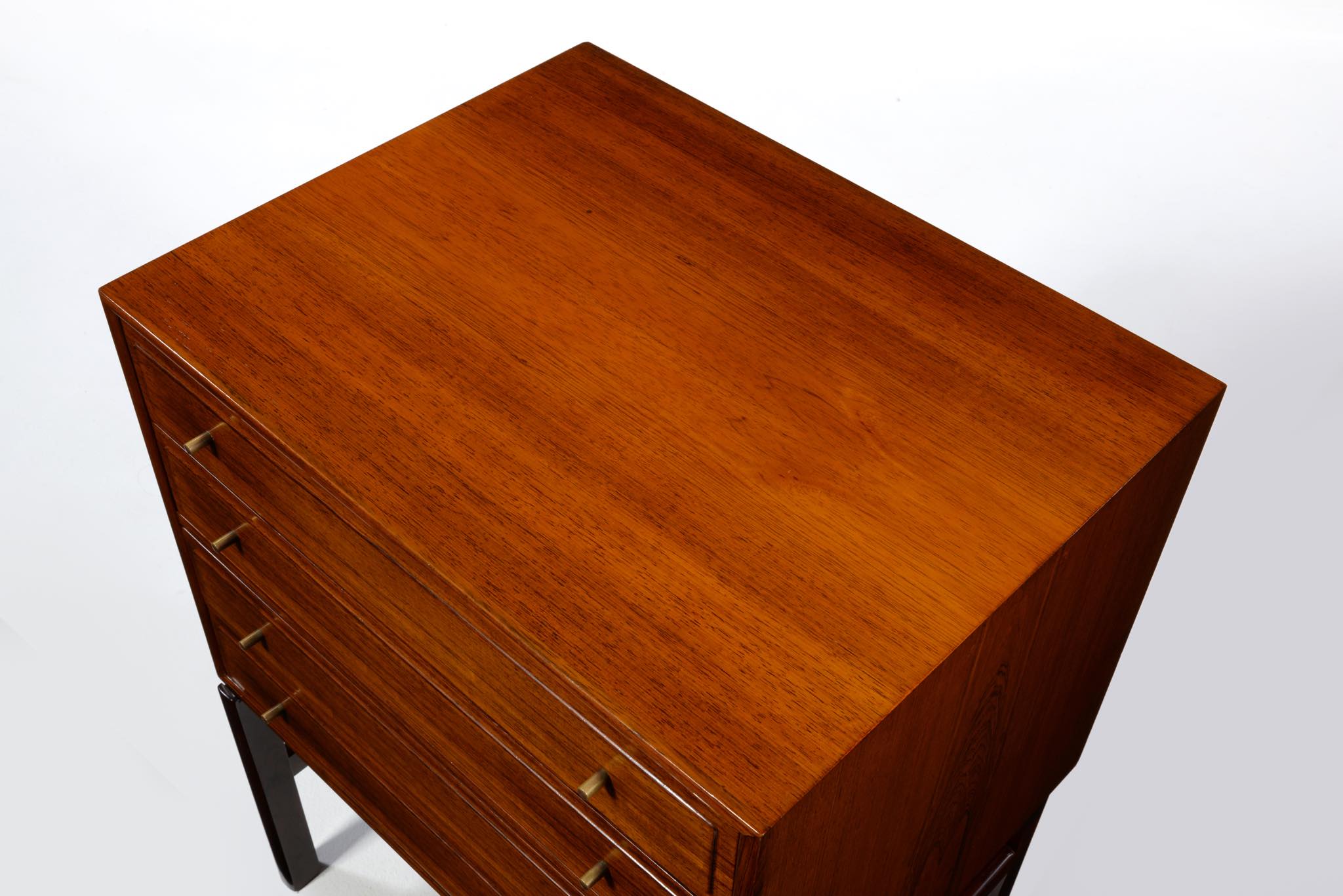 20世紀のデンマークを代表する家具デザイナーで、王立アカデミー家具科の主任教授も務めた、Ole Wanscher/オーレ・ヴァンシャーによる名作チェストです。製作は名工A.J. イヴァーセンによるもので、とても丁寧に作られています。このモデルは生産台数が極めて少ないようで、デンマークのヴィンテージ市場に於いてもほとんど見かけることはありません。木目の詰まったブラジリアンローズウッドが用いられており、抽斗の取手は銅か真鍮製のようです。天板に僅かな擦り傷が見られますが、とても綺麗な状態です。