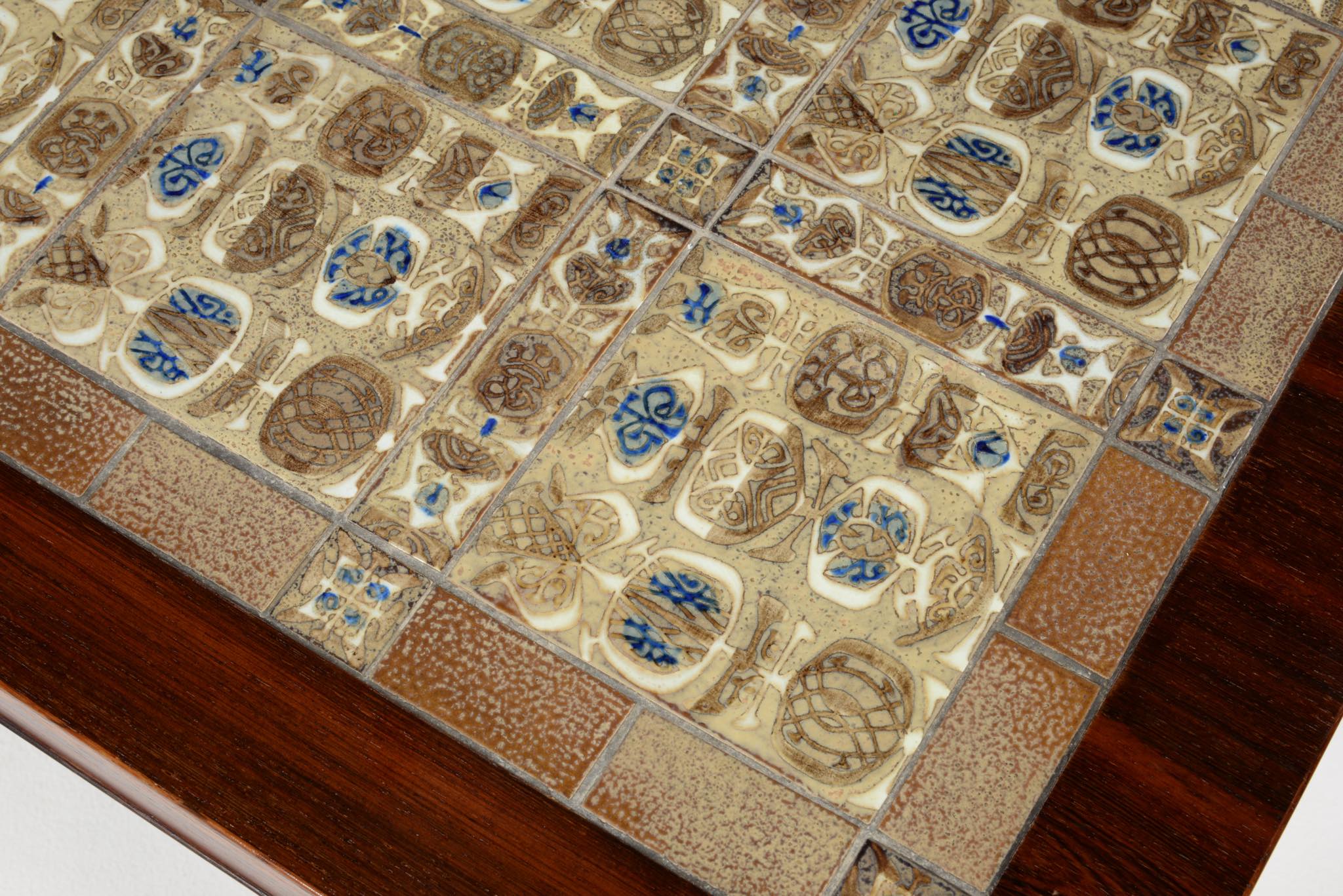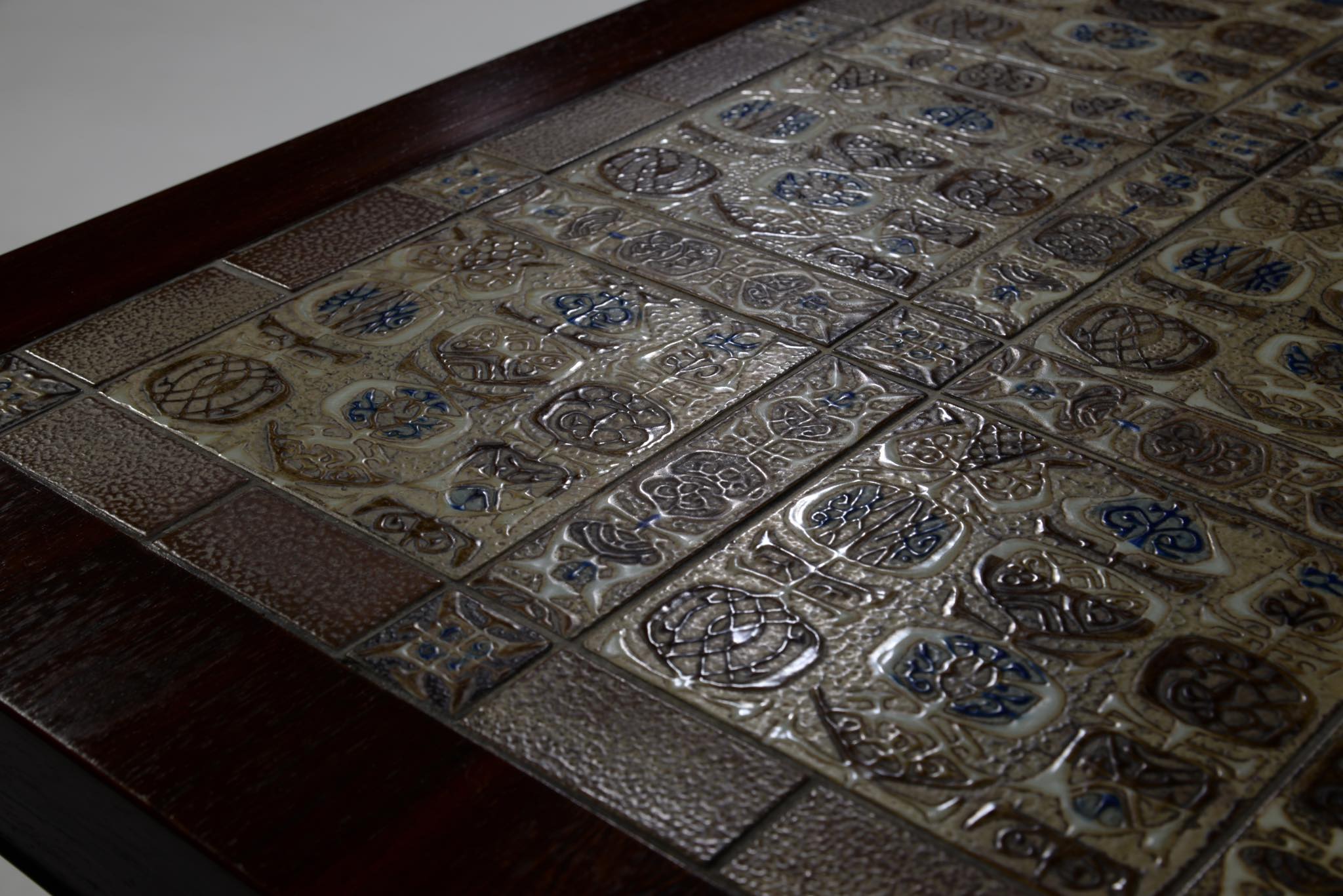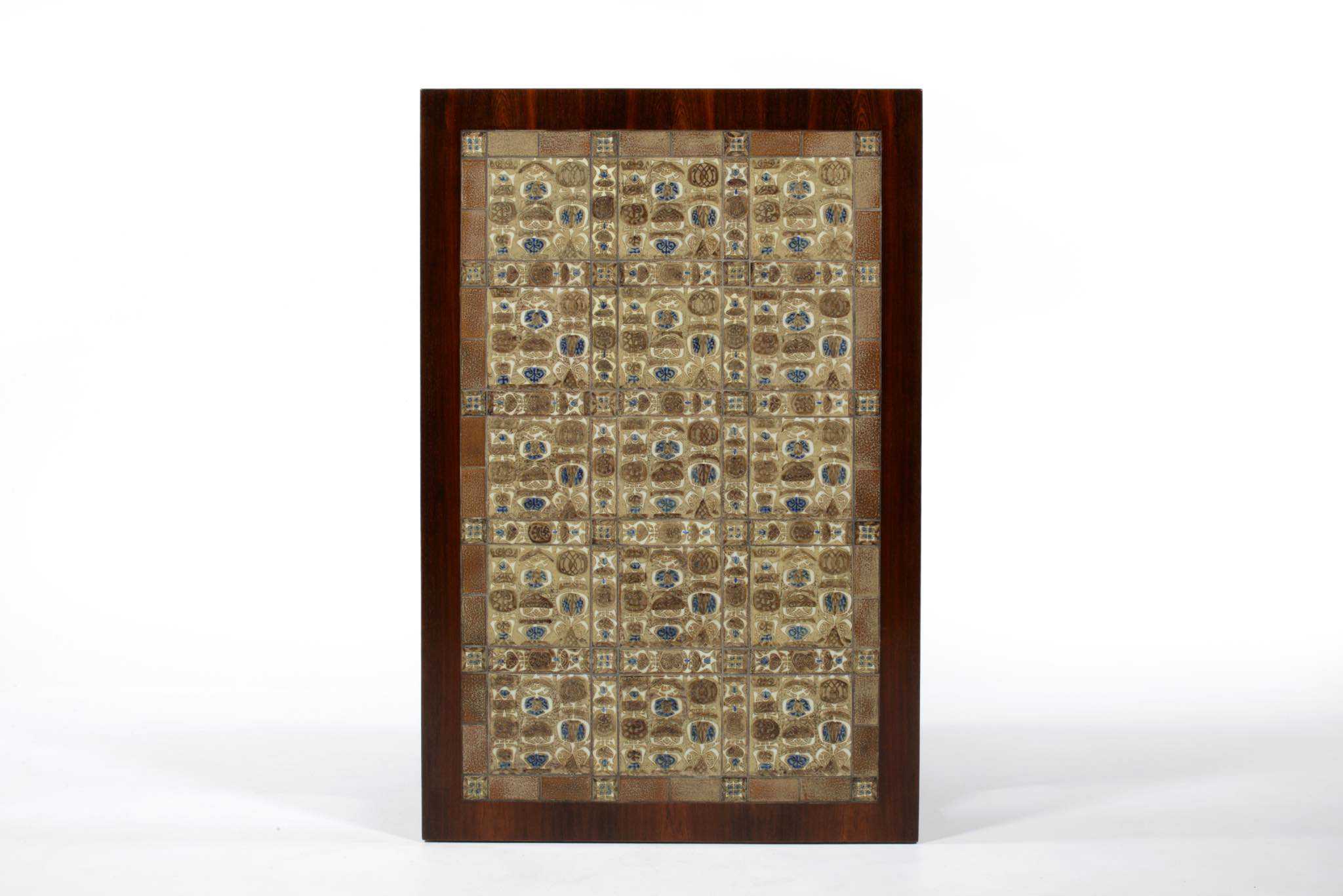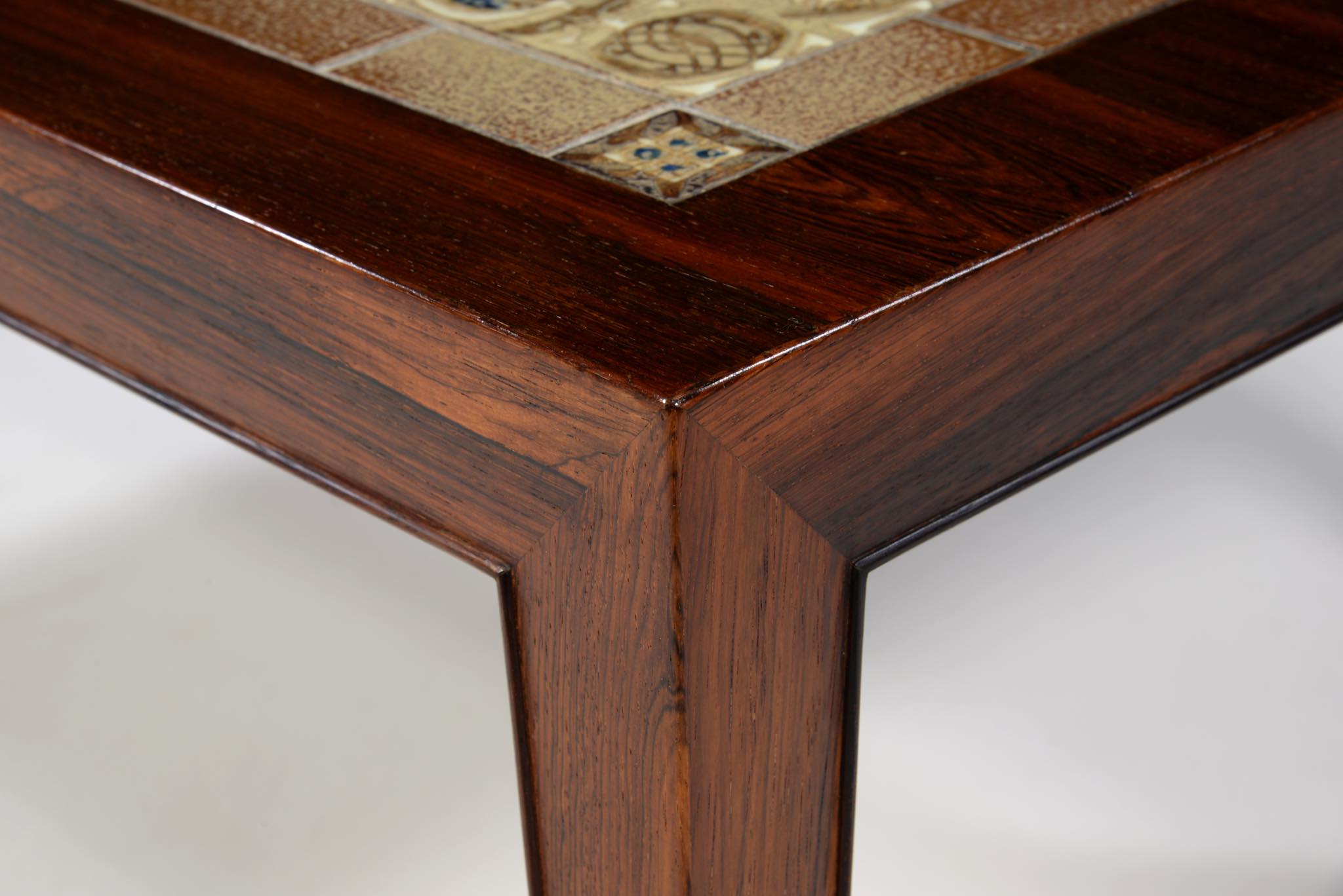 Severin Hansen Jr./セヴェリン・ハンセン・Jr によってデザインされたテーブルに、ロイヤルコペンハーゲン窯のチーフデザイナー、Nils Thorsson/ニルス・トーソンによるタイル ”BACA” を象嵌したコーヒーテーブルです。テーブルの本体にはローズウッド材が用いられています。当時は様々なサイズやディテール違いが展開されていたようで、こちらのテーブルは脚や天板の内郭に突帯を備えたクラシックな趣のタイプとなります。経年によって天板が僅かに山形に反っておりますが、通常使用には差し支えない程度です。このモデルは天板がこのように反りやすい性質にあるようで、多くの製品に見受けられます。その他、コンディションは良好です。