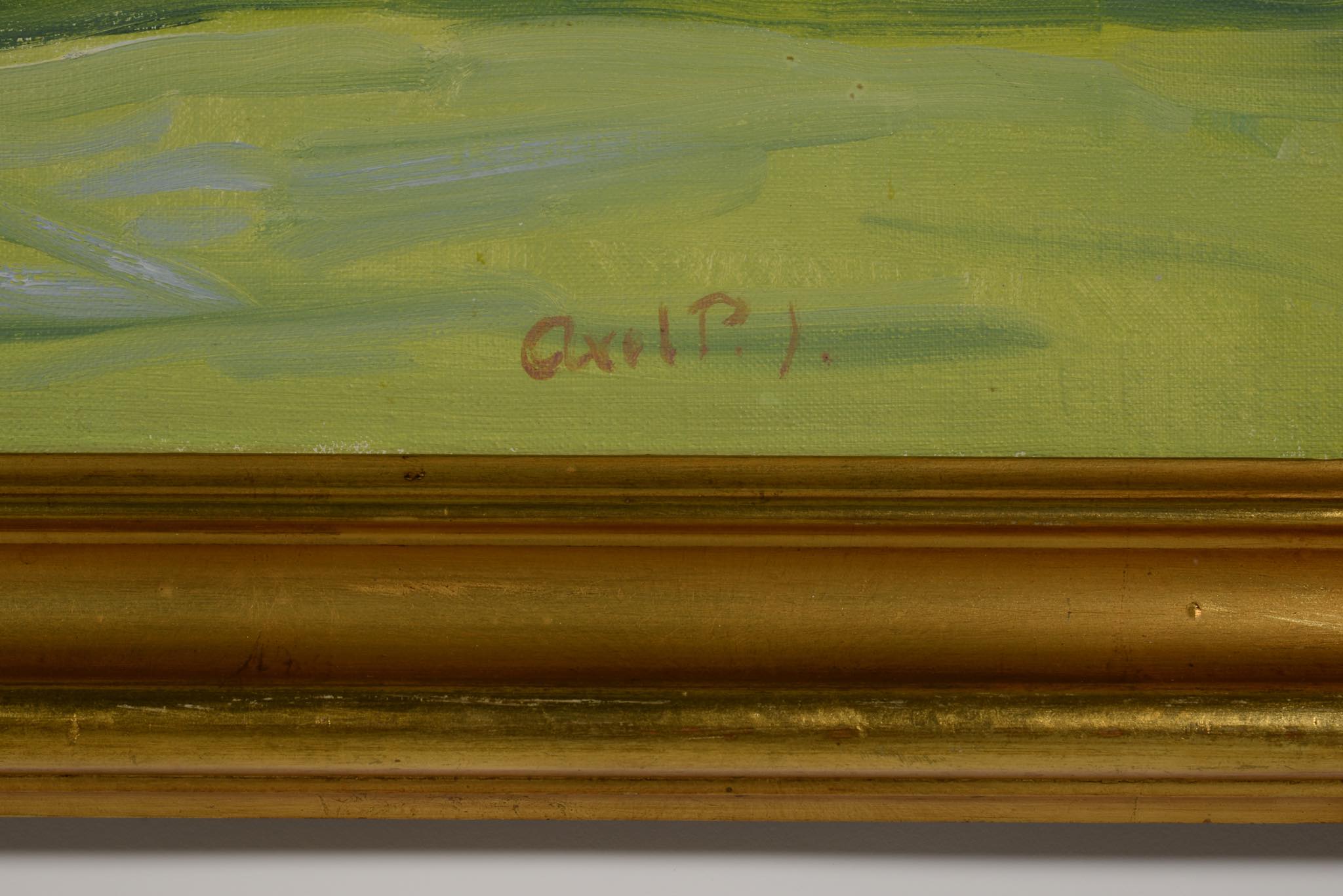 アクセル・ペダー・イェンセンはデンマークのフュン島出身の画家で、1903年よりオールボーの技術学校にて学んだ後、1908年より巨匠ヨハン・ローデに学びます。氏は題材として、主に季節の移り変わりや風、天候などを捉えた風景画を好んで描いています。