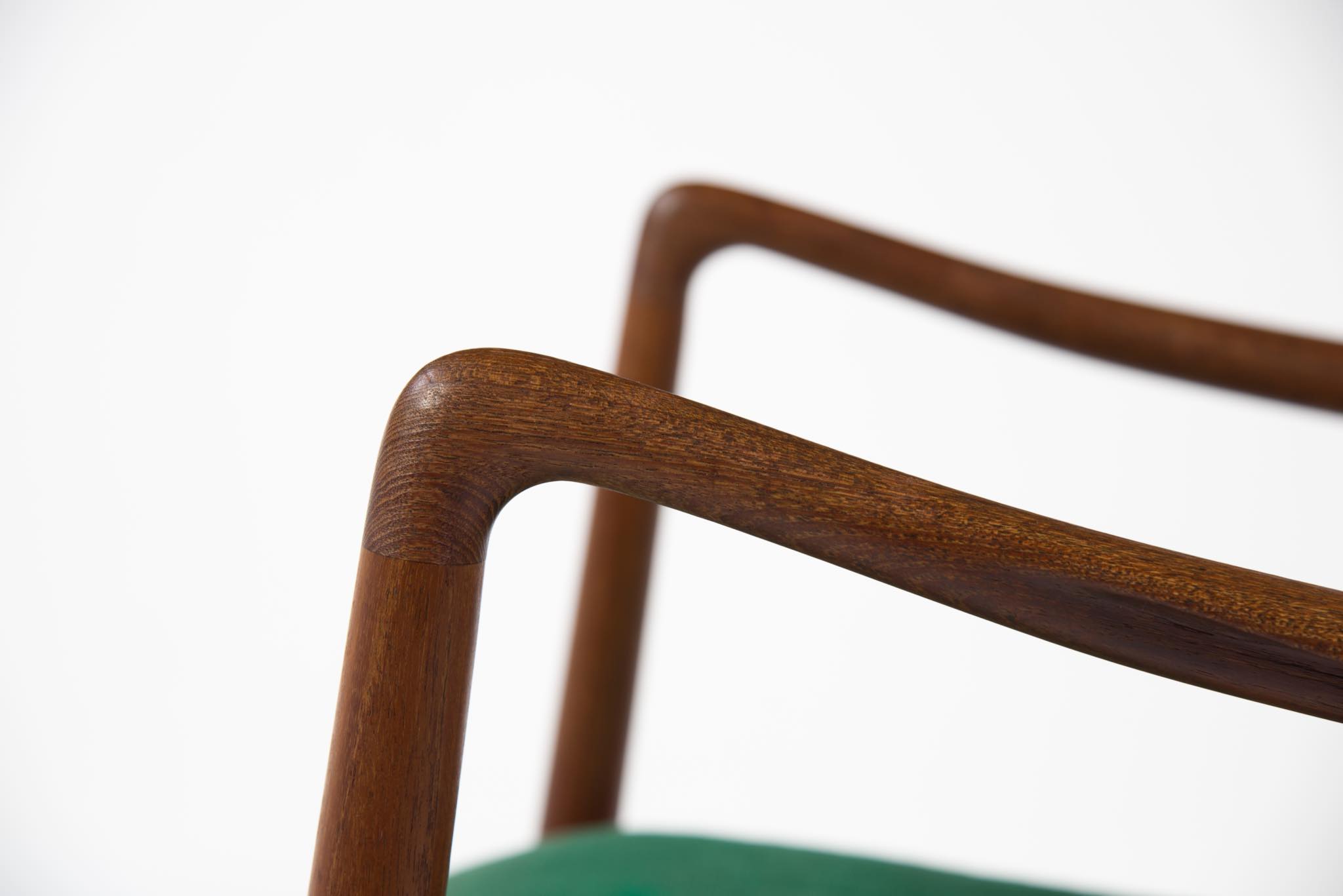 コペンハーゲン生まれ。父親は権威主義的な思想を持つ繊維卸売業。母親はフィン・ユールが生まれて間もなく他界。幼い頃から美術史家を夢見て育ち、十代の頃は各美術館に出向くなど、美術の鑑賞や研究に多くの時間を費やします。しかし父親は、美術の世界では生きられないであろうと考え、若きフィン・ユールに建築を学ぶ事を推します。1930~34年、デンマークの主たる建築家であり著名な講師のカイ・フィスカーに師事、デンマーク王立芸術アカデミーの建築学部で建築を学びます。学生だったフィン・ユールの能力を建築家のヴィルヘルム・ラウリッツェンが見出し、ラウリッツェン建築事務所に招き入れます。その後、10年間に亘り、ラウリッツェンの建築事務所に勤務。デザイナーのヴィゴ・ボイセンと緊密に協力し、デンマークラジオハウスのインテリアデザインの多くを担当します。現在復刻されているラウリッツェンのラジオハウスペンダントは、就労中のフィン・ユールによってデザインされたものであると噂されています。フィン・ユールは、ラウリッツェン事務所に所属しながらも、1937年には独自の彫刻技術を持つキャビネットメーカー Niels Vodderとの協働を開始。1938年に開催された第11回目のキャビネットメーカーズギルド展へ初出展します。しかし、人間工学を無視した構造と奇抜なデザイン、そして家具作りの教育を受けていない亜流からの流れという背景もあり、世間や業界から酷評を受けます。キャビネットメーカーズギルド展は、それまで続いてきたデンマークの古典的な様式を一新しようとする若きデザイナー達にとって新しいトレンドを発表する重要な展示会でしたが、それまでの重厚で豪華で装飾的な伝統主義に背を向ける姿勢となるプロジェクトは物議を醸し、中でも家具工芸の資格を有さないフィン・ユールの作品は、保守的なデンマーク人たちから多くの批判を受けたと云われています。しかし徐々に海外からの評価と需要が高まり出します。1945年、ラウリッツェン建築事務所を退社したフィン・ユールは、コペンハーゲンのニューハウンにインテリアと家具のデザインを専門とする自身のデザイン事務所を立ち上げます。1950年代に開催されたミラノトリエンナーレに出展した複数のプロダクトが金メダルを受賞すると、国際的な評価は更に高まり、1950年代には、より国外の市場へ向けた多くの製品を生み出すようになります。ノックダウンしたまま出荷できる製品なども開発し、盛んに輸出しました。その頃、ニューヨーク市の国連管理委員会会議室のインテリアデザイナーも務めます。1960年代以降は時代の流れも変わり、フィン・ユールの作品は世の中から一旦忘れ去られますが、1990年代以降は再び関心が高まり、当時作られたヴィンテージ品は各国のオークションで高値を呼び、プロダクトは「House of Finn Juhl」によって現在も復刻生産されています。