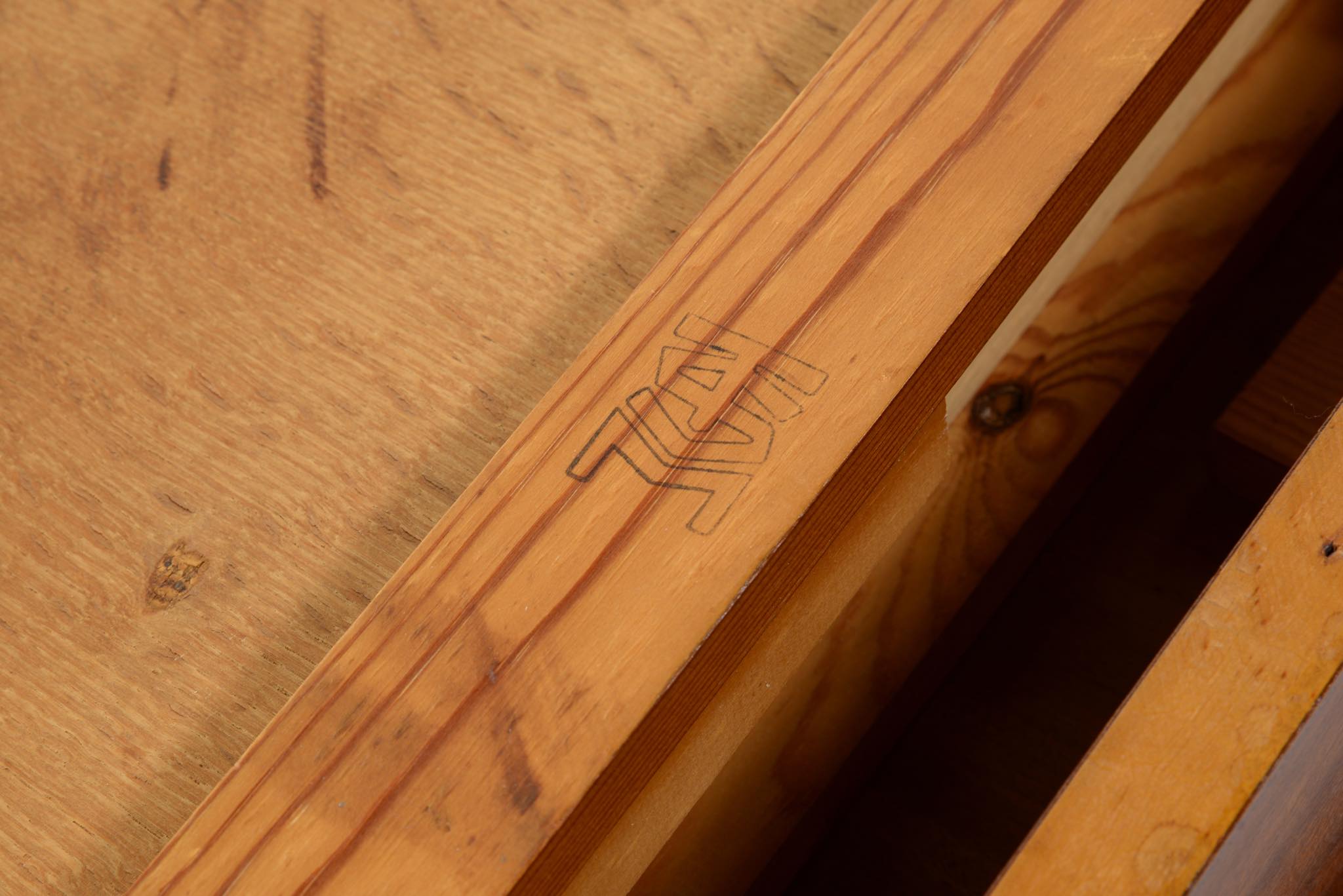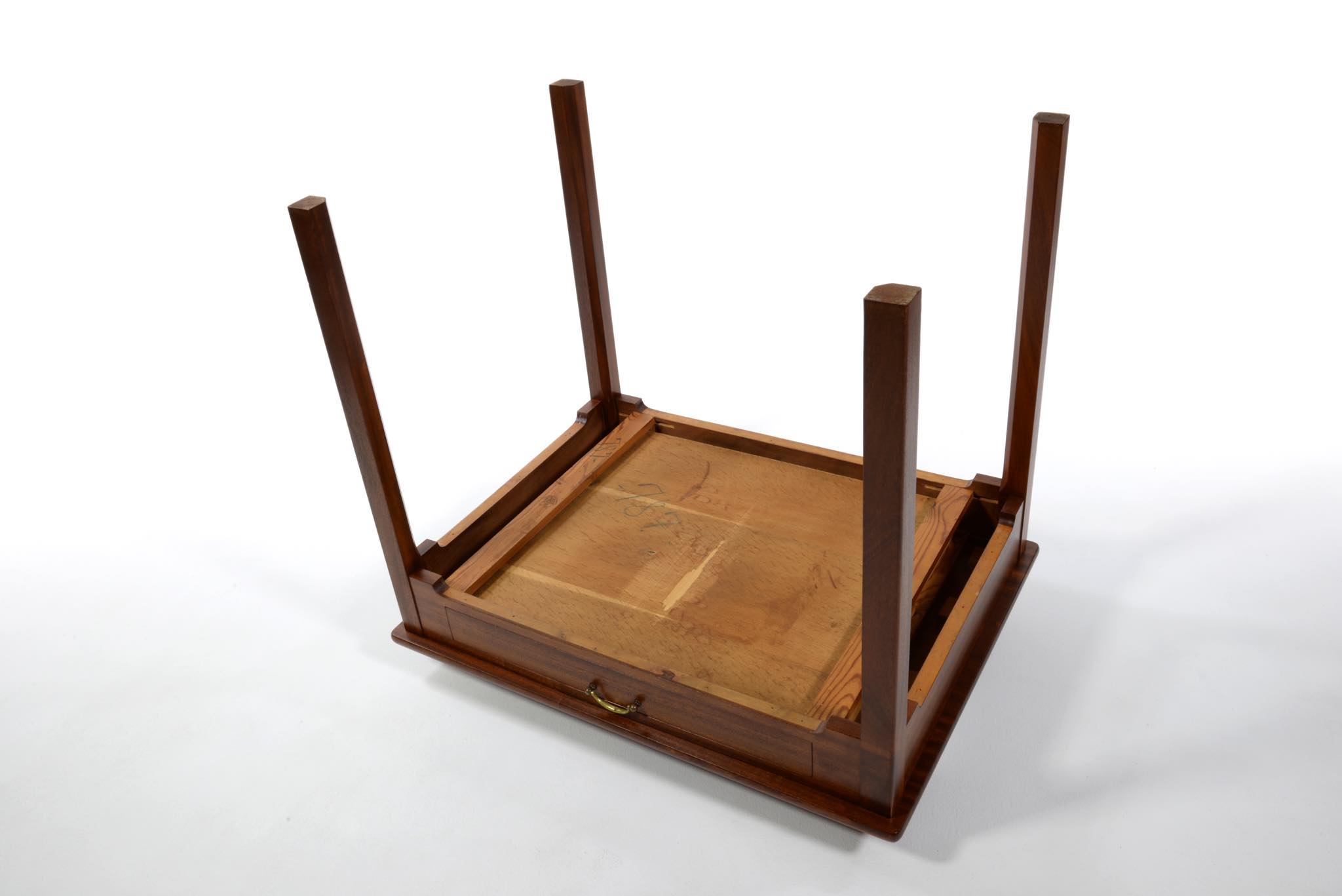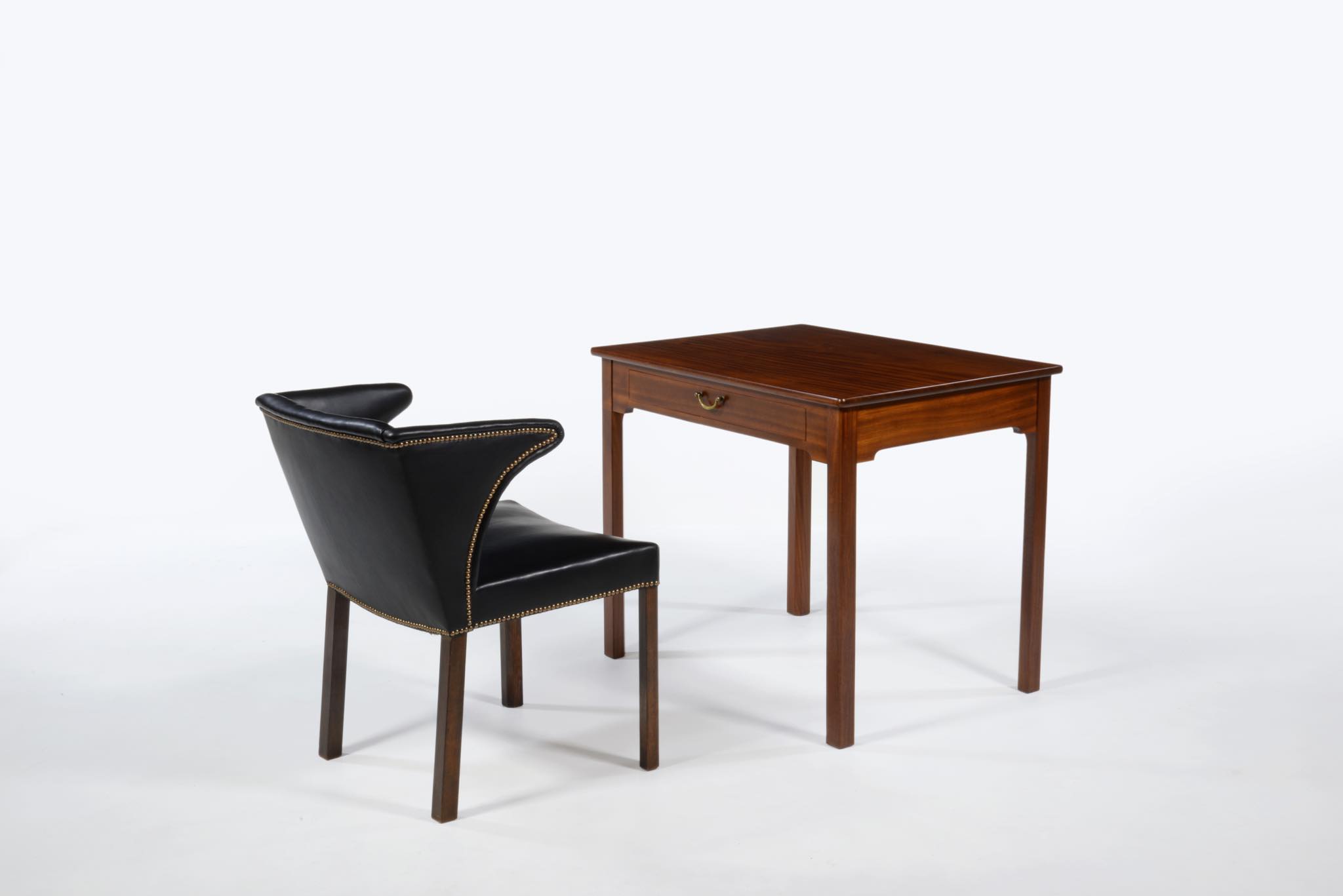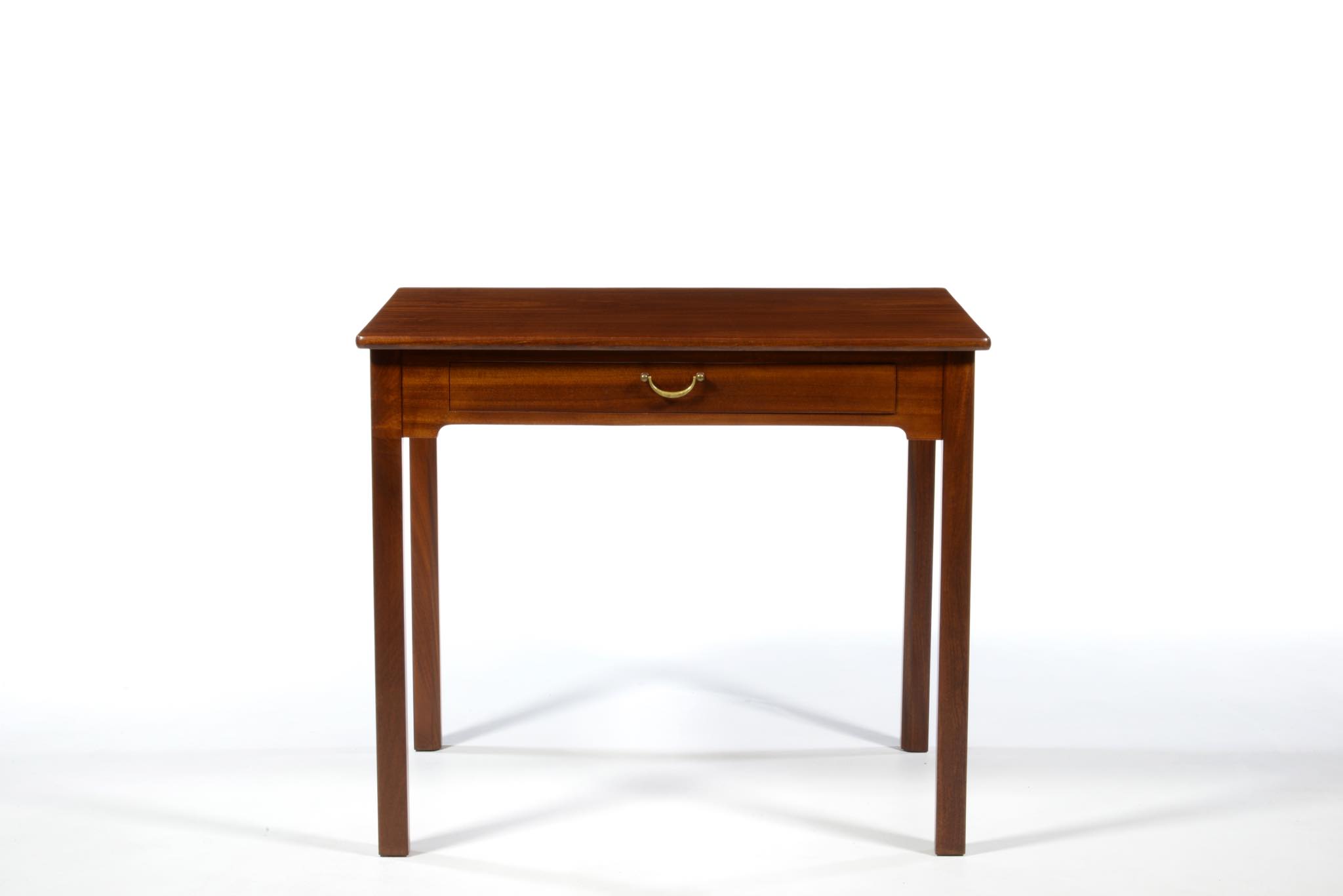 クラシックなデザインのレディースデスクです。あまり見かけないサイズ感のもので、マホガニー材が用いられており、天板には無垢材が使われています。底面には ”FDB” のスタンプがあり、FDB家具部門創設初期の頃にボーエ・モーエンセンによってデザインされた作品と思われますが、資料に乏しく詳しいことはわかっておりません。FDB家具部門では、当初職人家具を手がけていたようで、こちらのデスクもそのシリーズかと思われます。