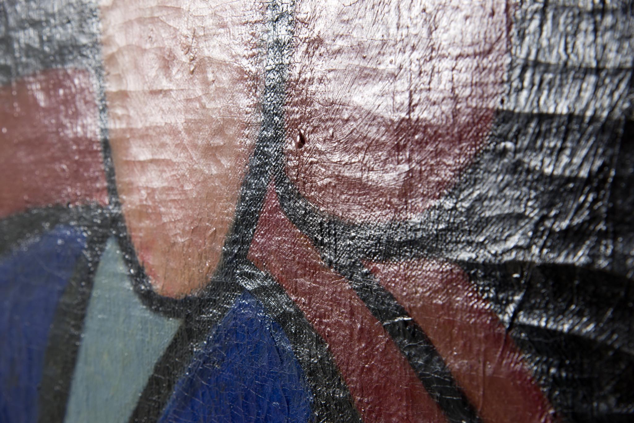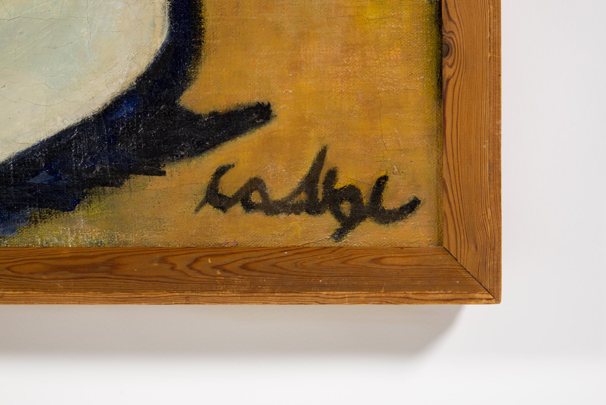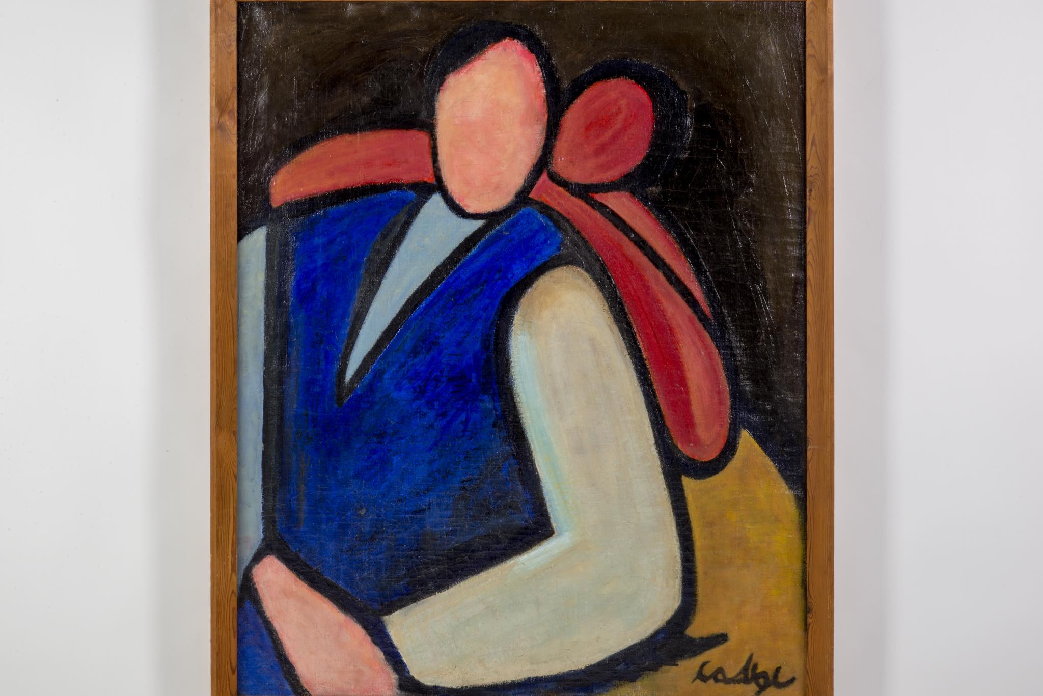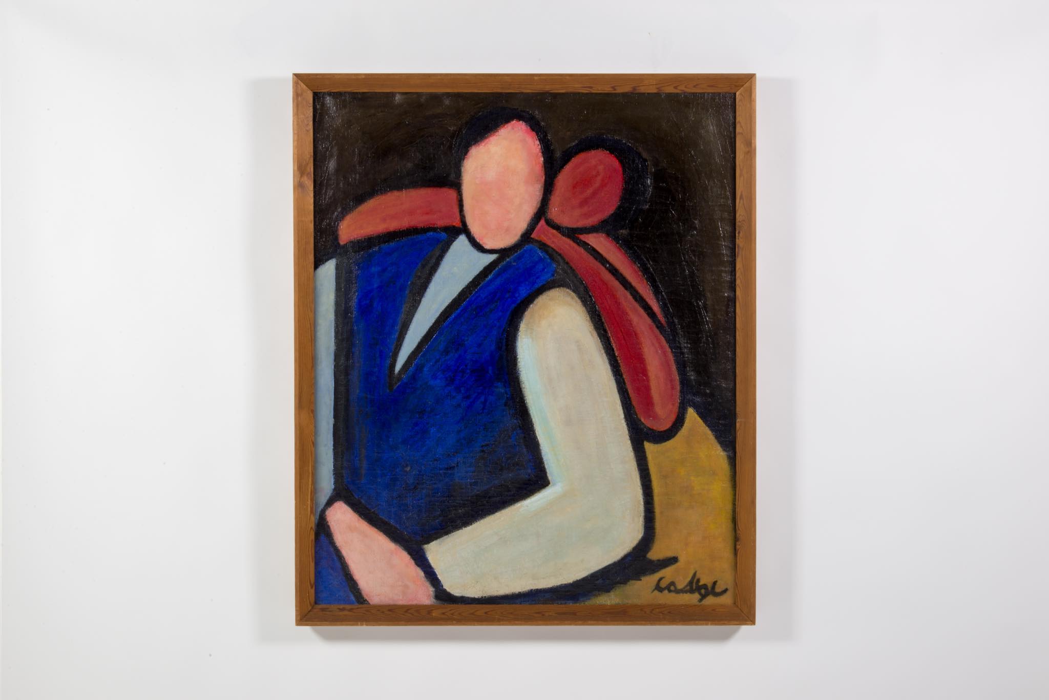 デンマークのアーティスト、Svend Saabye/スヴェン・サービュによる人物をモチーフにしたコンポジション作品です。抽象画を手掛けた1960年代の作品です。キャンバスにオイルで描かれており、フレームを入れると高さ100センチを超える大ぶりな作品です。パイン材のフレームもオリジナルと思われ、コンディションは良好です。