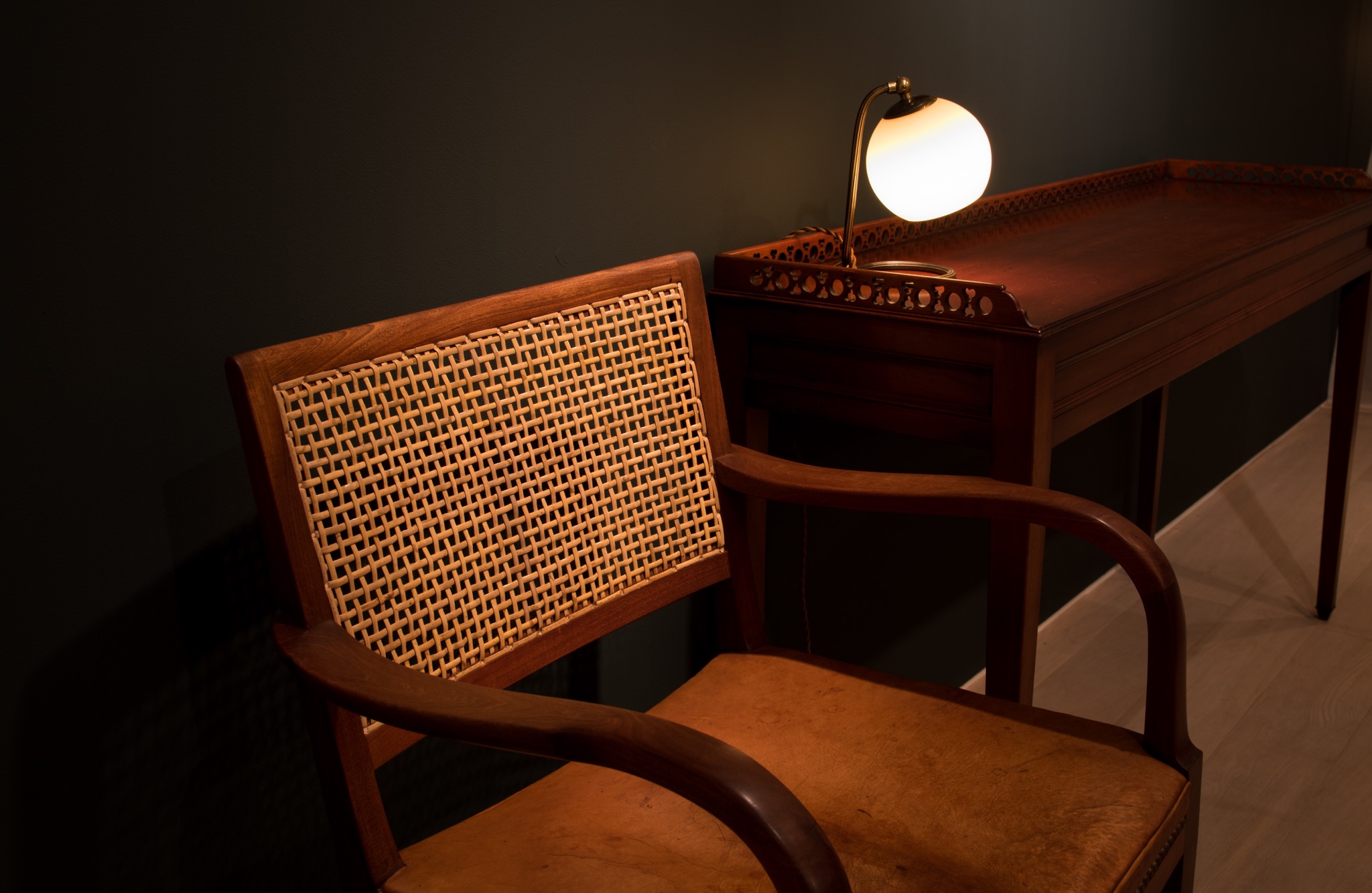 1911年、当時デンマークで最も知られていた家具工房のひとつ I.P. Mørckでの修行を終え、ドイツ、フランス、イギリスなど、感性を磨くためにヨーロッパ各国を旅します。帰国後の1915年、自身の家具工房を開き、アンピール様式、ロココ様式、そしてイギリスの17世紀スタイルなど、中央ヨーロッパから受けたインスピレーションと、活気に満ちた個性で、完璧主義的なスタイルを確立します。歴史に刻まれたこれまでの伝統的様式をもとに、モダンなデザインとして描き直し、多くの人々を魅了しました。