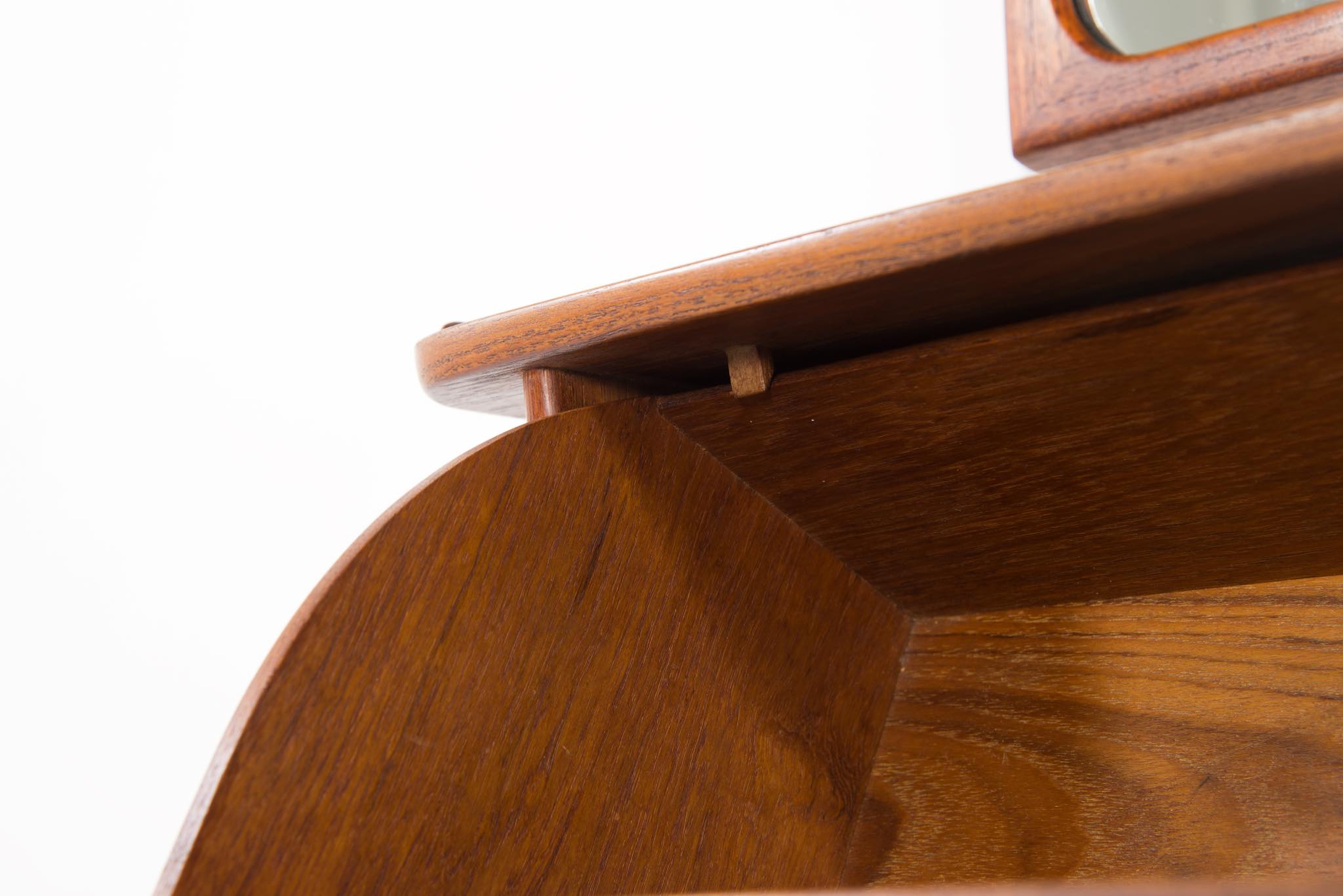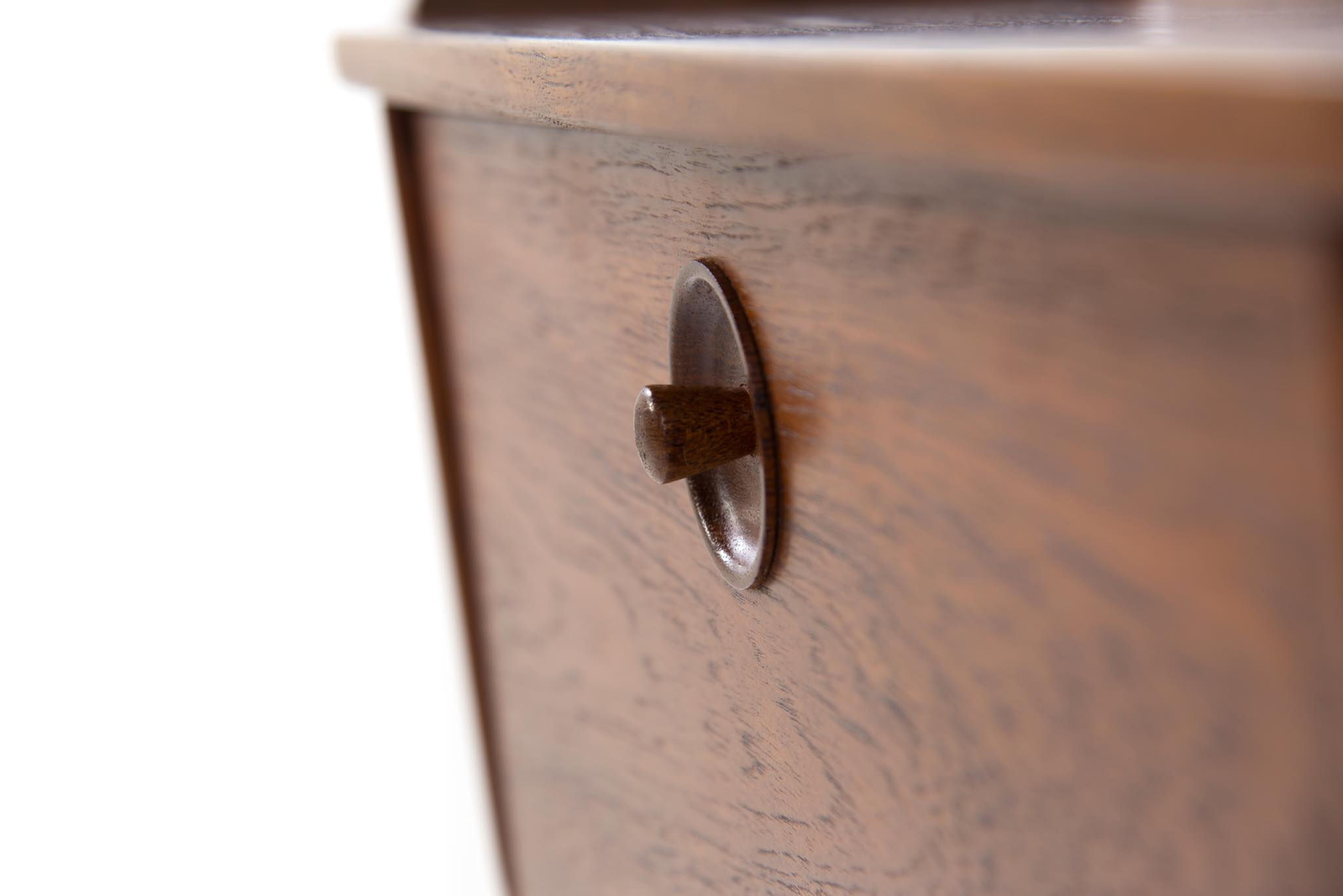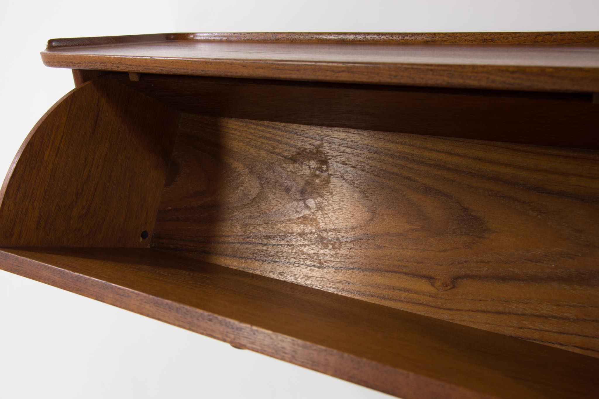 ポントピダン工房は、1961年、フィン・ユールによるカラフルな抽斗のチェスト「Handskeskab」を手がけた工房として知られています。特にテーブルや箱物を得意とするメーカーですが、木工芸としての精度が極めて高く、木材の持つ特性を十分に引き出しながら家具製作を行ったことで知られています。