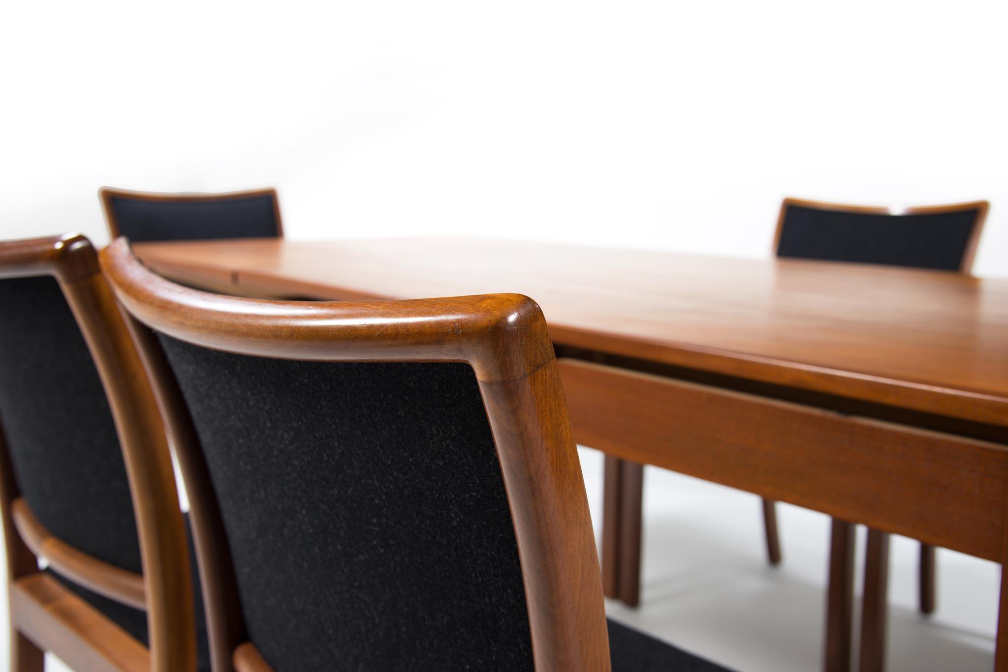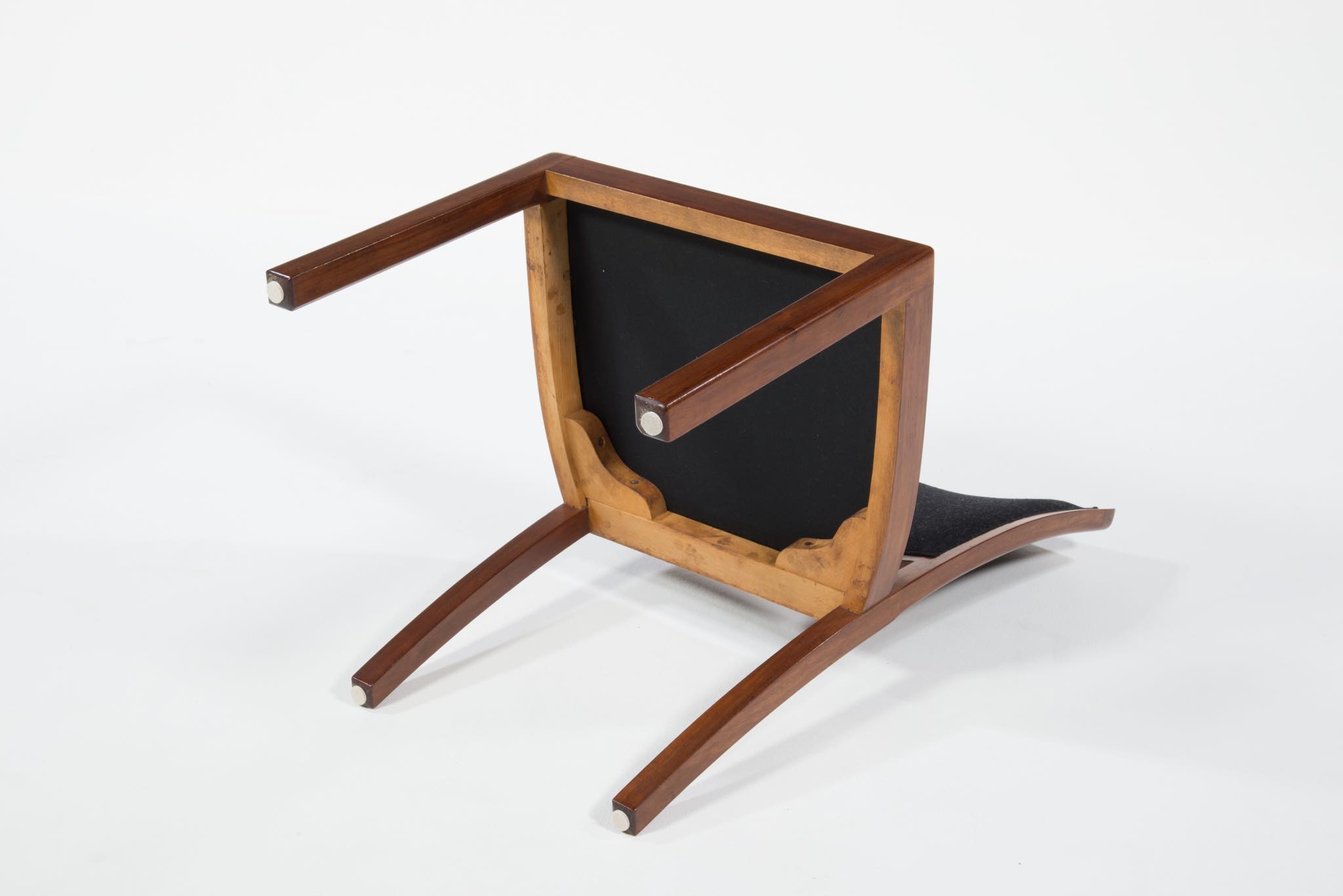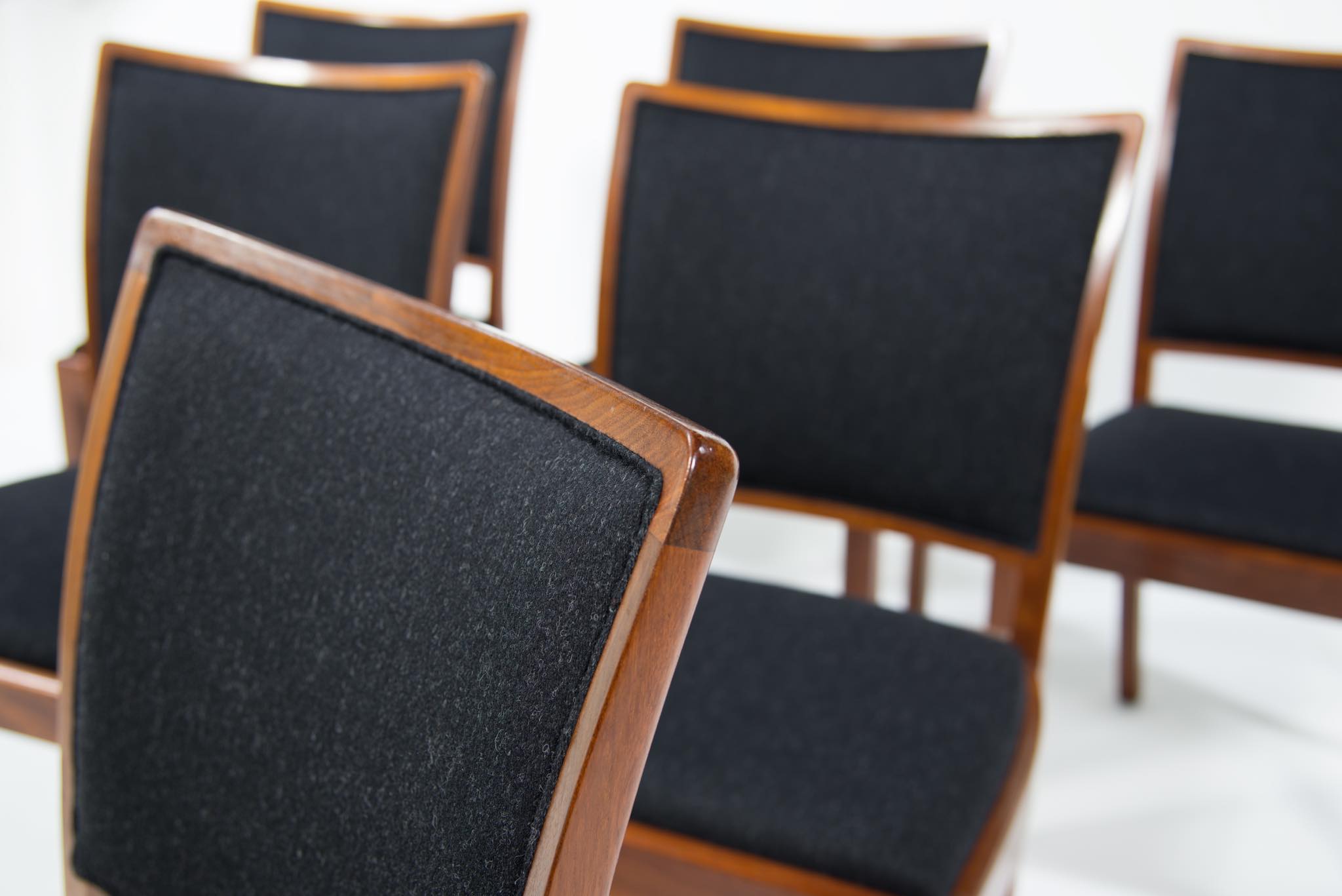 デンマークの名匠、Jacob Kjær/ヤコブ・ケアによってデザインされたダイニングチェア6脚セットです。1936年の同展示会に出品された記録があります。クラシックな趣を全体に残しつつ、モダンな要素を取り入れた、ダニッシュモダン黎明期の作品で、末尾に掲載しております当時の展示風景は、部屋の寸法やレイアウトなどヤコブ・ケア自身によるものです。素材には惜しみなくキューバンマホガニーが用いられ、天板部分に現れた流れるような独自の木目文様はとても優雅な雰囲気です。
