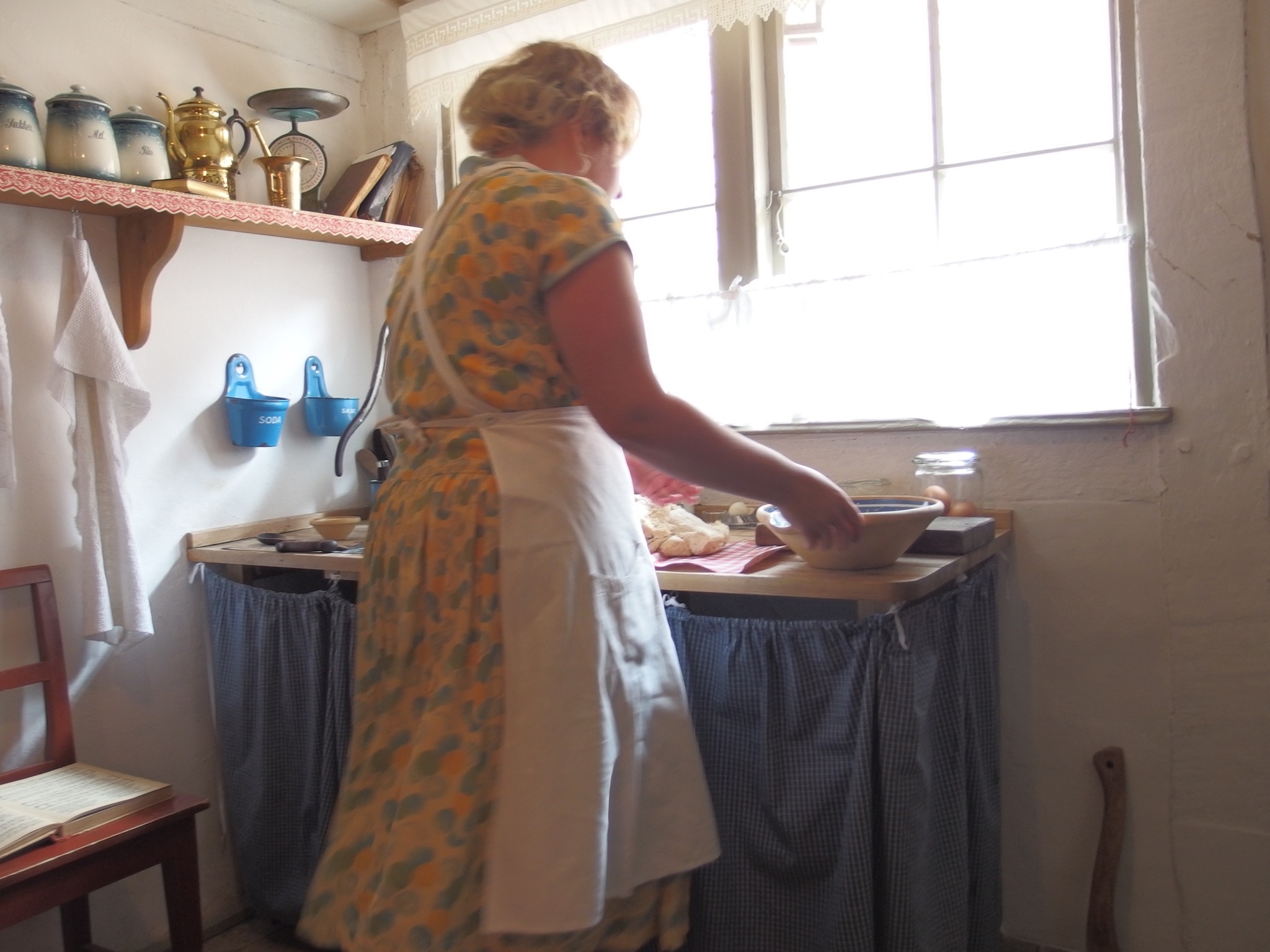 オーフスの野外歴史博物館、デン・ガムレビュの様子をいくつかに分けて掲載しています。このテーマパークでは、例えば19世紀のキッチンで、その当時の服装を着て、当時の調理方法で料理を作っているシーンを間近に見ることができます。19世紀の奥さんは鼻歌を歌いながら楽しそうに料理していました。