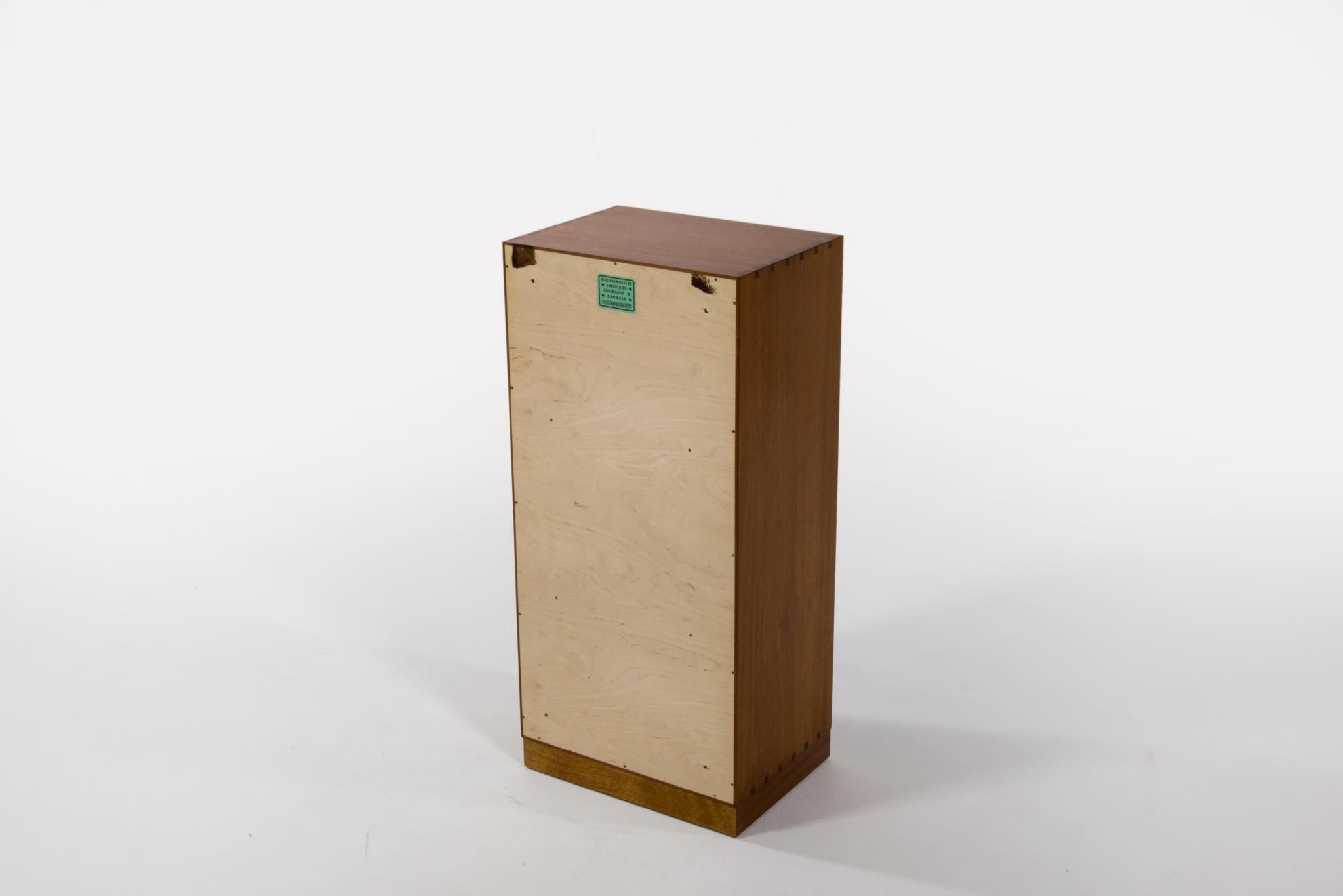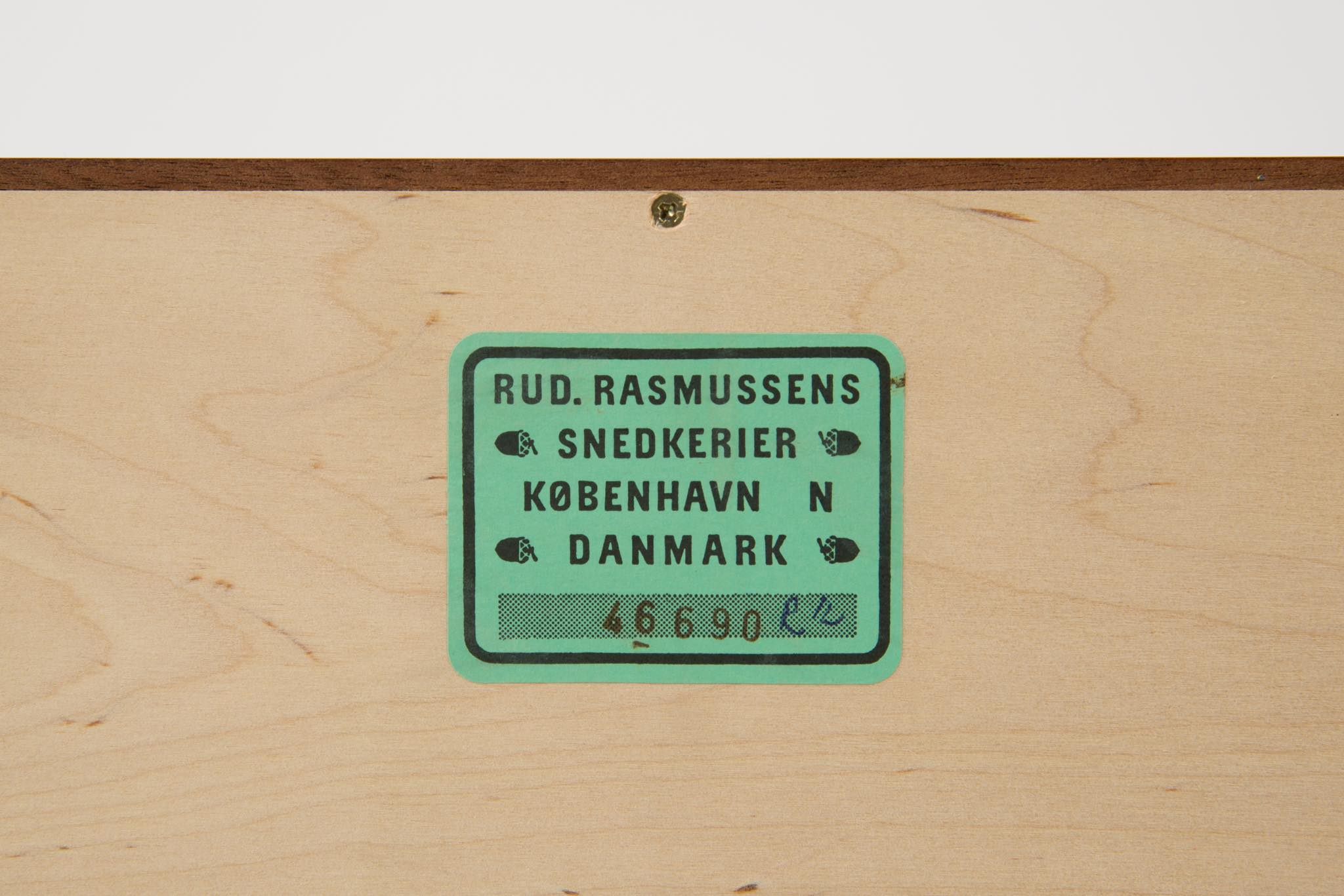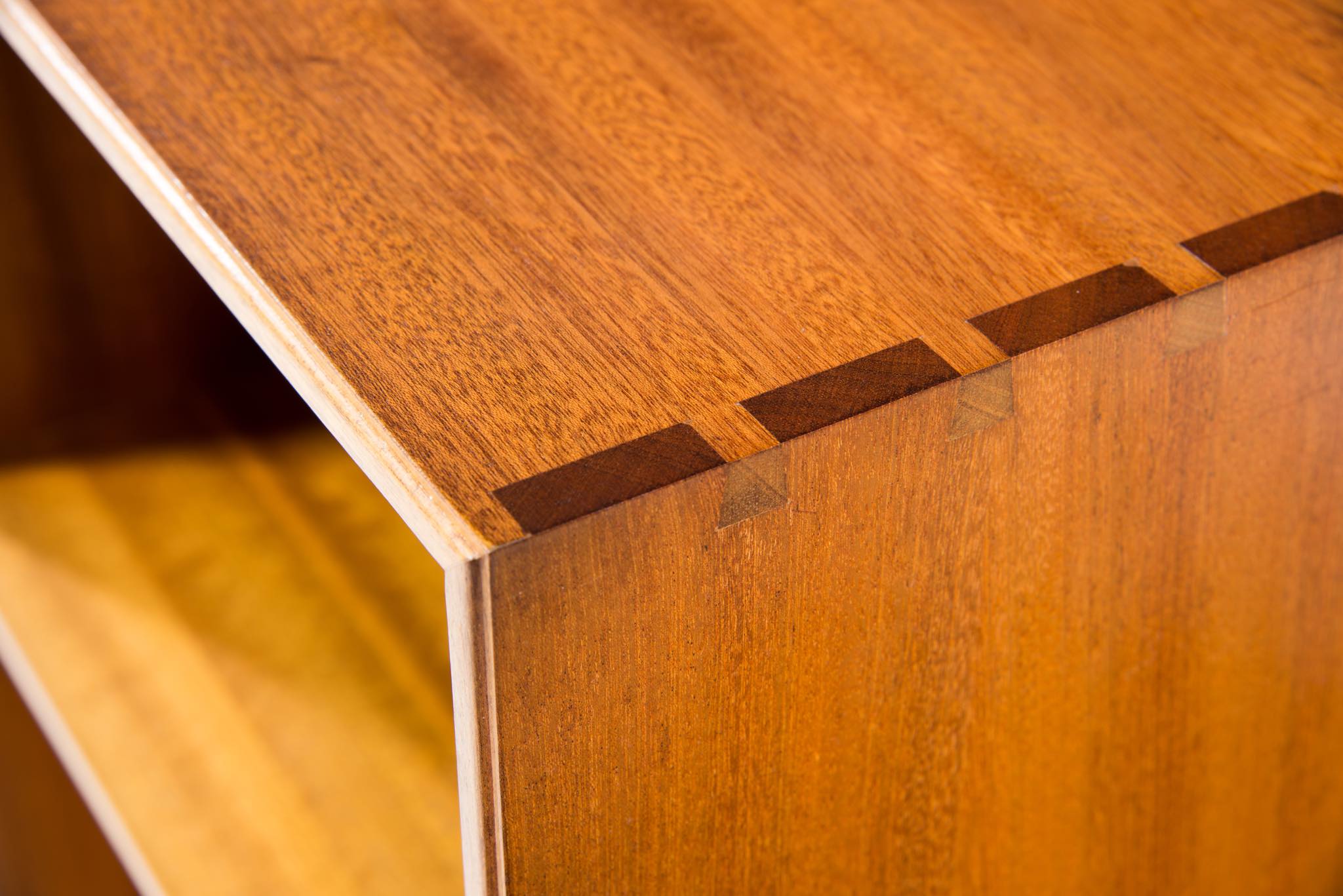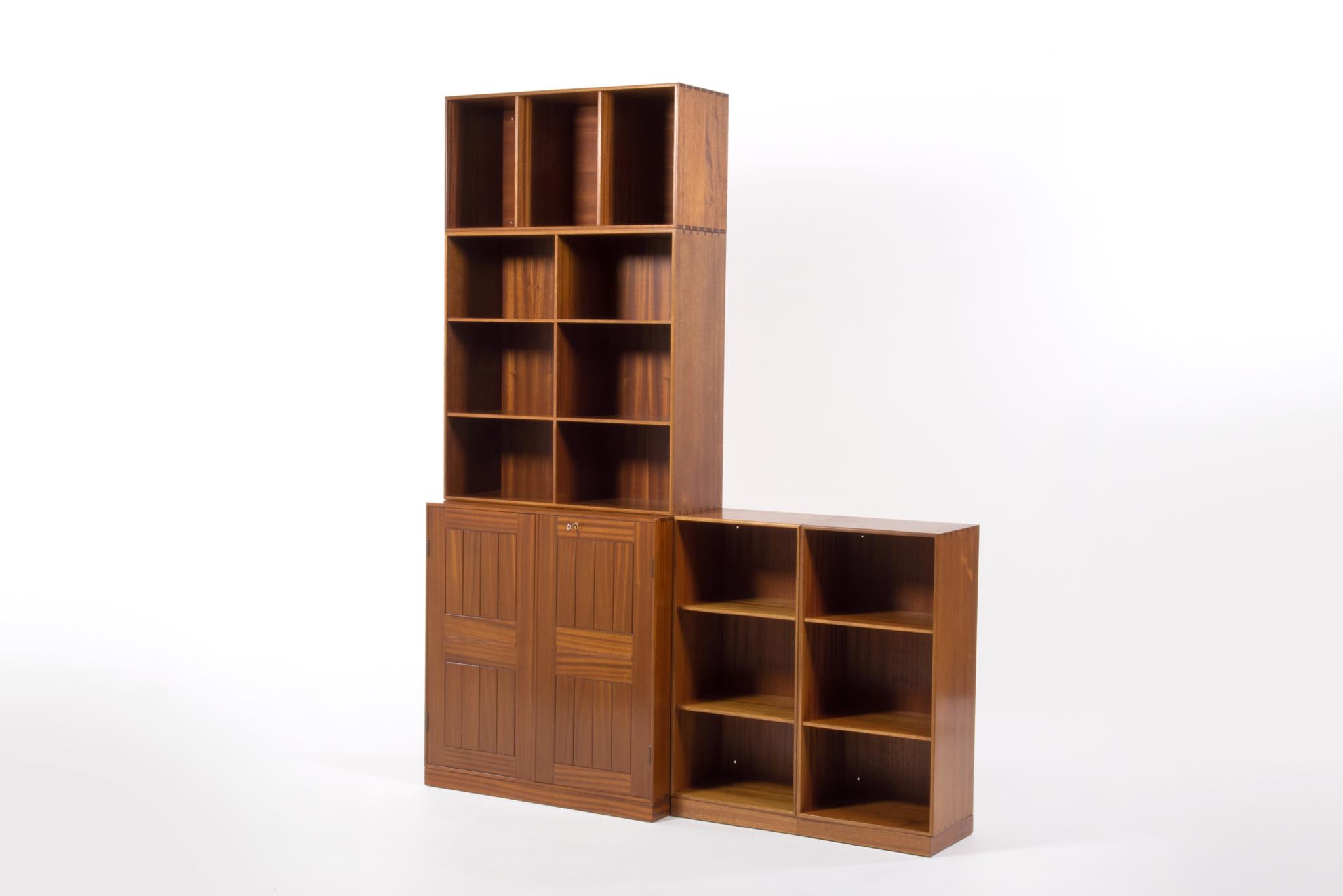 ルド・ラスムッセン工房製、Mogens Koch/モーエンス・コッホによるデザインの名作ブックケース、無垢のマホガニーを用いたモデルです。こちらのタイプは通常の半分のサイズのもので、単体で使用したり、通常のシェルフに乗せるなどアレンジの効くものとなります。単体で縦型で使用する場合は棚板の高さが低いためA4書籍を立てることはできません。横置きであればA4サイズは収納可能です。壁付けで使用するための穴が背板に開けられていますが、見栄え良く綺麗に加工されています。ベース(台輪)は職人依頼にてマホガニー材を用いて作成しました。