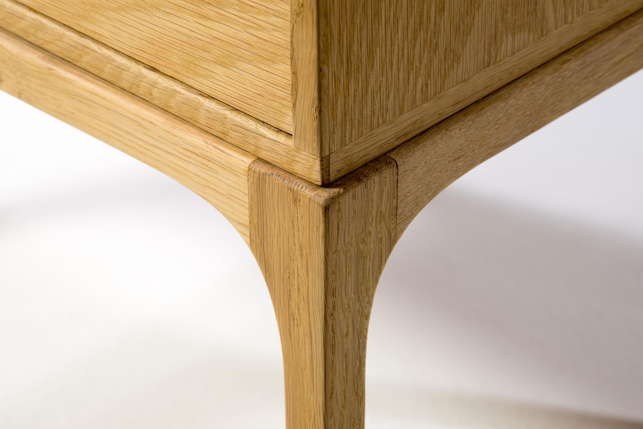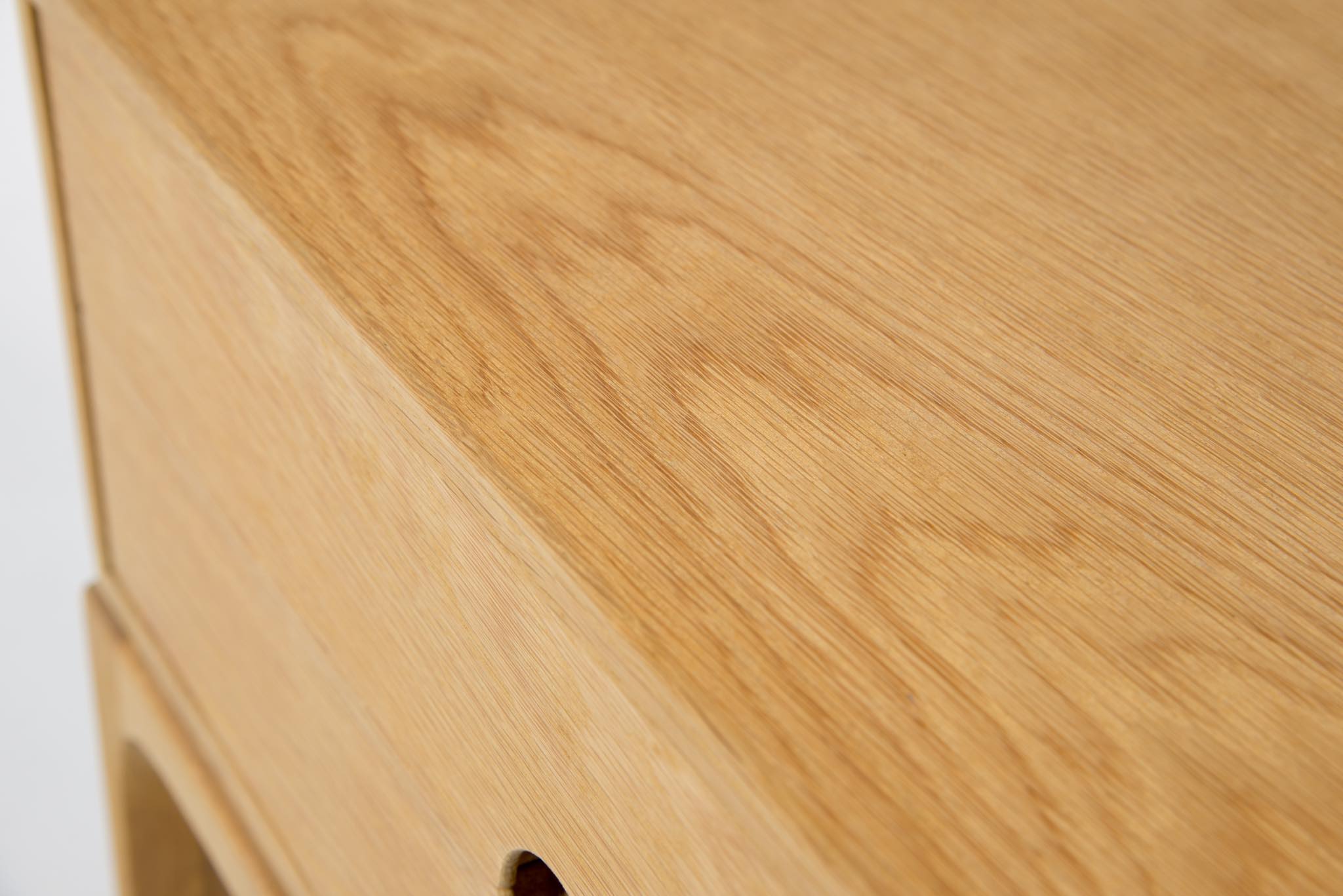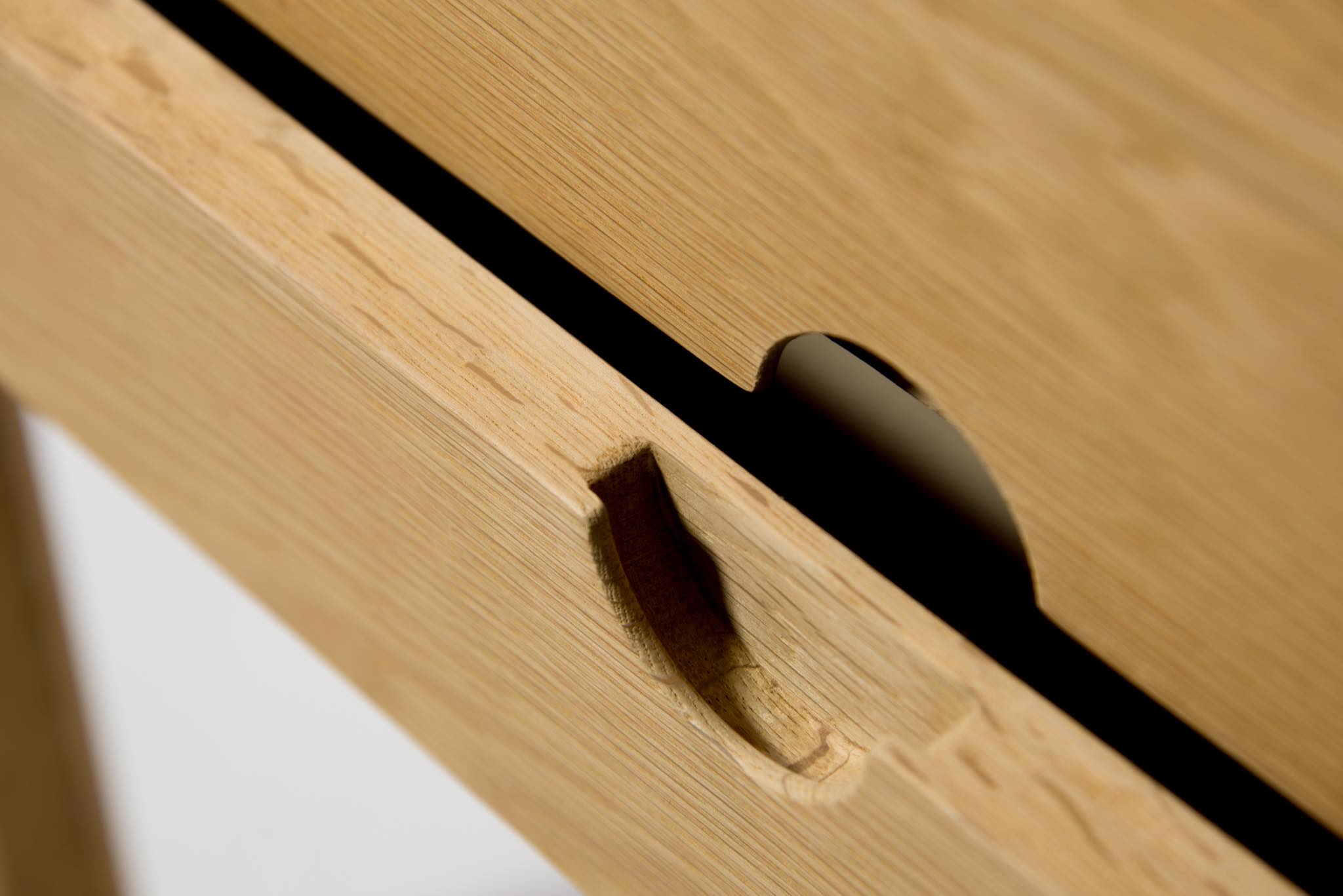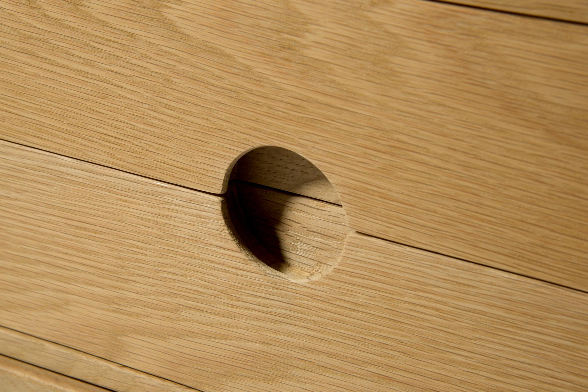 Kai Kristiansen/カイ・クリスチャンセンによるデザイン、Aksel Kjersgaard/アクセル・キアスゴー工房によって製作された小振りなチェストです。彫り込んだ円形が上下の抽斗の引手となるモダンなデザインのチェストで、当時人気を博したようです。素材はオーク材、ソープ仕上げを施しておりコンディションは良好です。
