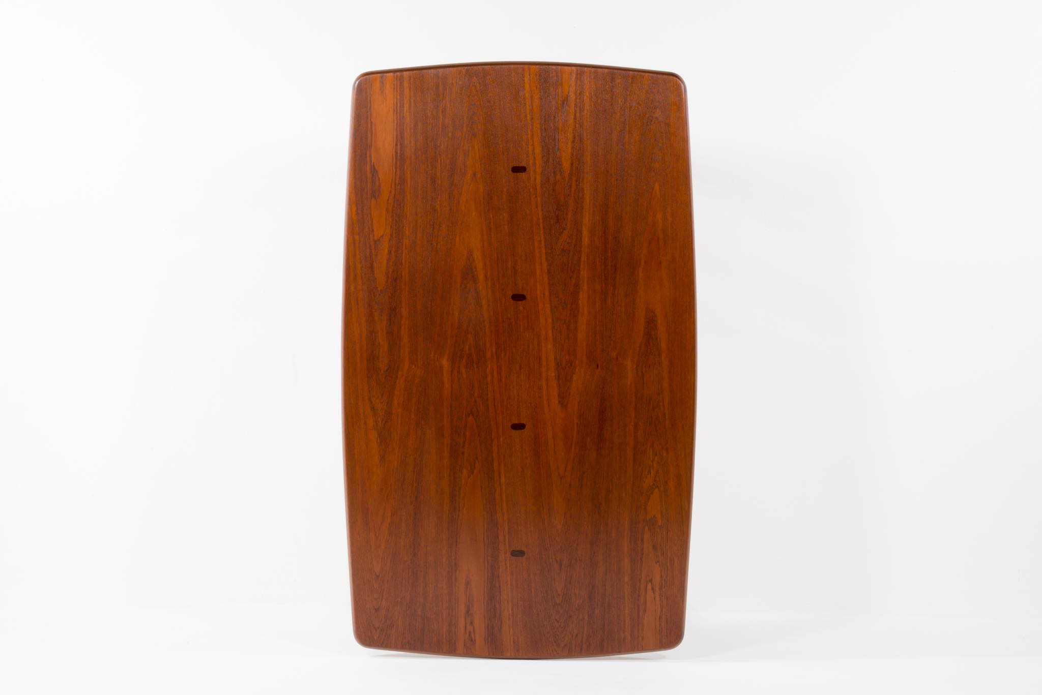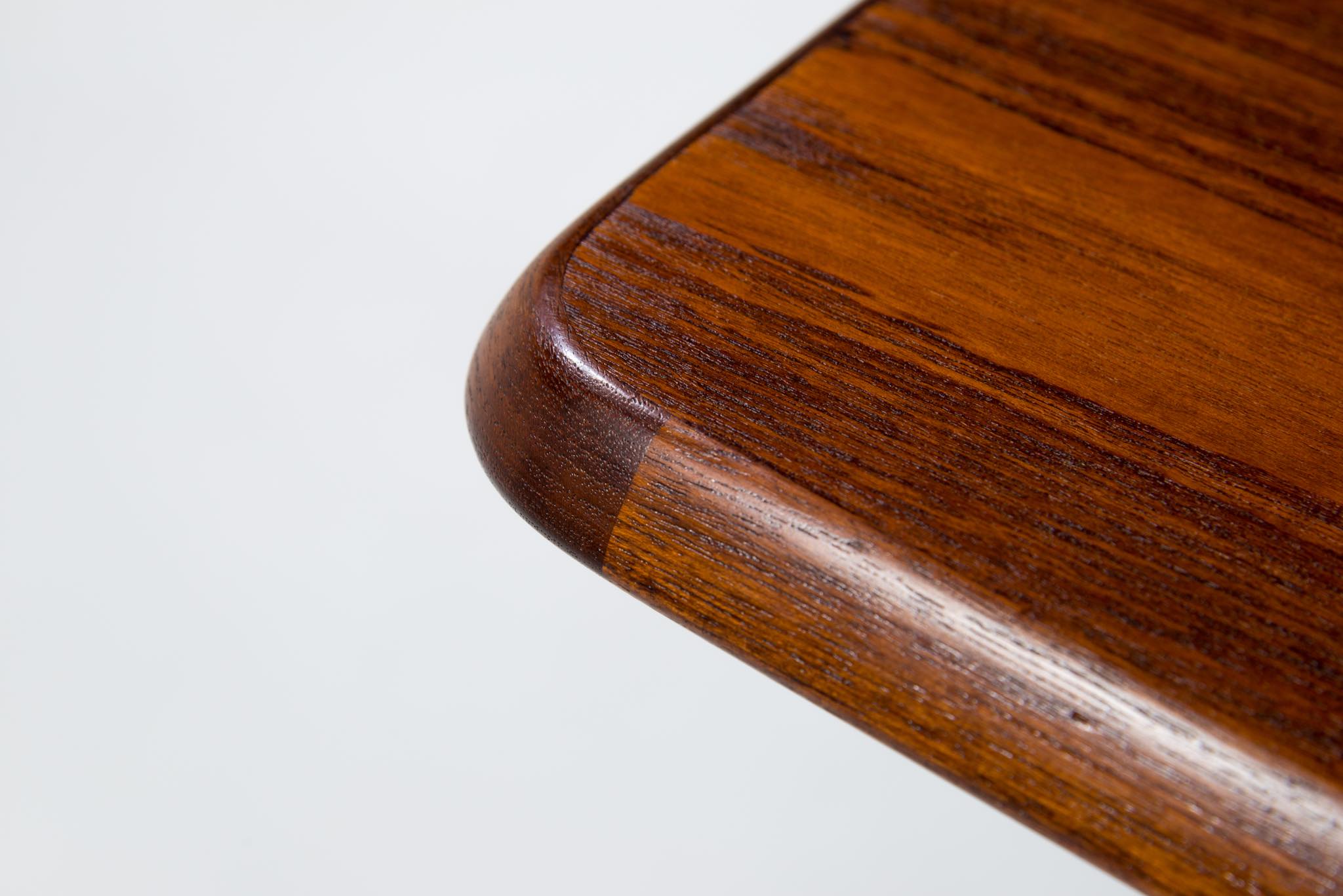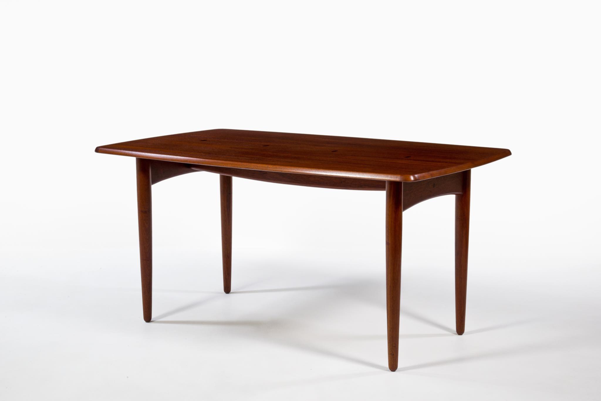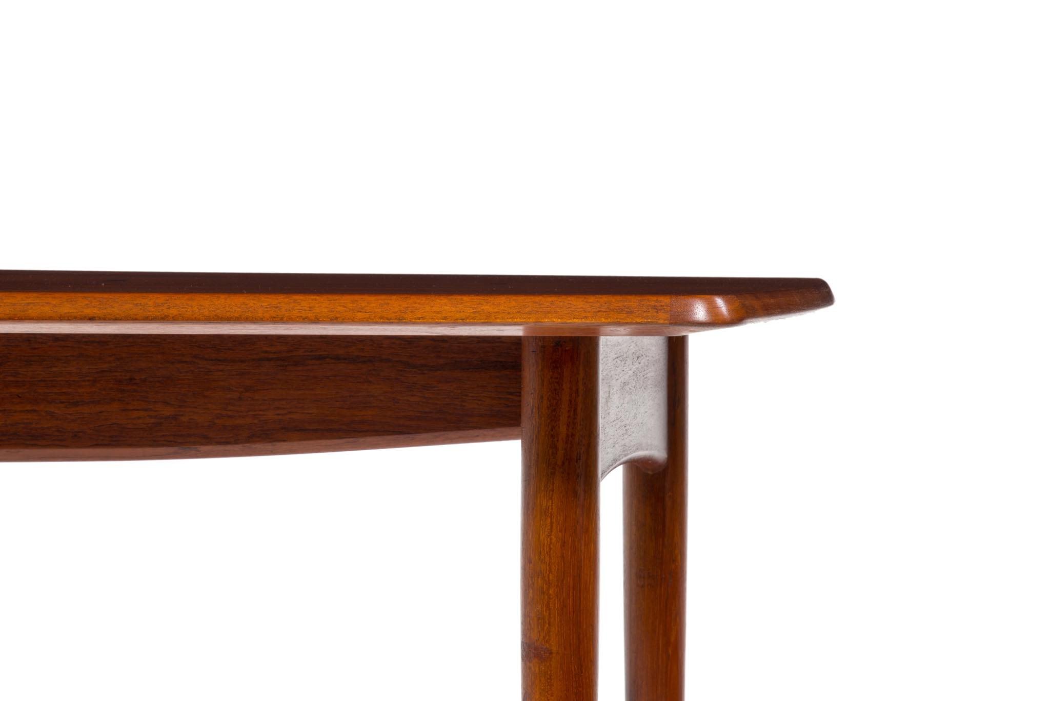 デンマークのデザイナー、Harbo Sølvsten/ハーボ・ソルブステンによるワークテーブルです。ダイニングにもお使い頂けます。1950年代頃に作られたものでしょう。本体はチーク材が用いられており、構造と天板の釘隠しにローズウッドが象嵌されています。脚を外すことが出来ないので、搬入の際には採寸が必要です。コンディションは良好です。
