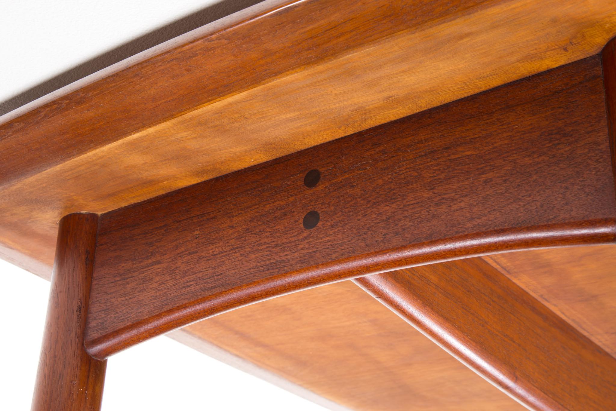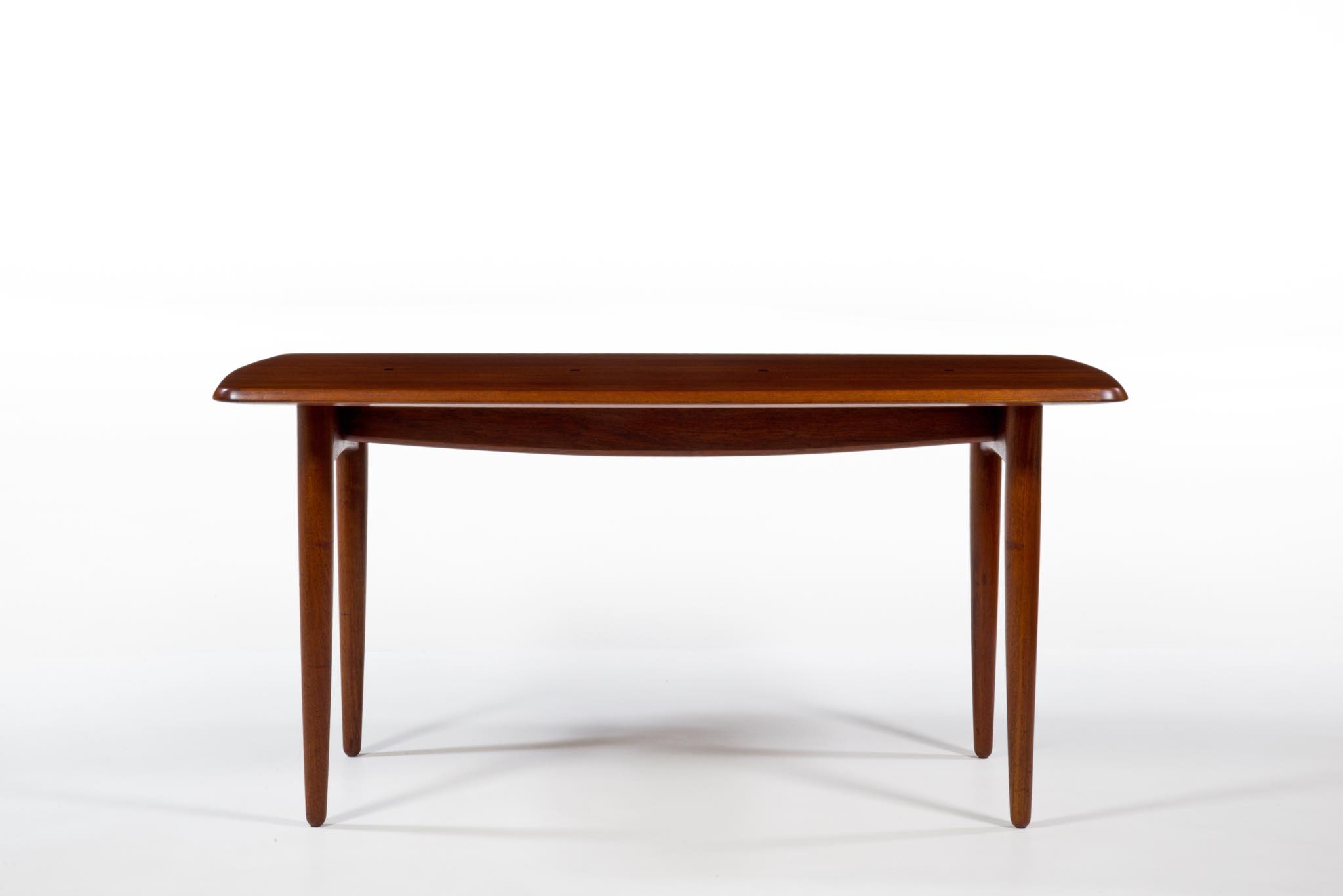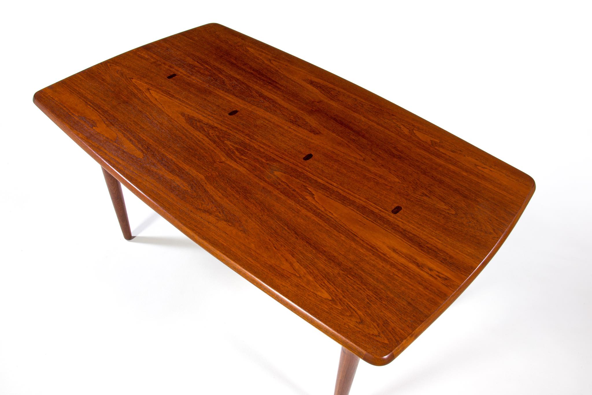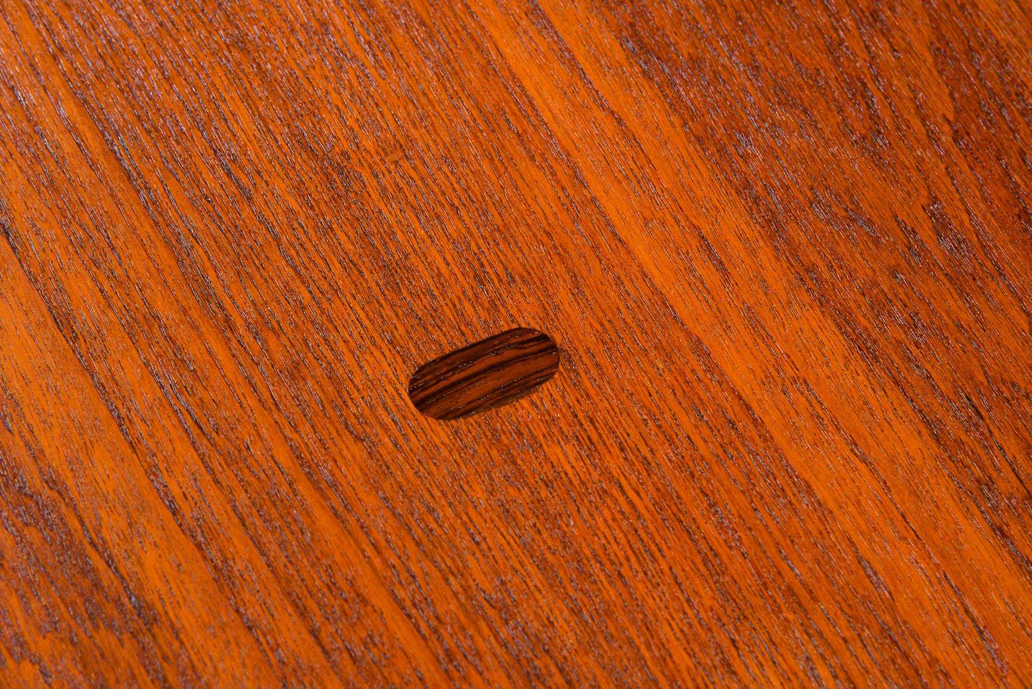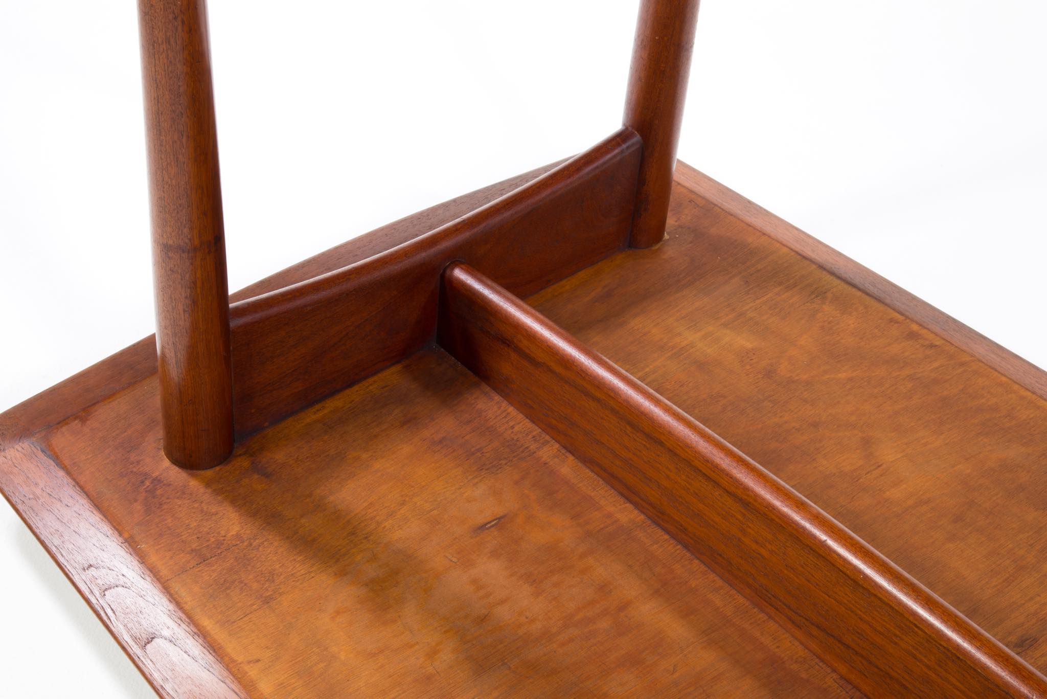 デンマークのデザイナー、Harbo Sølvsten/ハーボ・ソルブステンによるワークテーブルです。ダイニングにもお使い頂けます。1950年代頃に作られたものでしょう。本体はチーク材が用いられており、構造と天板の釘隠しにローズウッドが象嵌されています。脚を外すことが出来ないので、搬入の際には採寸が必要です。コンディションは良好です。