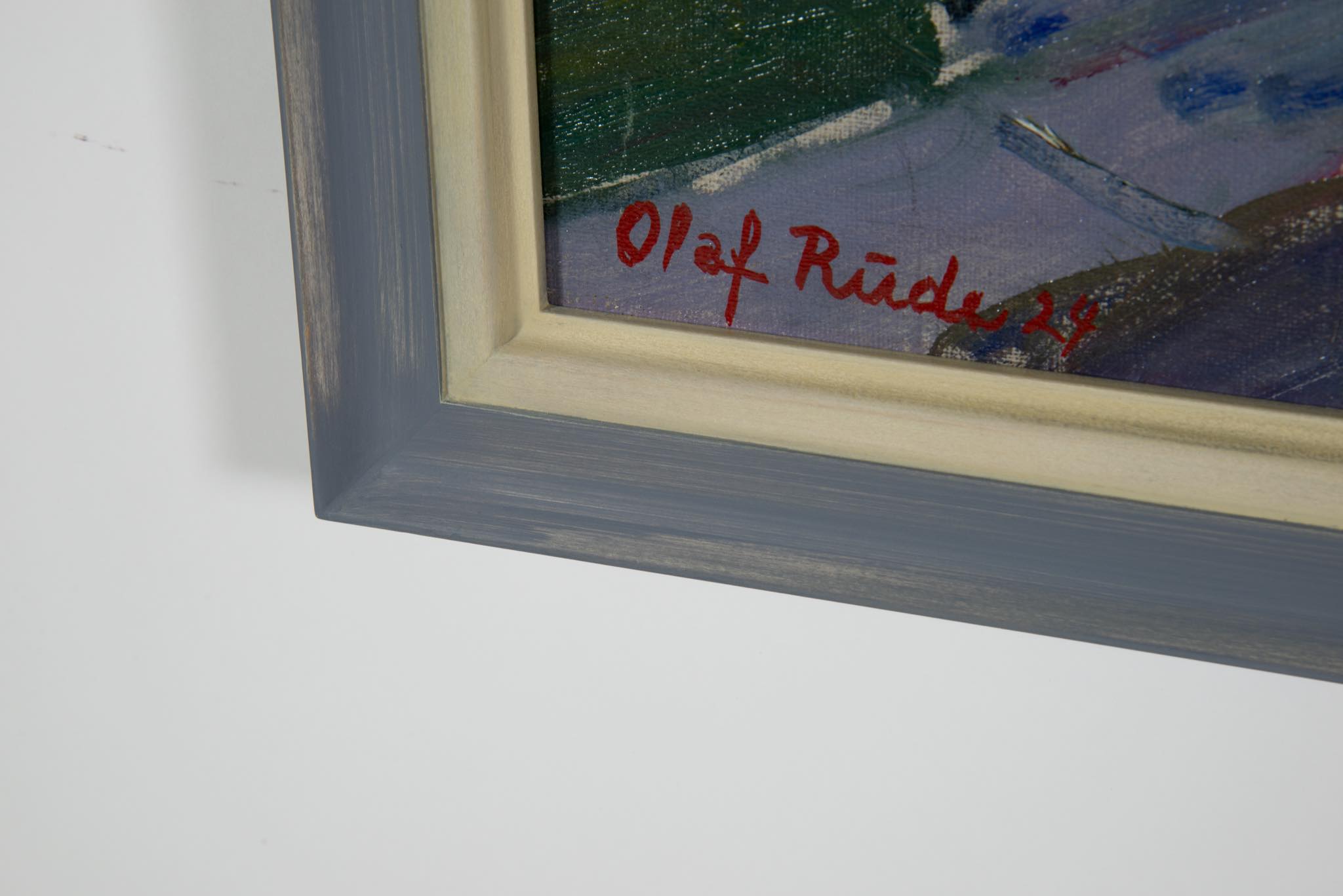 エストニアに生まれ、デンマークへ渡り活動。1905年、コペンハーゲン工科大学で学んだ後、Kunstnernes Frie Studieskoler/クンストナーネス・フリー・スタディスクールに於いてクリスチャン・サートマンやヨハン・ローデから美術の基礎を学びます。Kunstnernes Frie Studieskolerとは、それまで美術教育の中心的役割を担うデンマーク王立芸術アカデミーの教育方針に不満を抱いた学生らによって1882年に設立された美術学校で、美術教育に於いて王立アカデミーとは異なる代替プログラムを提供、デンマークの近代美術の中心的な機関として多くの芸術家を生み出し、1912年まで運営されました。Kunstnernes Frie Studieskolerを卒業したオラフ・ルードは、1911年にパリへ渡り、ポール・セザンヌの影響を受けます。また、デンマークへの帰国後、第一次世界大戦の時代に、形式や線、そして色彩に焦点を当てた表現を試みました。1919年にはBornholm島に移り、風景画を中心に描きます。オラフはデンマークに於けるモダニズムのひとりであり、鮮やかな色彩を風景画に用いたため、"デンマークのマティス" と呼ばれることもありました。1953年から1956年まで王立デンマーク美術学院の教授を務めました。