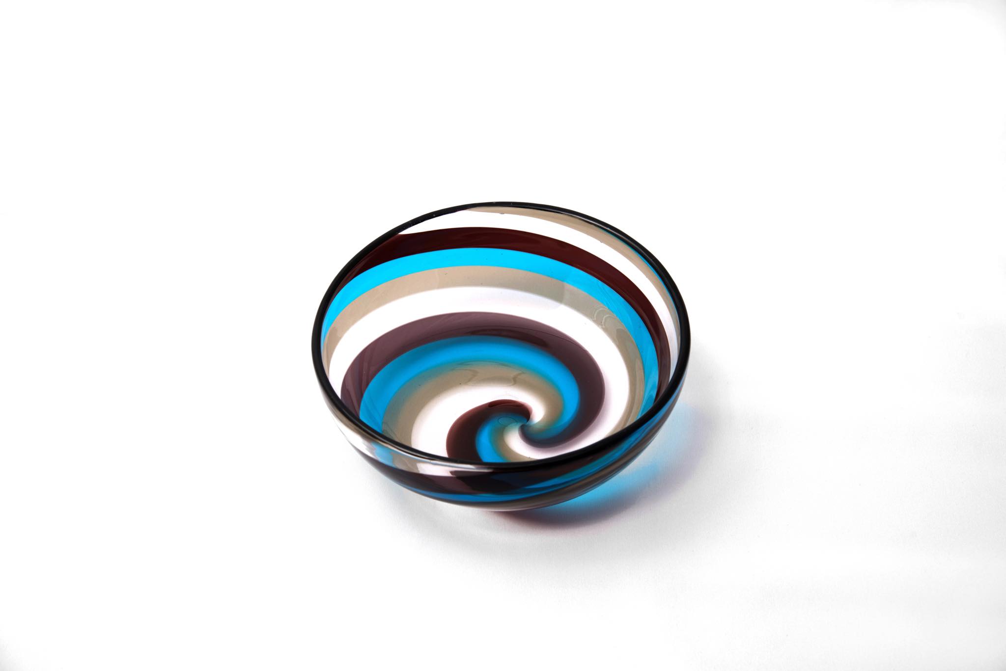 グラフィックデザイナーの道を歩んでいたビアンコーニはガラス工芸に興味を持ち、ガラス生産地であるムラーノ島を何度も訪れるうちに、ガラス職人で巨匠のパオロ・ベニーニと出会い、協働が開始されました。ガラス工芸としての伝統を維持しながら、グラフィックデザインで培った感性を生かし多くの芸術作品を生み出しました。ビアンコーニの活躍は、従来のガラス製造の限界を押し広げ、ガラス工芸界に伝説を遺したと伝えられています。