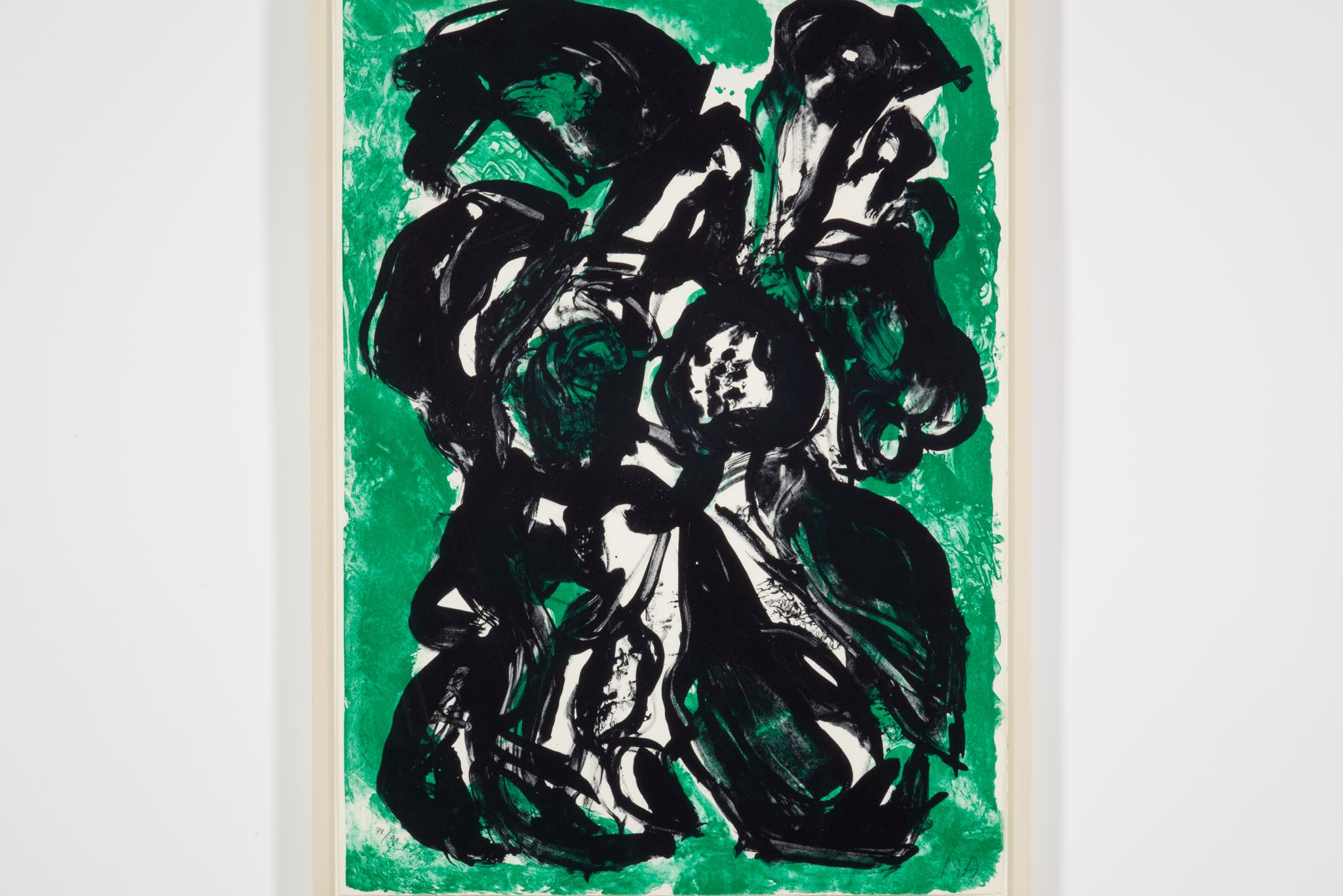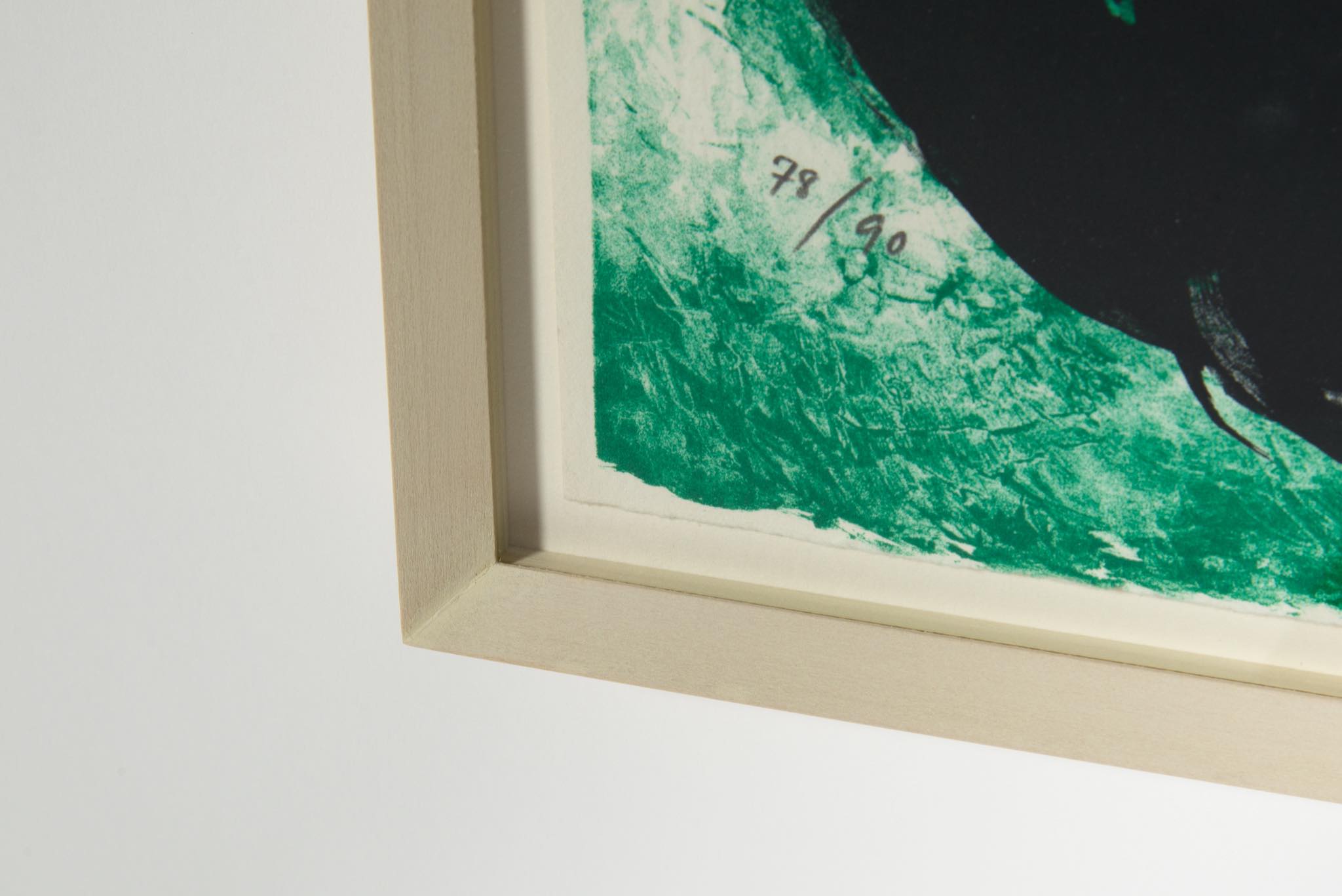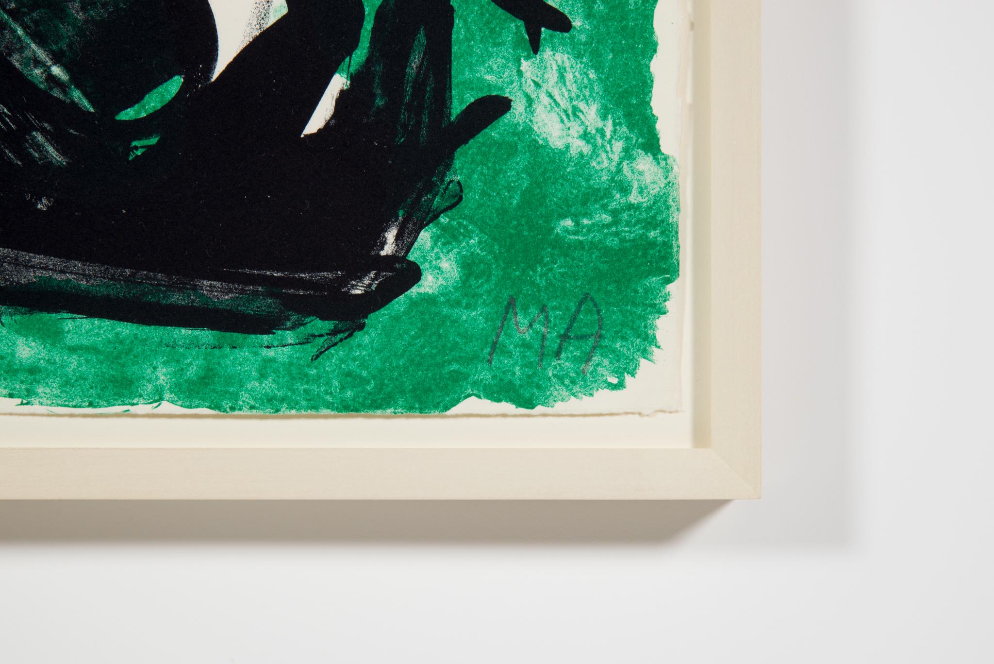 デンマークのアーティスト、Mogens Andersen/モーエンス・アナセンによるリトグラフ作品です。背景に緑色を差した作品で、エディションは90部とやや少なめです。額装を新たに整え、コンディションは良好です。