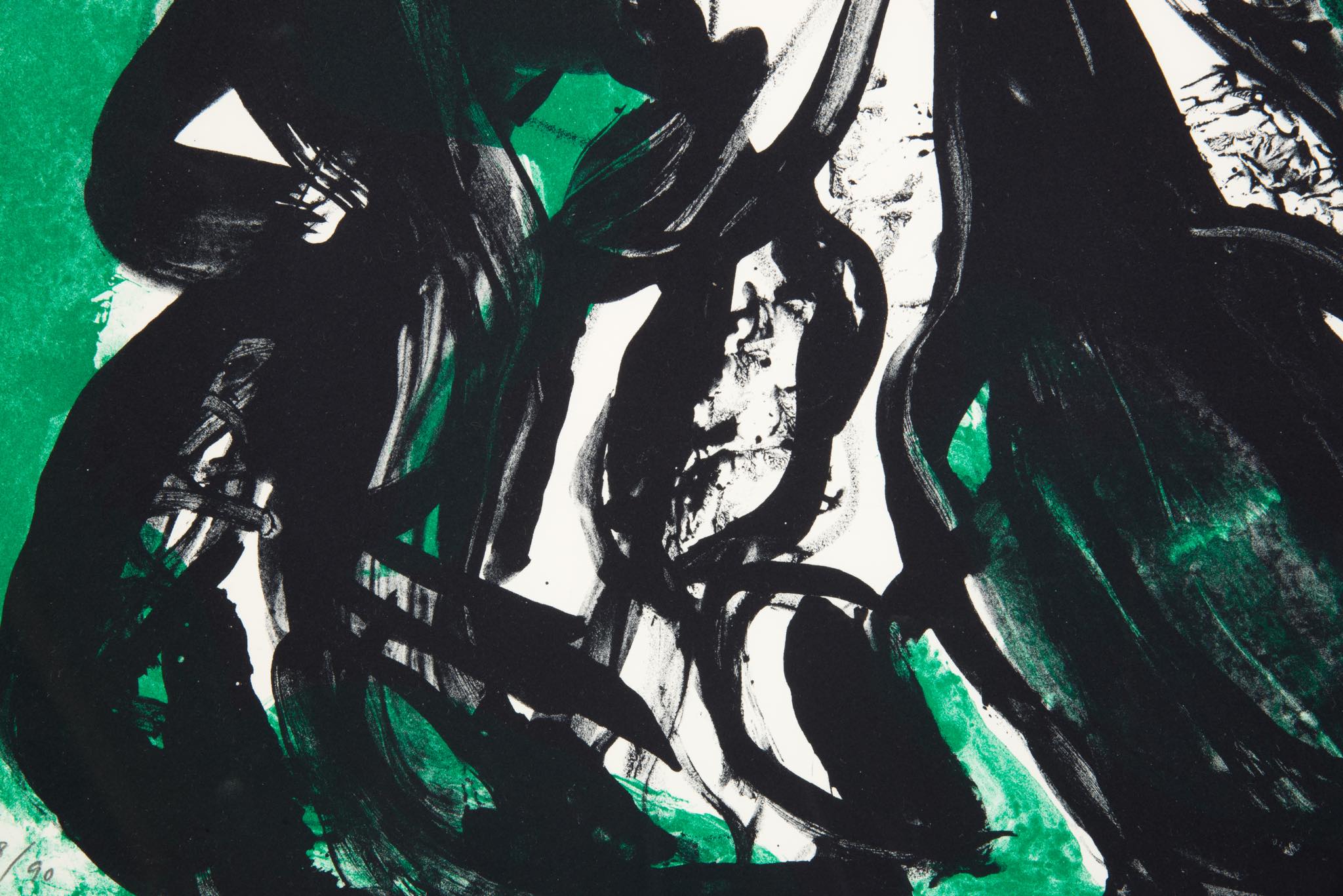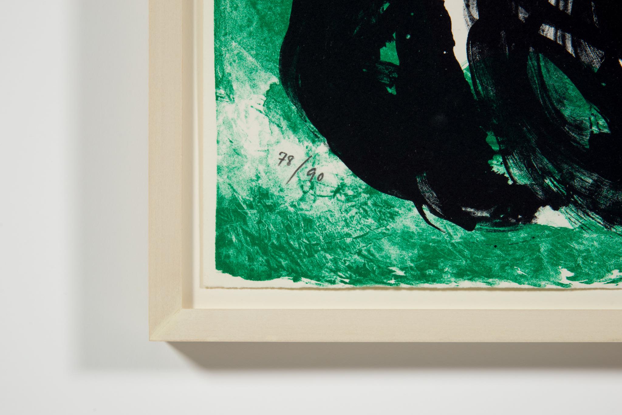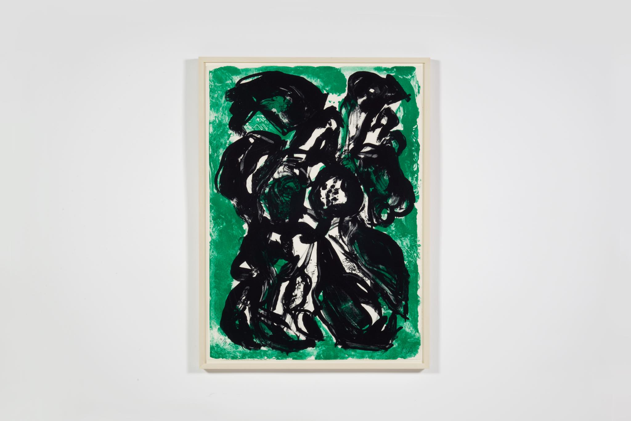 デンマークのアーティスト、Mogens Andersen/モーエンス・アナセンによるリトグラフ作品です。背景に緑色を差した作品で、エディションは90部とやや少なめです。額装を新たに整え、コンディションは良好です。