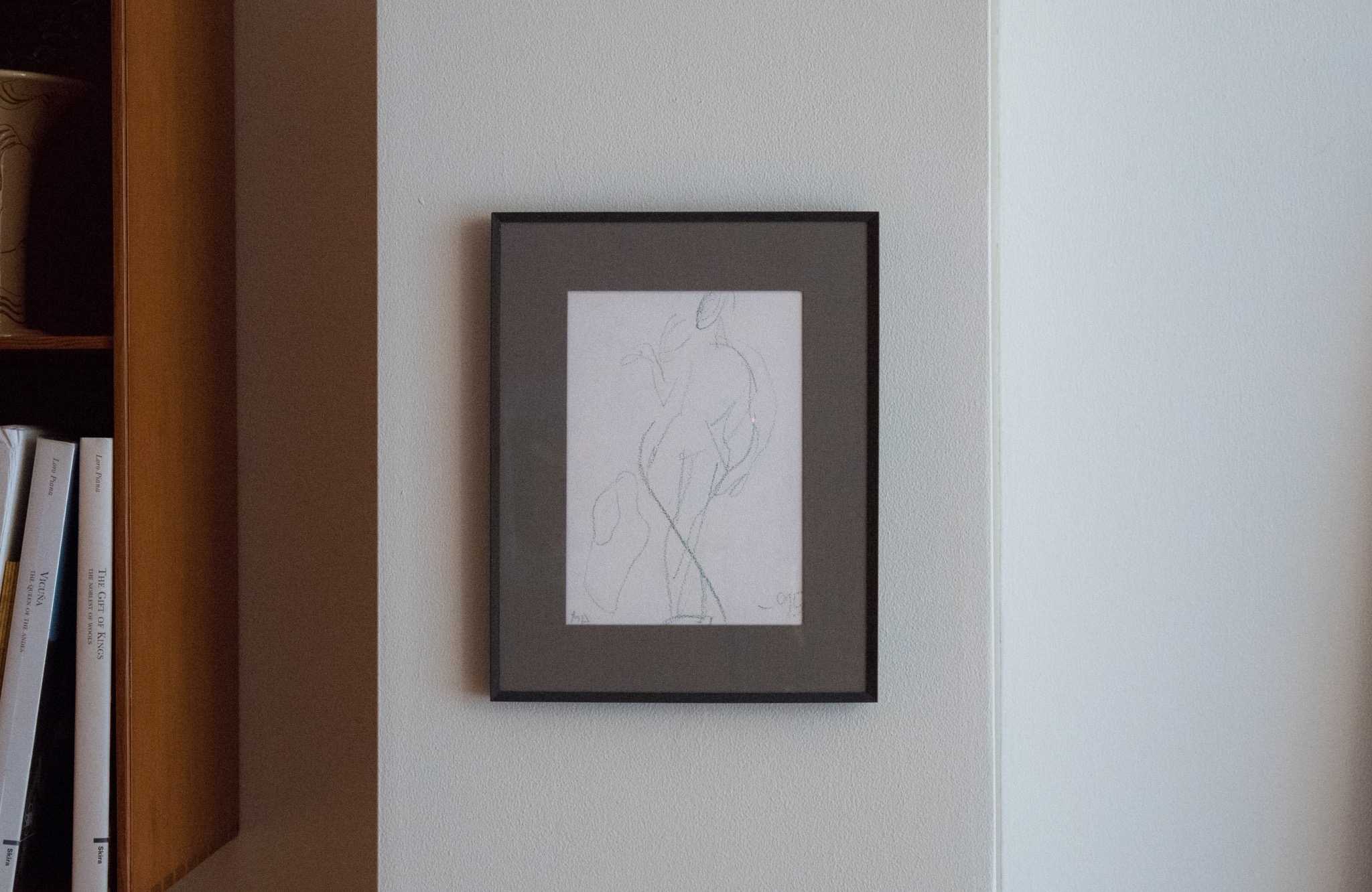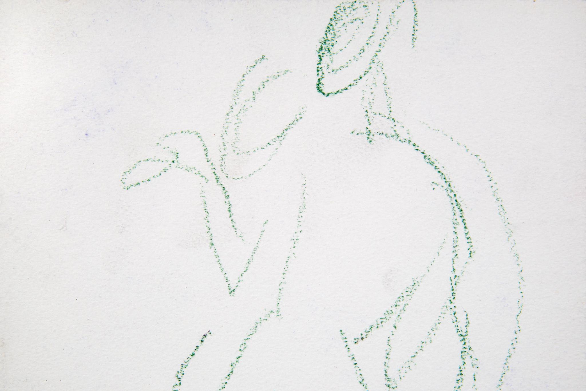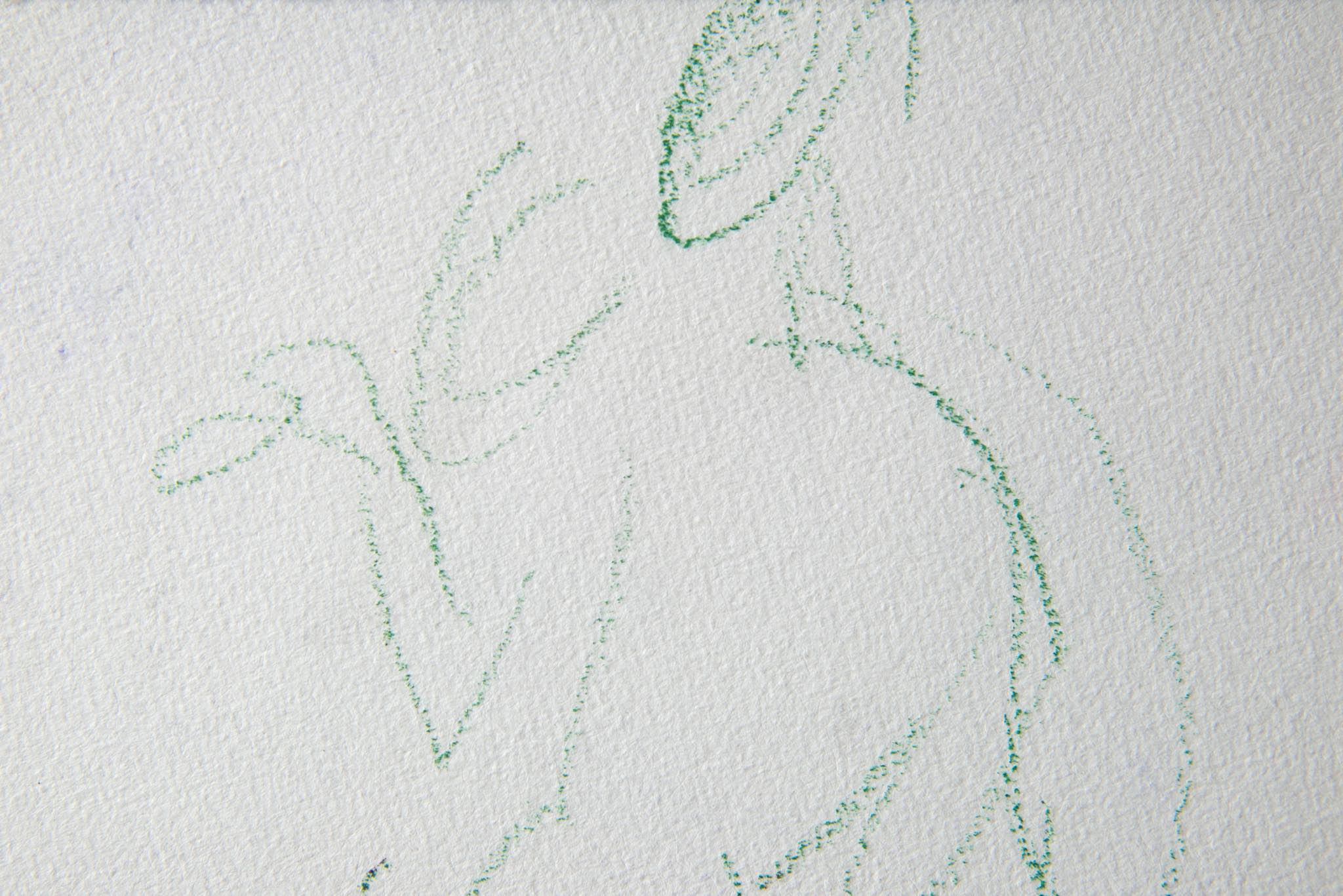 デンマークのアーティスト、Mogens Andersen/モーエンス・アナセンによる素描作品です。モチーフは珍しく人物と思われ、紙に鮮やかな緑色のパステルで描かれています。鋼鉄に錆びを施したフレームと布被せマットを新たに整えました。