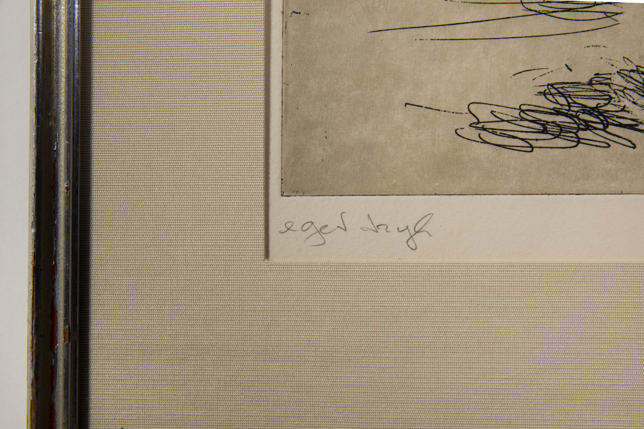 Etching with original frame and new fabric mat