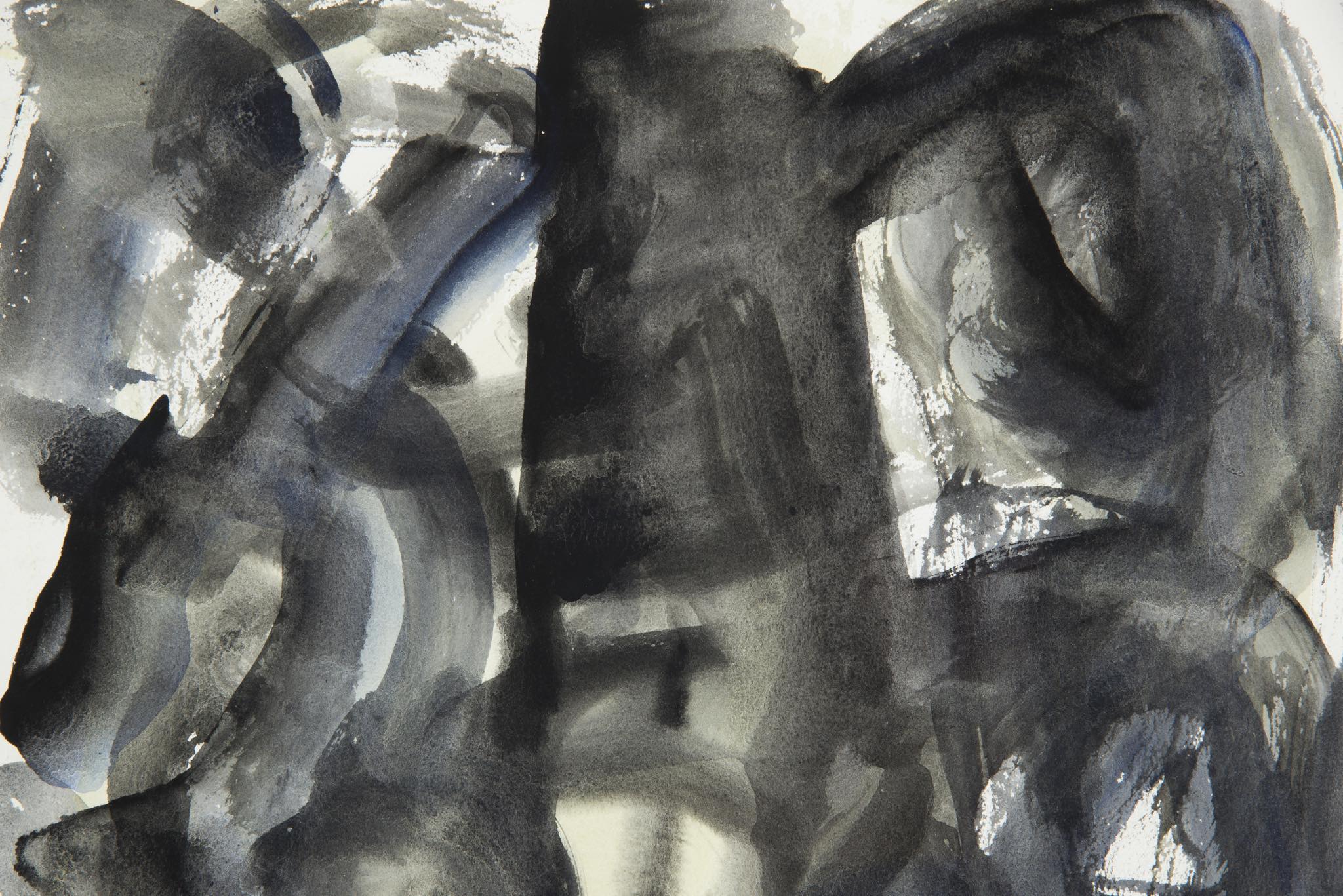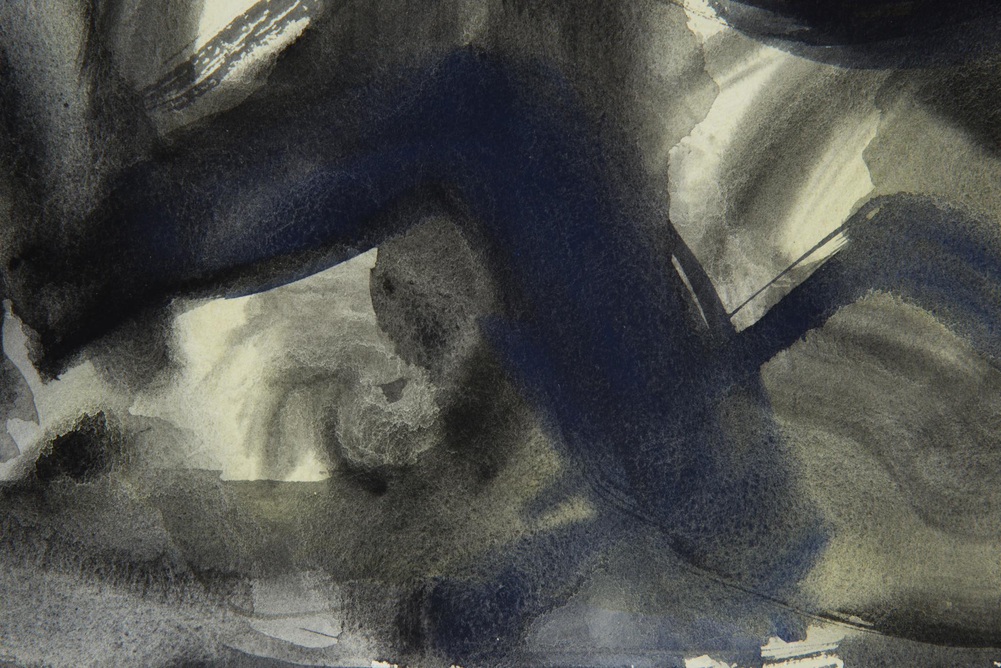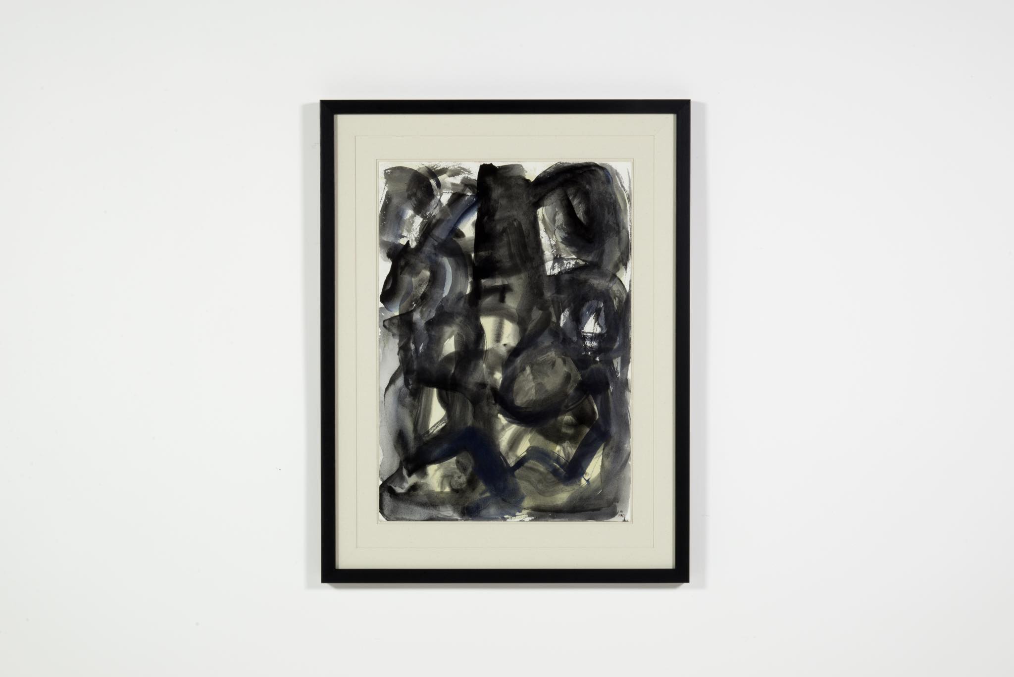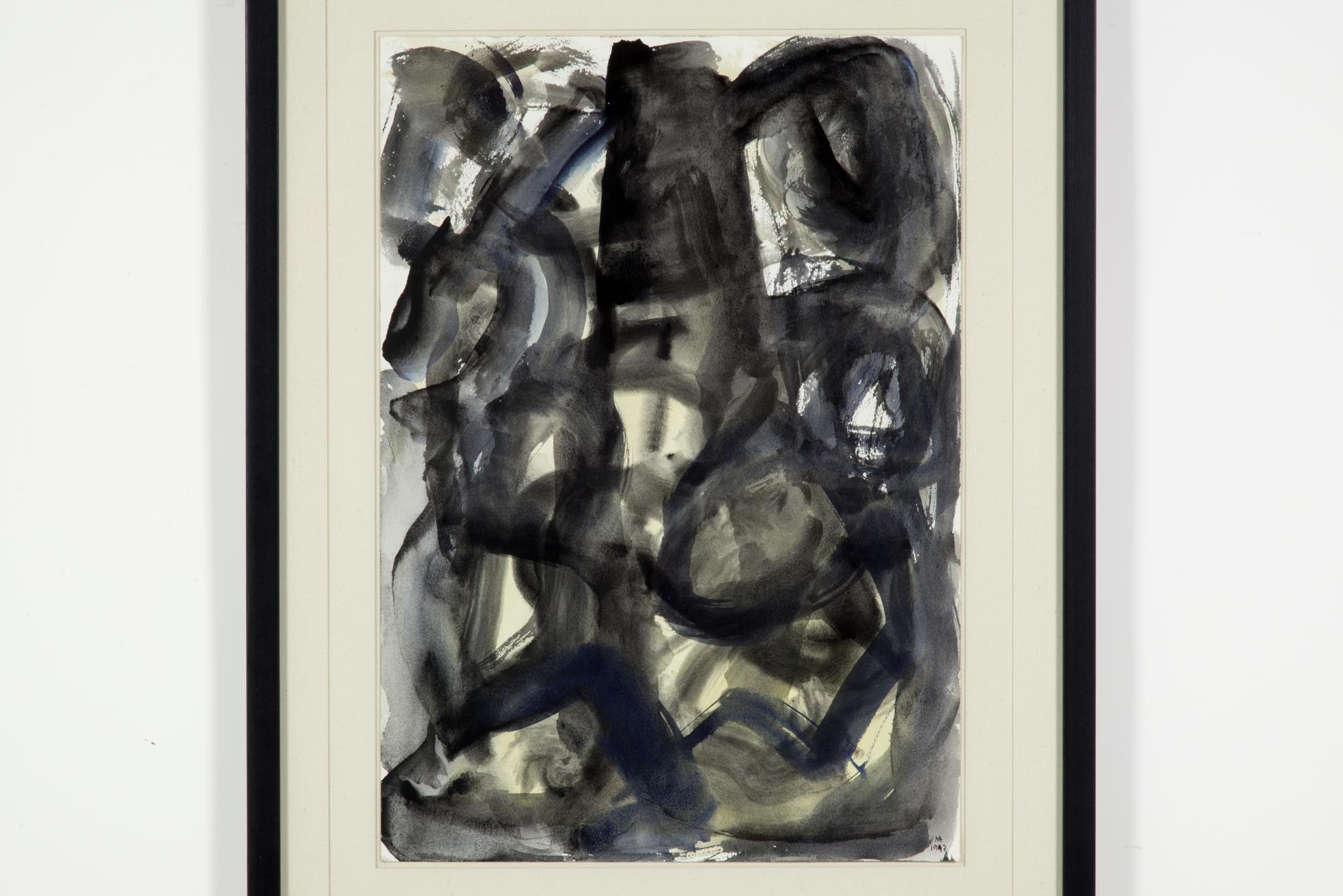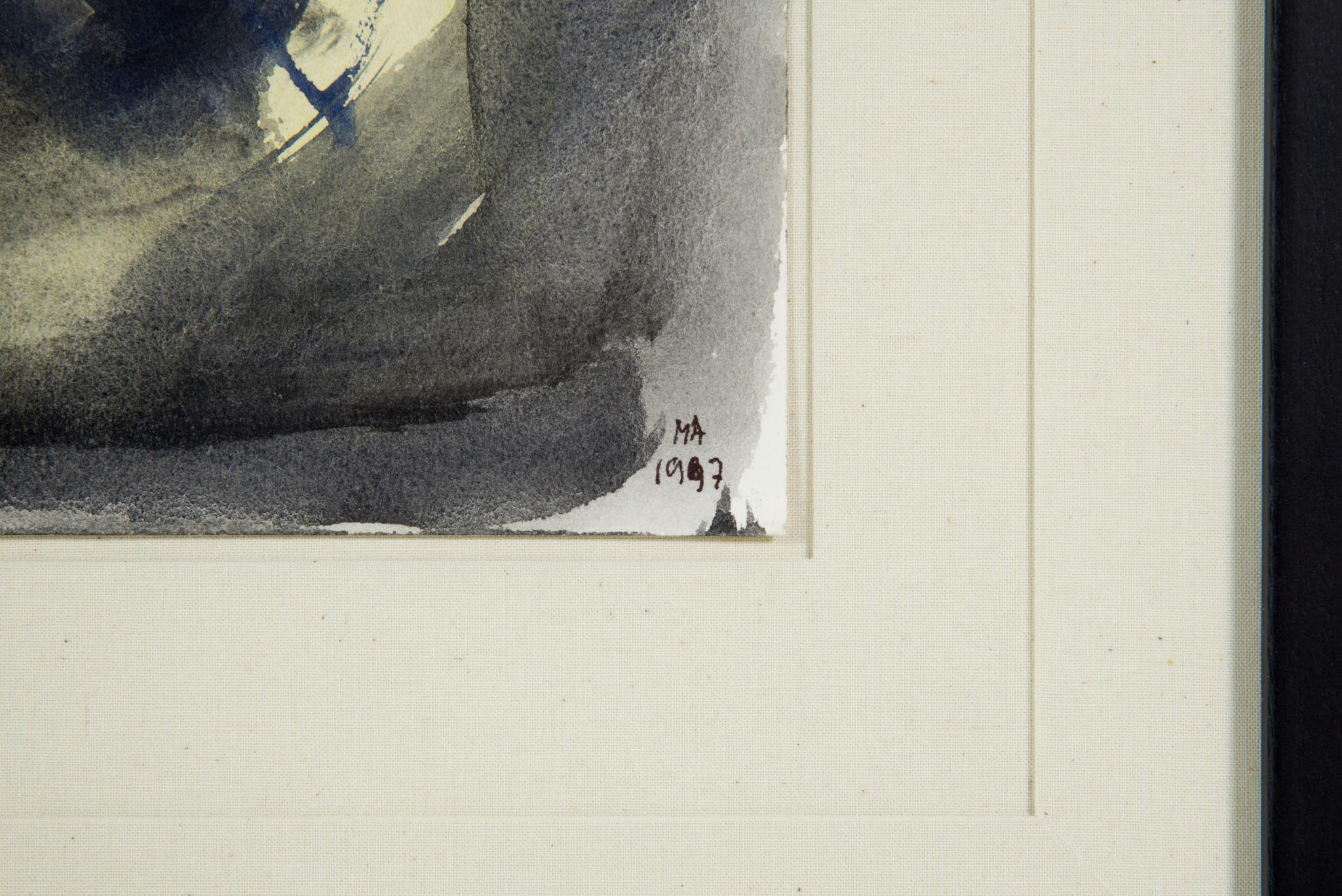 デンマークのアーティスト、Mogens Andersen/モーエンス・アナセンによる水彩画作品です。薄い絵の具を用いた表現は、日本画に見られるたらしこみを思わせます。木製のフレームと布被せのダブルマットは新たに整えました。