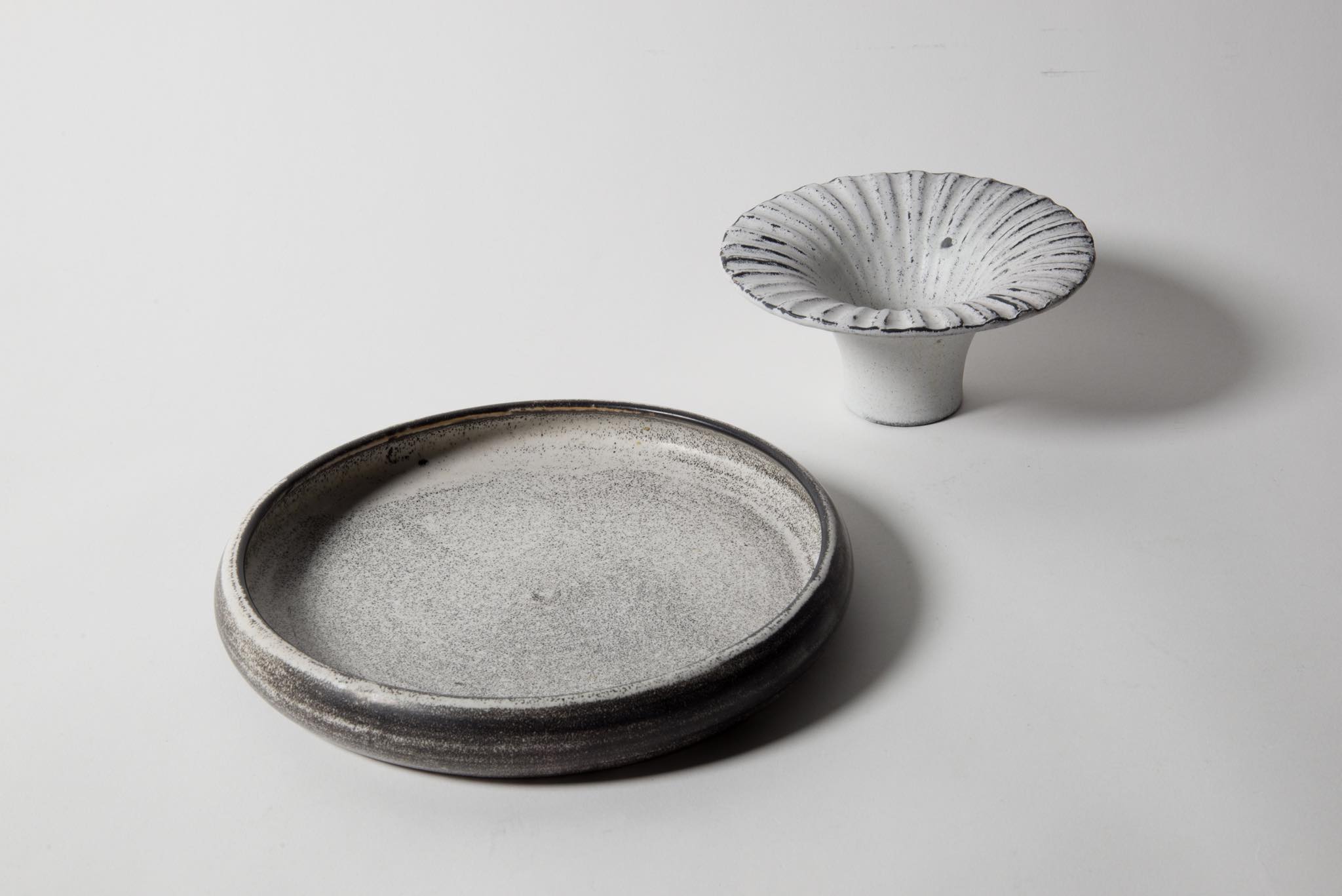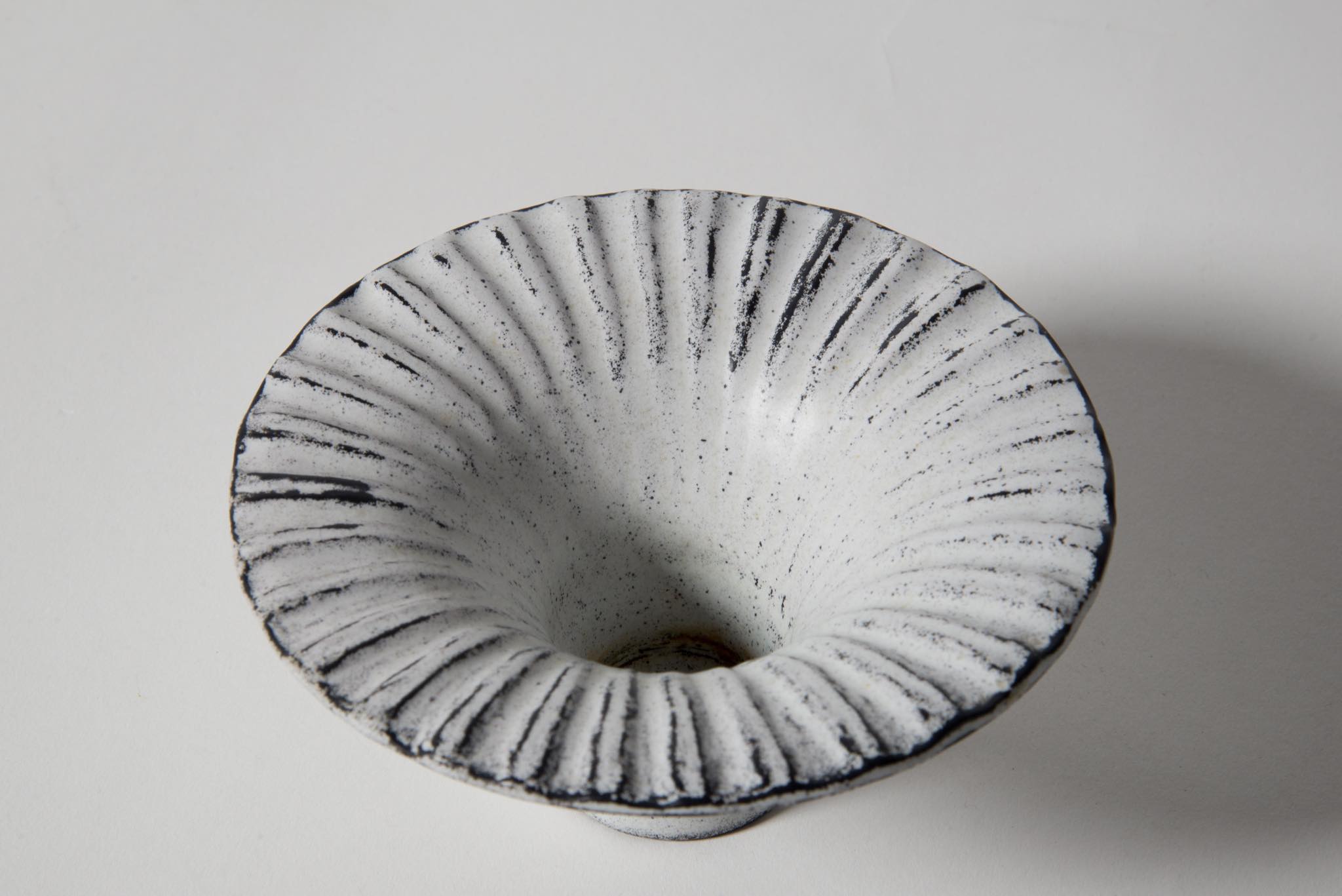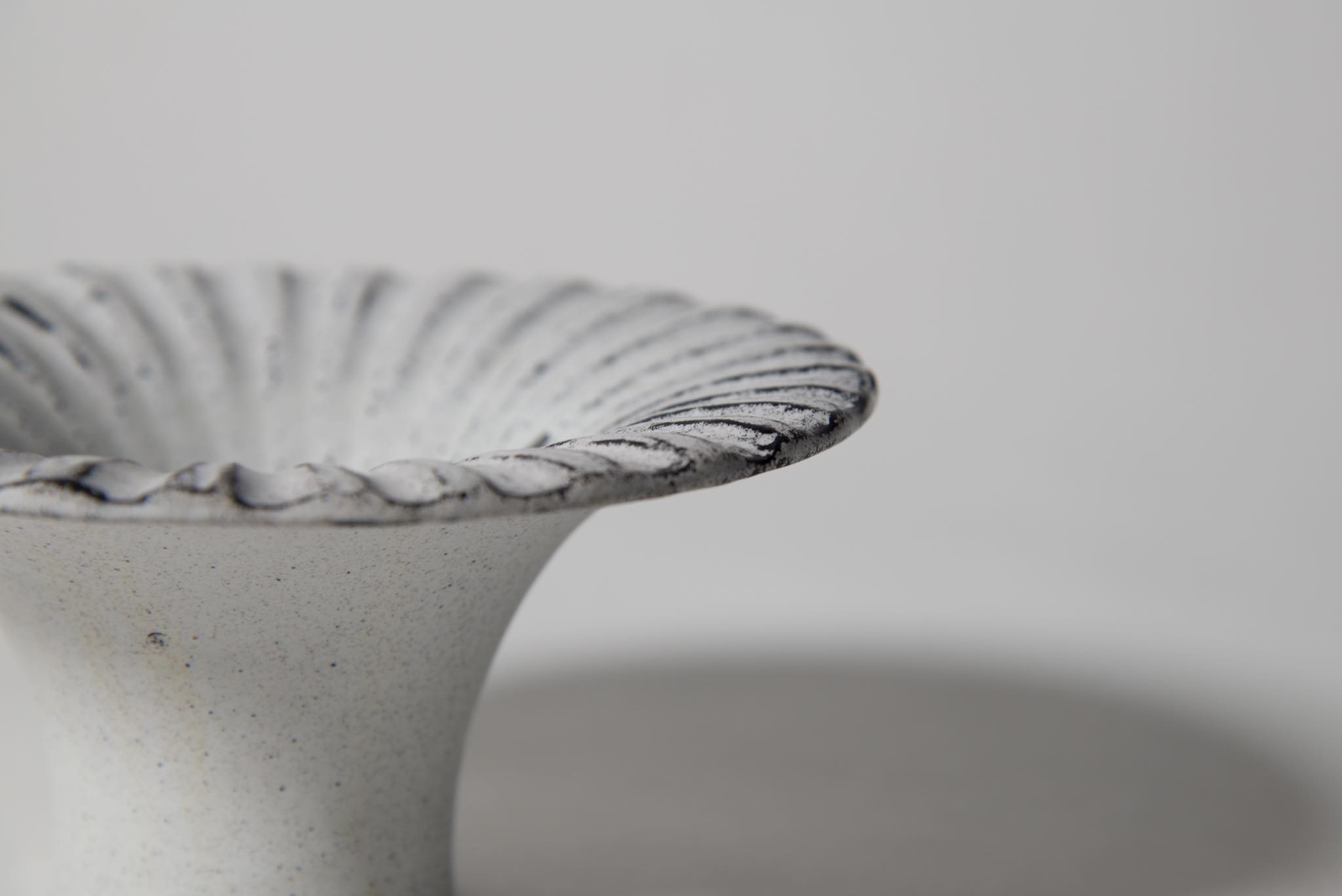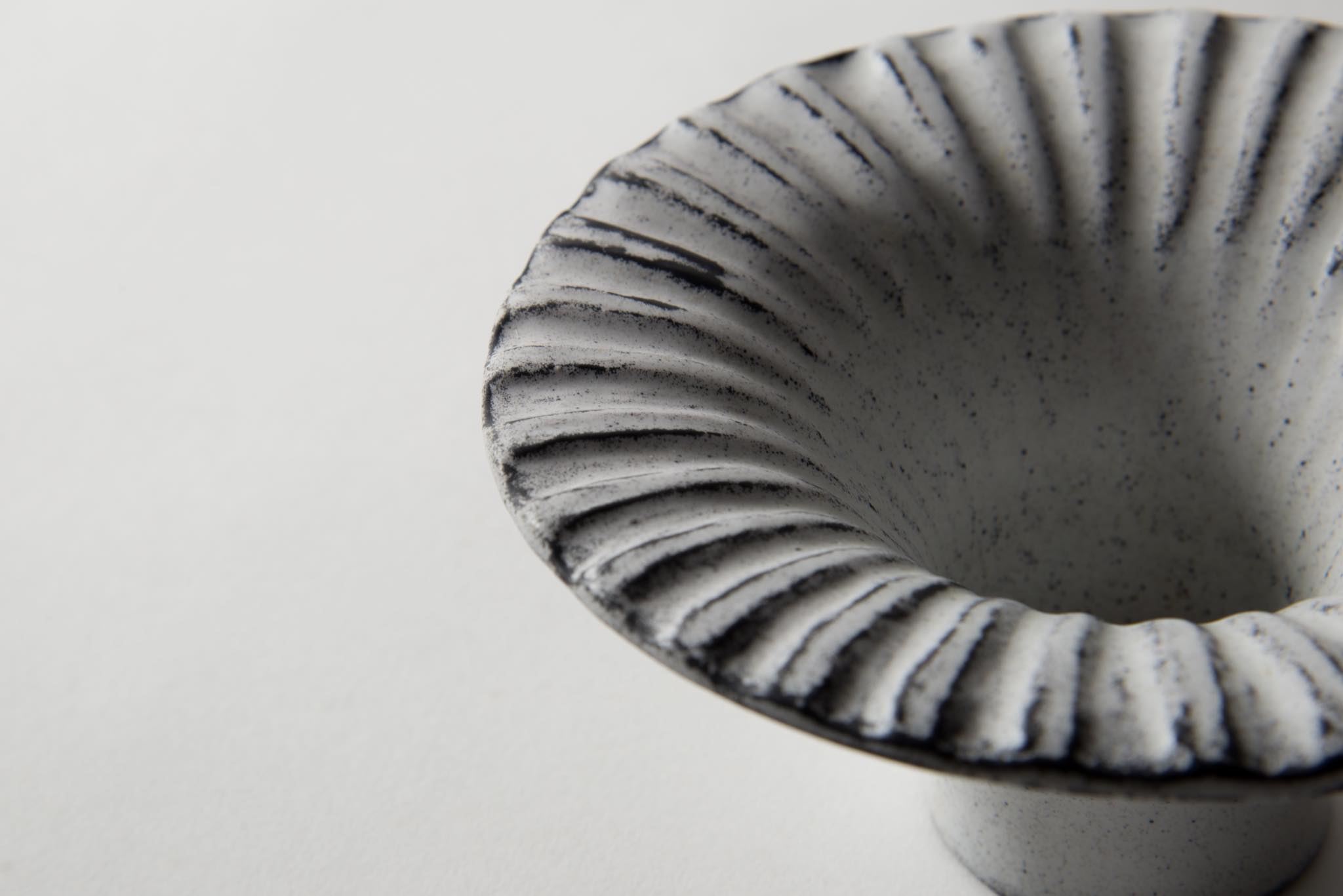 デンマークの陶芸家、Svend Hammershøi/スヴェン・ハマスホイによる端反り型のベースです。鎬によって輪花を表したデザインで、端反りのデザインに緊張感があります。お花がうまくキマると綺麗でしょう。