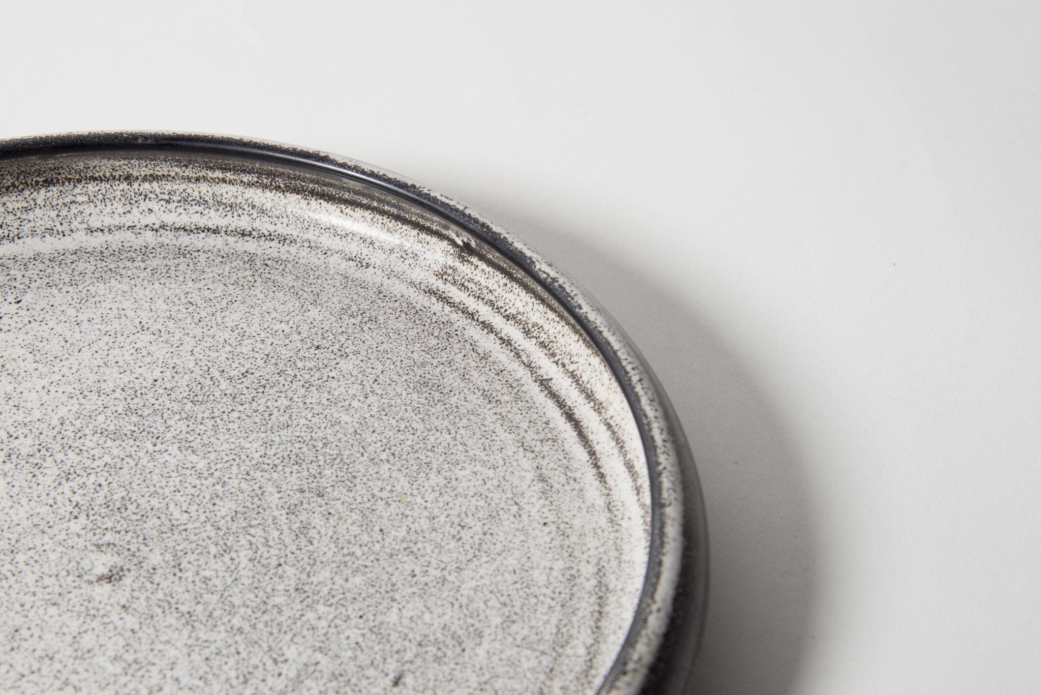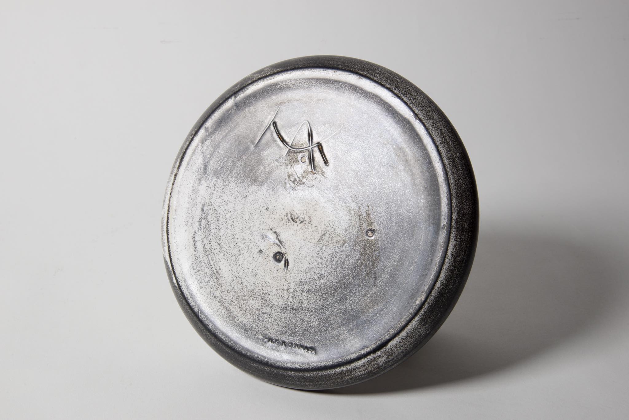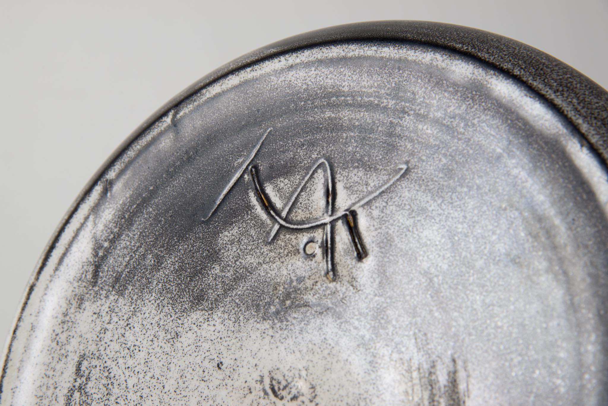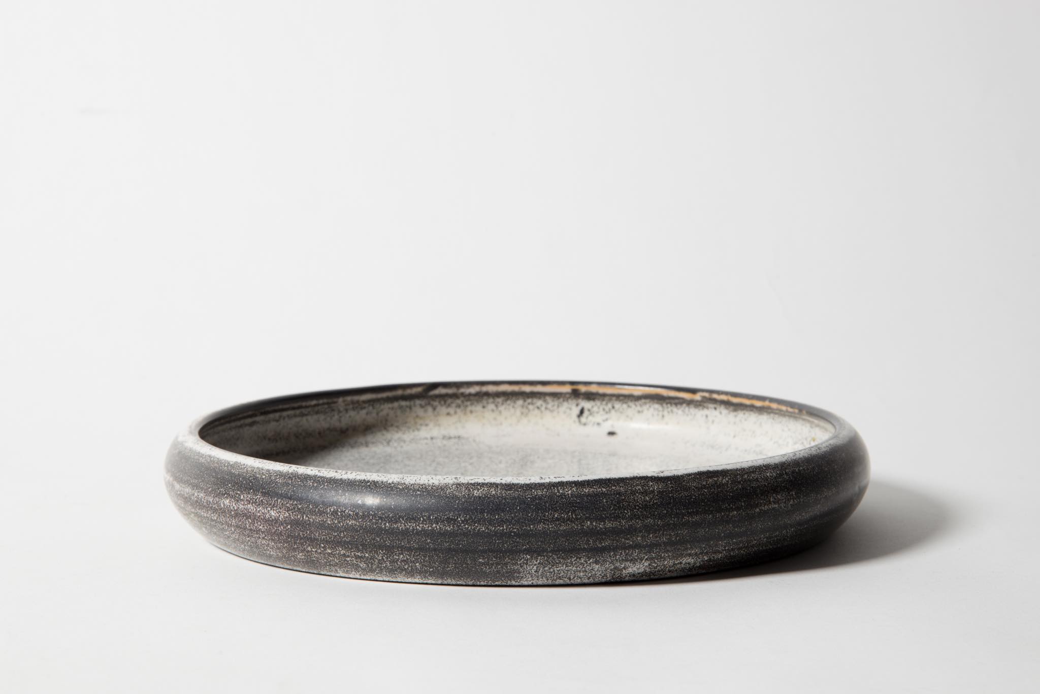 デンマークの陶芸家、Niels Kähler/ニールス・ケーラーによる1960年代の作品です。低く平らな形状は水石鑑賞に用いる水盤を思わせます。スヴェン・ハマスホイによって1930年代に開発されたモノクロームの錫釉を用いており、氏へのオマージュ的な作品として位置付けられるものでしょう。