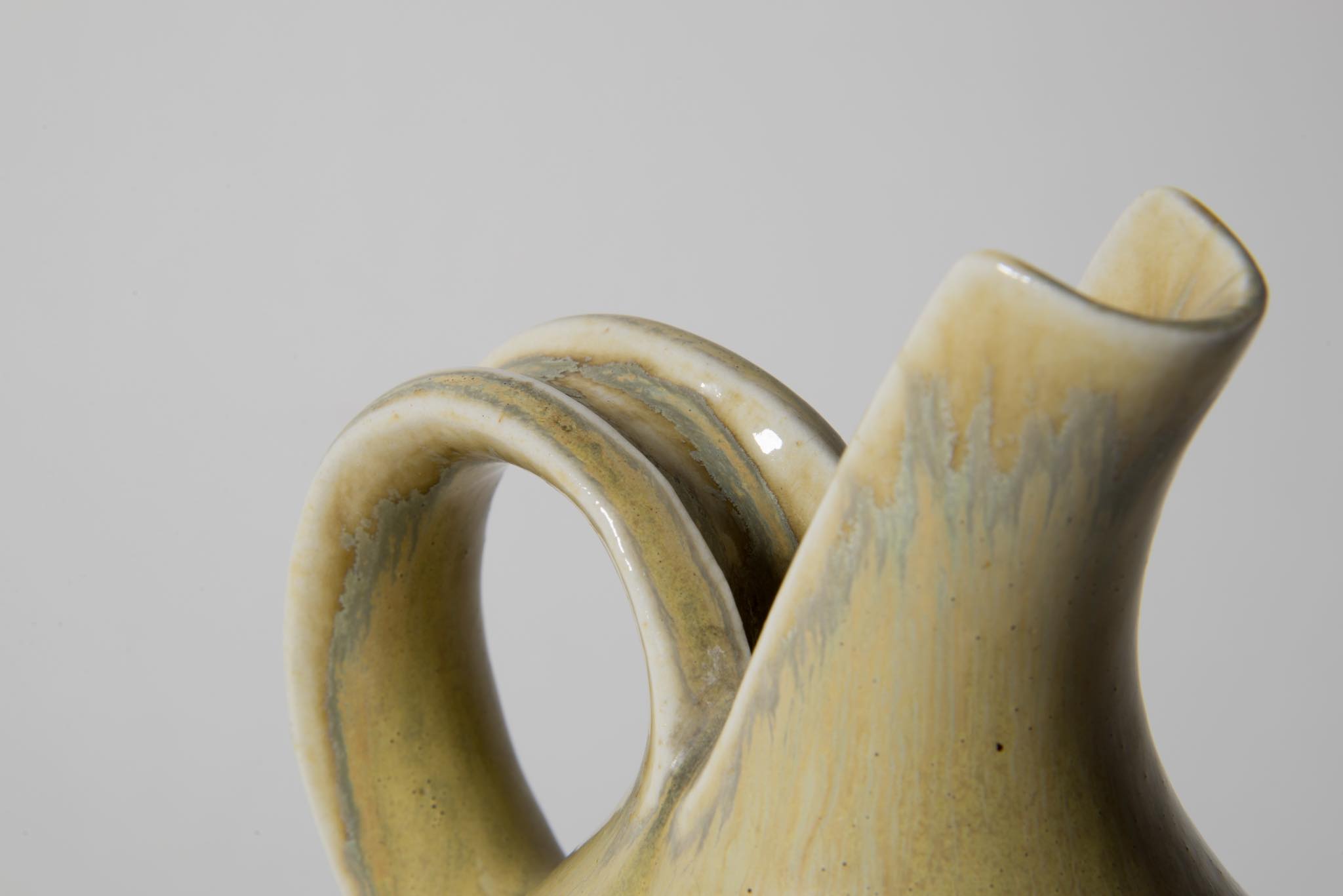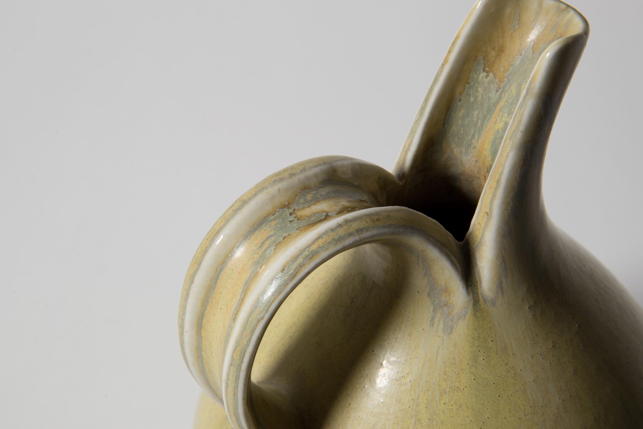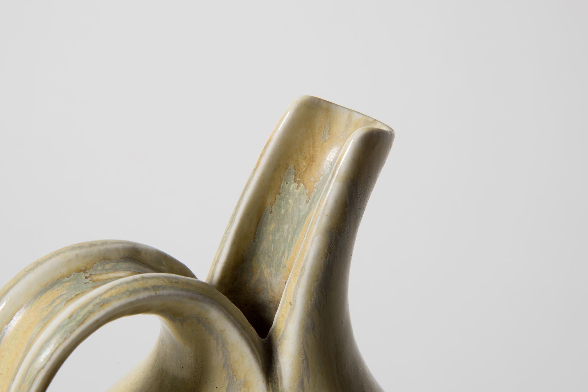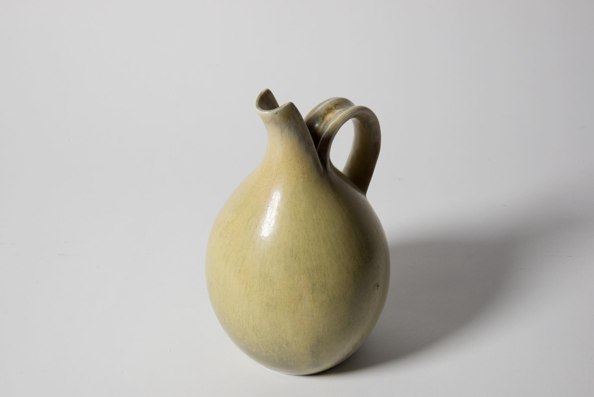 デンマークの SAXBO/サクスボー窯で活躍した陶芸家の Eva Stæhr-Nielsen/エヴァ・ステア・ニールセンによるベースです。写真には写りませんが、残念ながら本体に大きくクラックが見られます。ちょっとした衝撃で割れてしまうようなクラックに見えますが、中に水を入れて花を生け、店頭に飾り、ひと月以上が経ちましたが今のところ水漏れはありません。どの程度か状況がわからないので、大傷ものとしての扱いとさせていただきます。