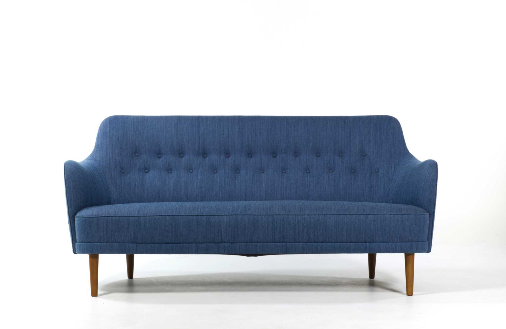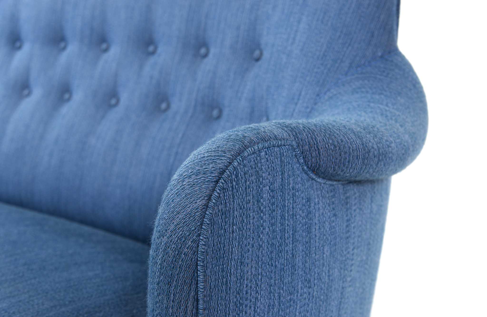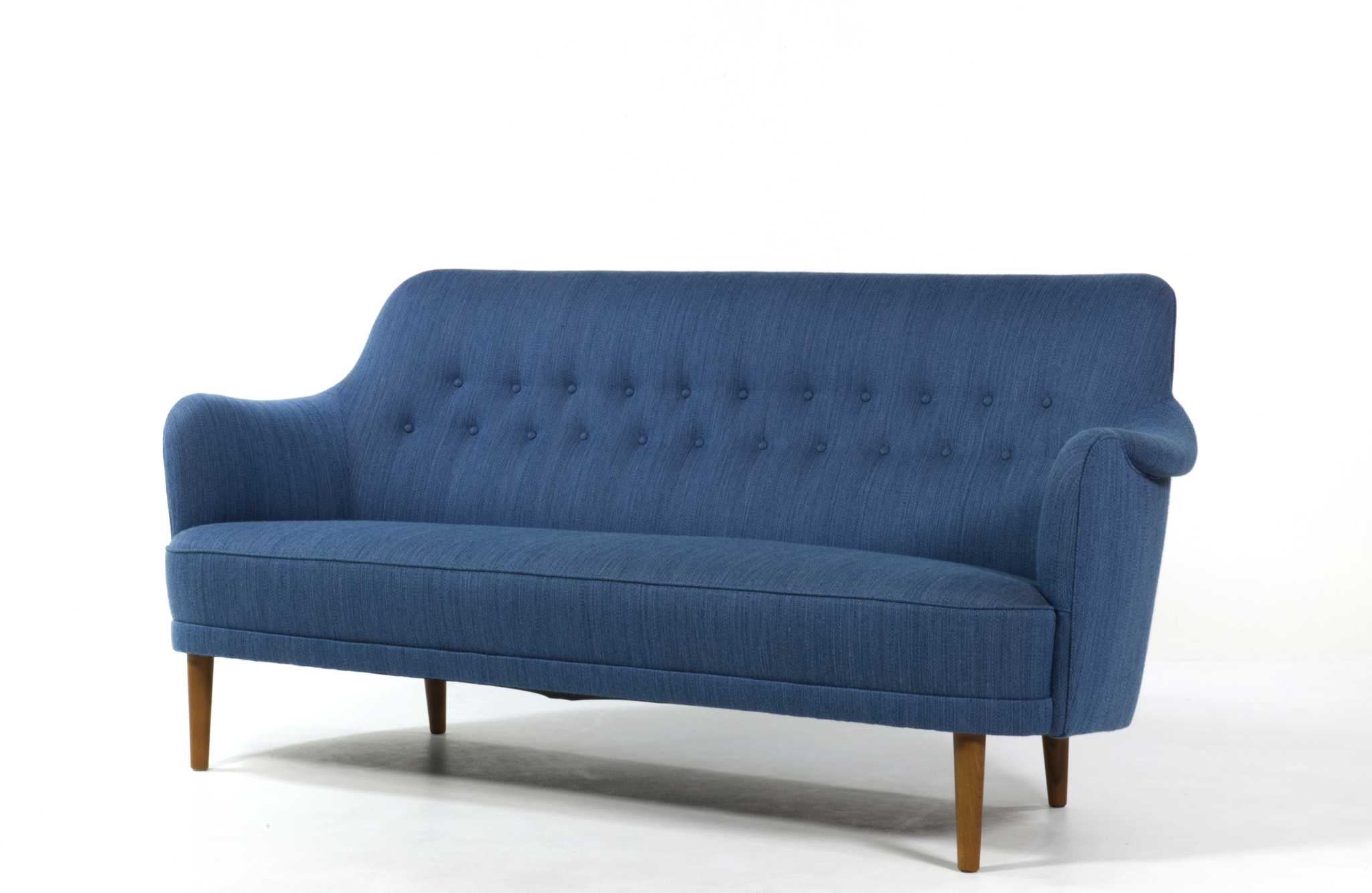 スウェーデン家具の父、と称されたデザイナーの Carl Malmsten/カール・マルムステンによる "Samsas" シリーズの3人掛けソファです。1960年代に発表されたモデルで、独自の優雅な曲線とクラシックな佇まいが特徴のモデルです。こちらはおそらく1980年代頃に作られたものでしょう。オリジナルの生地のままですが、傷み等なくきれいな状態です。