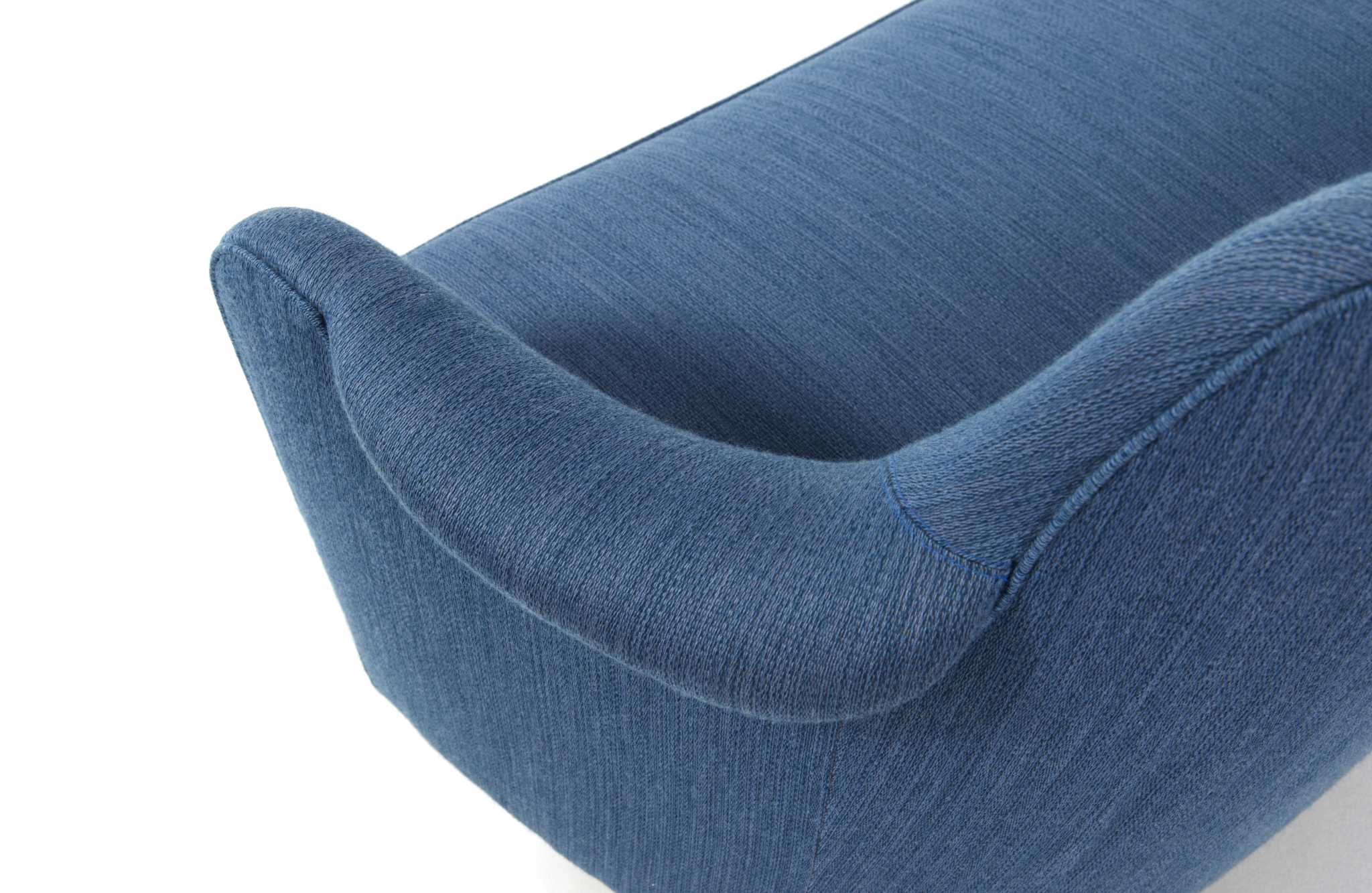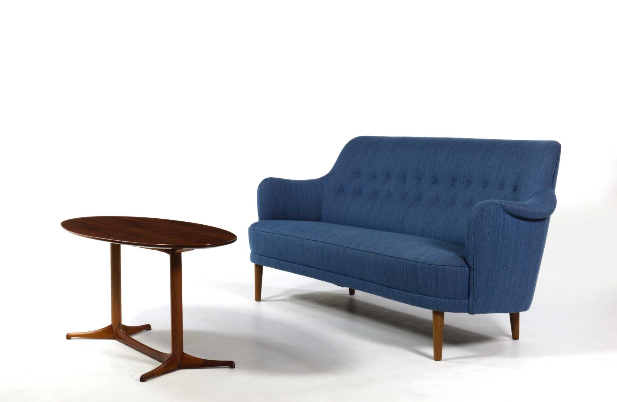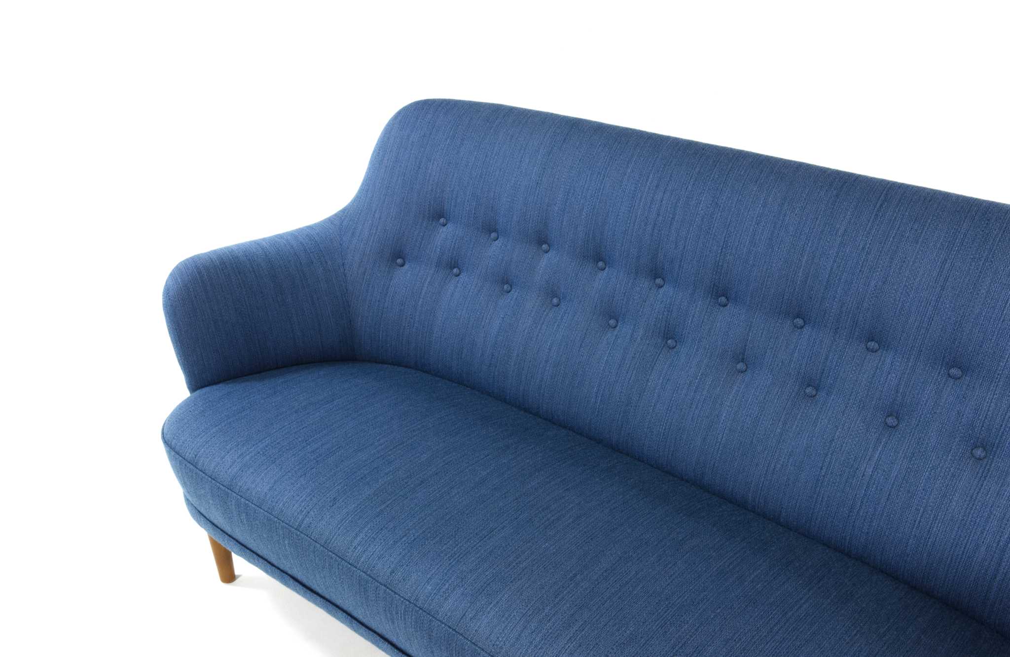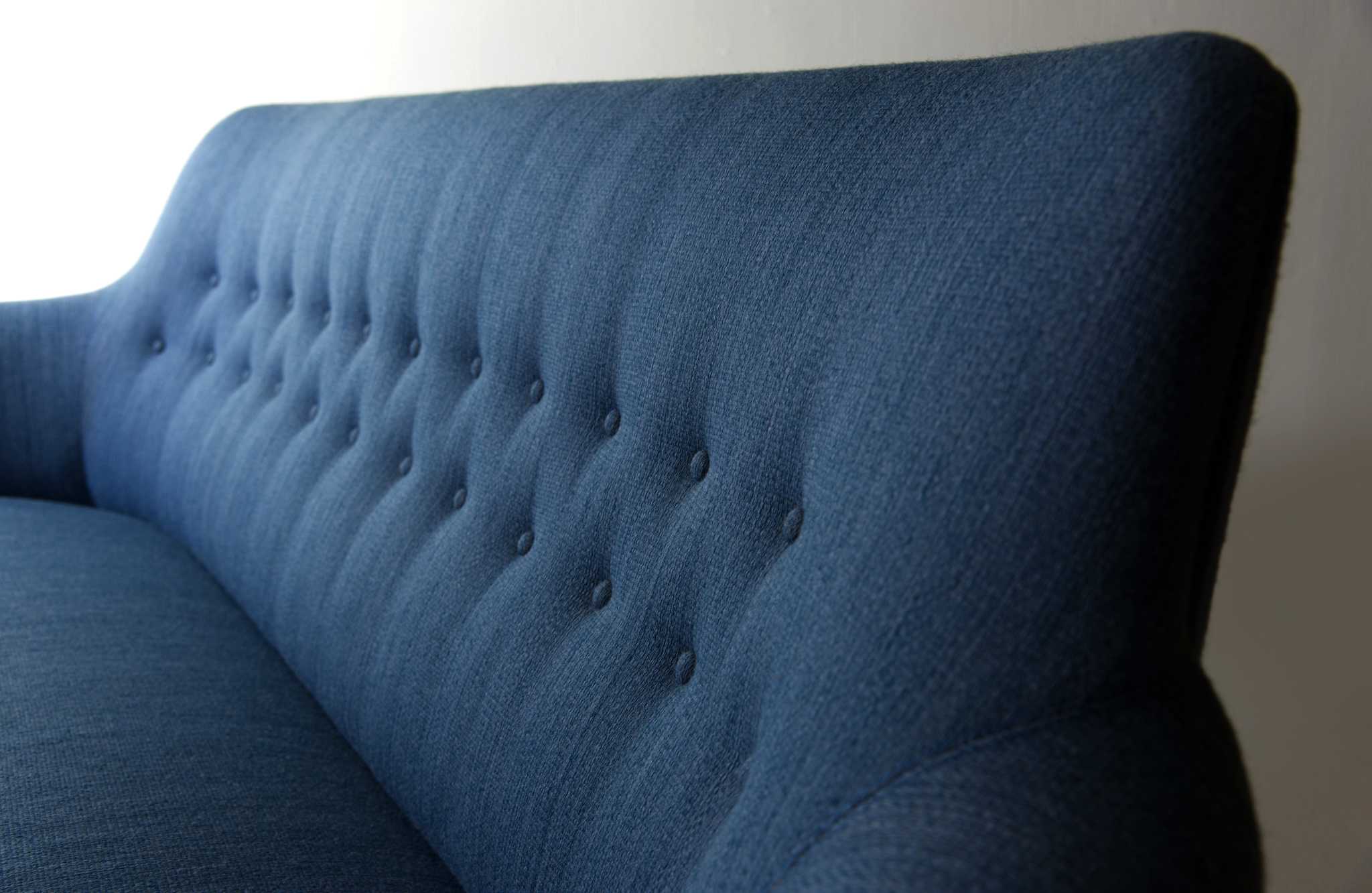 スウェーデン家具の父、と称されたデザイナーの Carl Malmsten/カール・マルムステンによる "Samsas" シリーズの3人掛けソファです。1960年代に発表されたモデルで、独自の優雅な曲線とクラシックな佇まいが特徴のモデルです。こちらはおそらく1980年代頃に作られたものでしょう。オリジナルの生地のままですが、傷み等なくきれいな状態です。