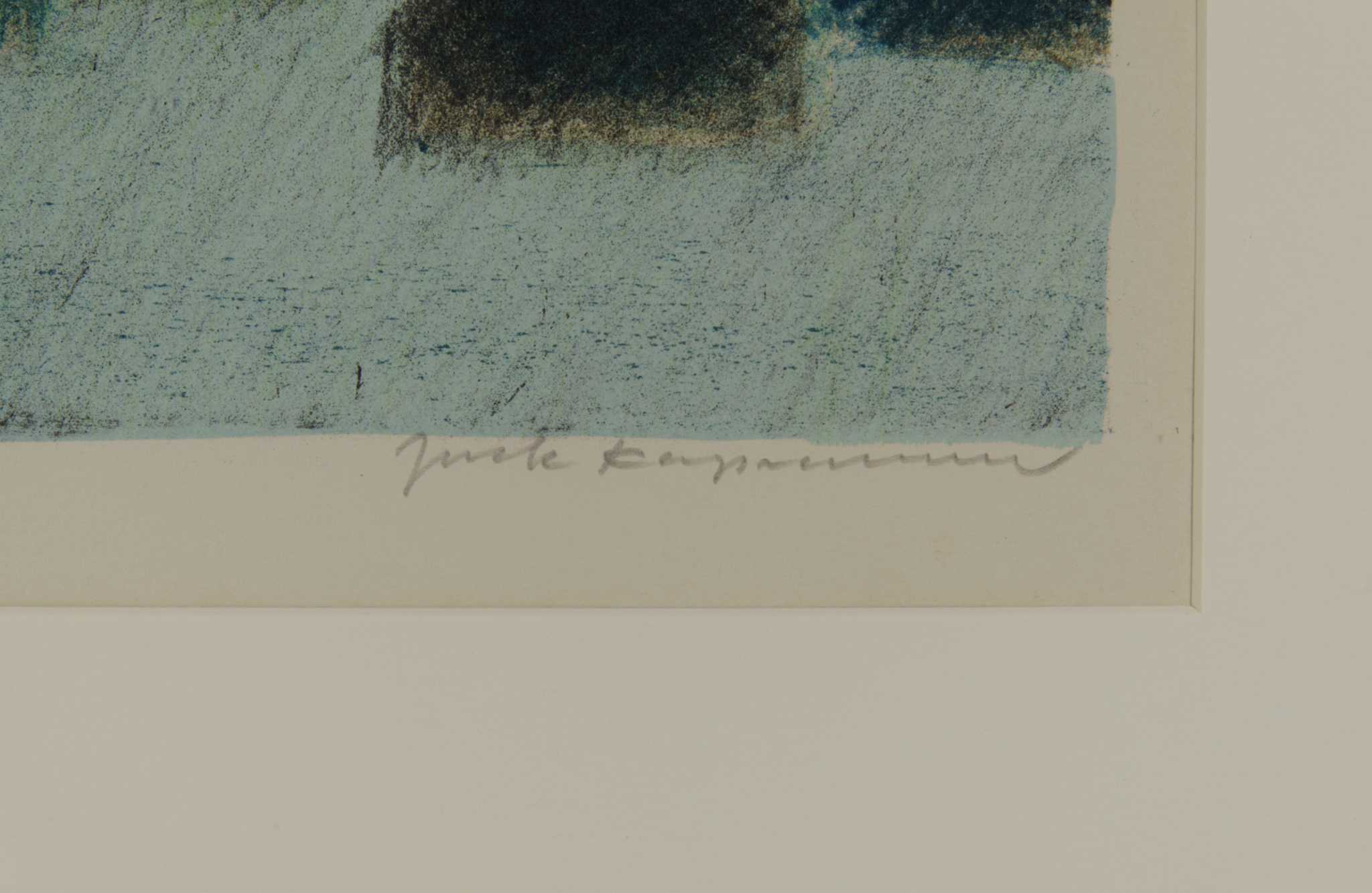 デンマーク人画家、Jack Kampmann/ジャック・カンプマンによるリトグラフ作品です。フェロー諸島の厳しい自然環境と対峙しながら生活する島民たちの家々や情景を独自のタッチで描いています。スチール製クロームメッキのフレームはオリジナルで、マットを新たに整えました。コンディションは良好です。