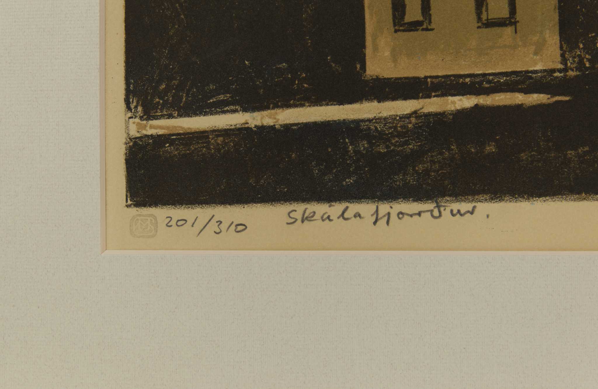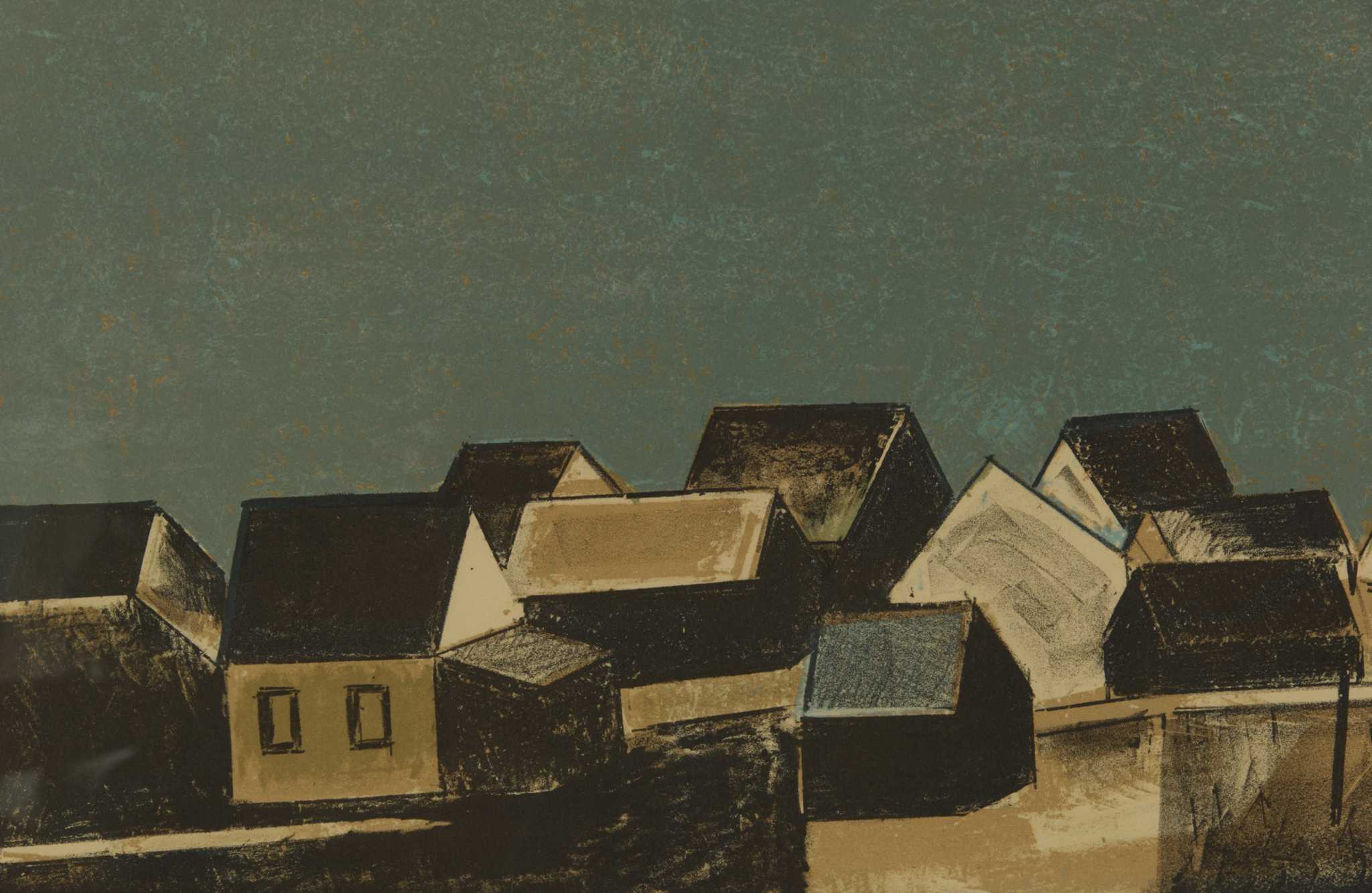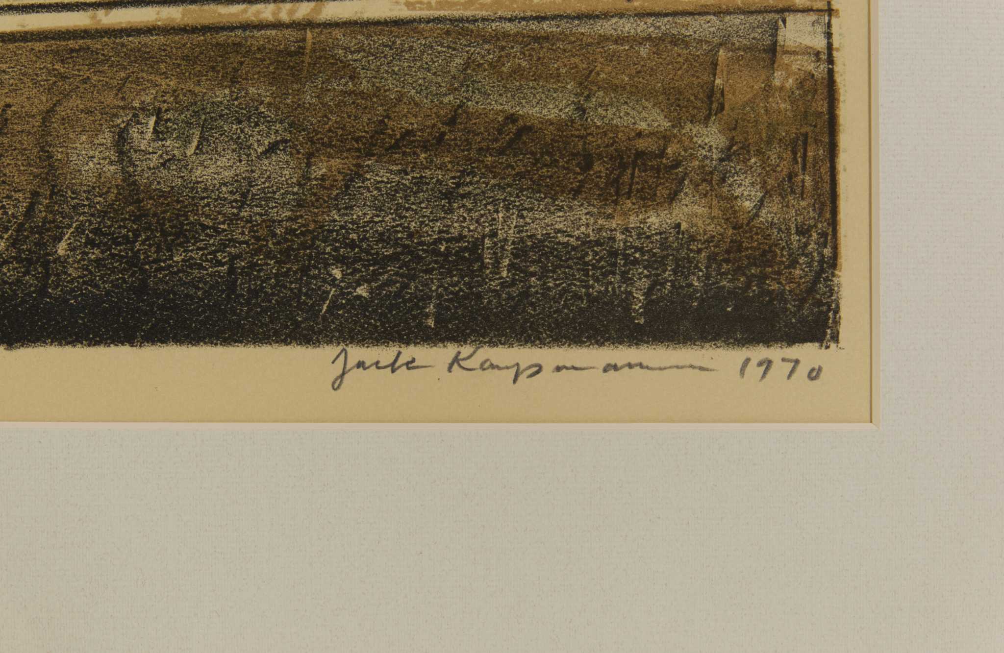 デンマーク人画家、Jack Kampmann/ジャック・カンプマンによるリトグラフ作品です。氏の作品としては比較的古いもので、フェロー諸島の厳しい自然環境と対峙しながら生活する島民たちの家々や情景を独自のタッチで描いています。銀箔のフレームはオリジナルで、マットを新たに整えました。コンディションは良好です。