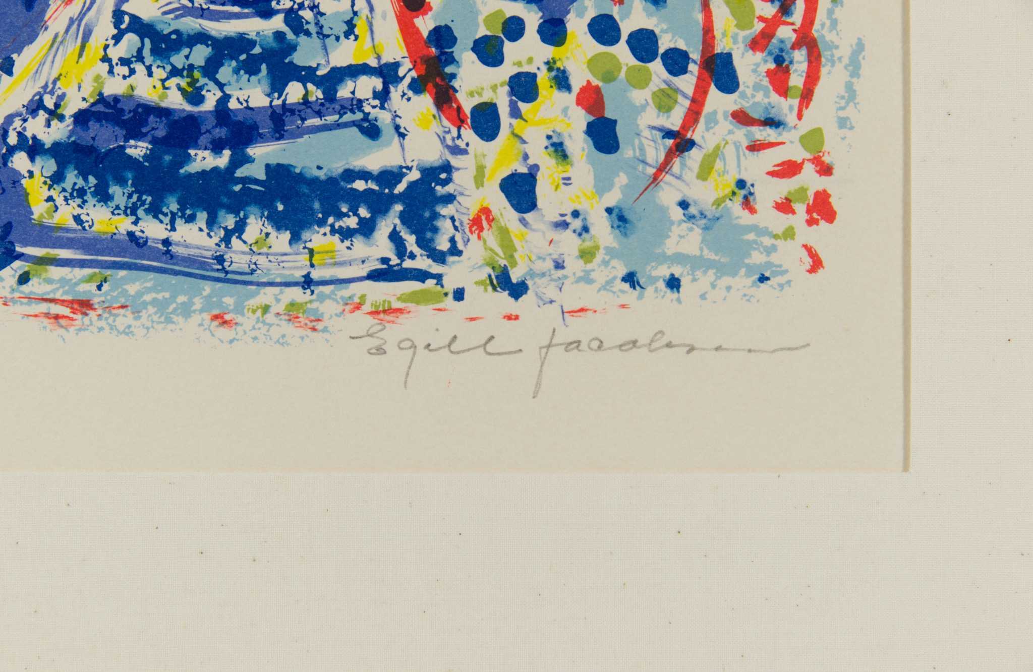 デンマークの画家。コペンハーゲン生まれ。1932年、デンマーク王立美術アカデミーに学びます。デビュー当初は伝統的なデンマークスタイルで風景画を描きます。1934年にパリを訪れ、アンリ・マティスやパブロ・ピカソらの作品に衝撃を受け、民族的で原始的な芸術や、抽象的表現へと傾倒します。北欧神話やマスク(仮面)をモチーフとした、具象と抽象とを交差させたような色彩豊かな表現を行うようになります。1934年、芸術家グループ "Linien"に参加し、1936年の秋のアーティスト展覧会と、1937年のLinien展で”MASK”を発表します。1938年、エギルはヨーロッパの暗黒時代、とりわけナチスに対する怒りを表現した作品 "Obhobning/オフォブニン”(積み重ね)を発表します。この作品は、ナチス・ドイツによるチェコスロバキア解体、というニュースの下で描かれました。この事件はナチス・ドイツの強引な計画のさらなる広大を予感させ、27歳の画家に深い印象を残します。作品 ”Obhobning” は、デンマーク芸術における革新的行為として認められ、国際的政治に対する厳しいメッセージとして捉えられています。エギルによるこの作品とその行為が、後に結成される前衛芸術運動 ”CoBrA” (1946) の先駆を成したと云われています。第二次世界大戦中、エギルは雑誌 "Helhesten"(1941-1944)に寄稿しました。 1948年、エギルは前衛芸術運動 ”CoBrA”に参加します。1959年、エギルはデンマークで初の抽象芸術家の立場として、デンマーク王立美術アカデミーの教壇に立ちます。