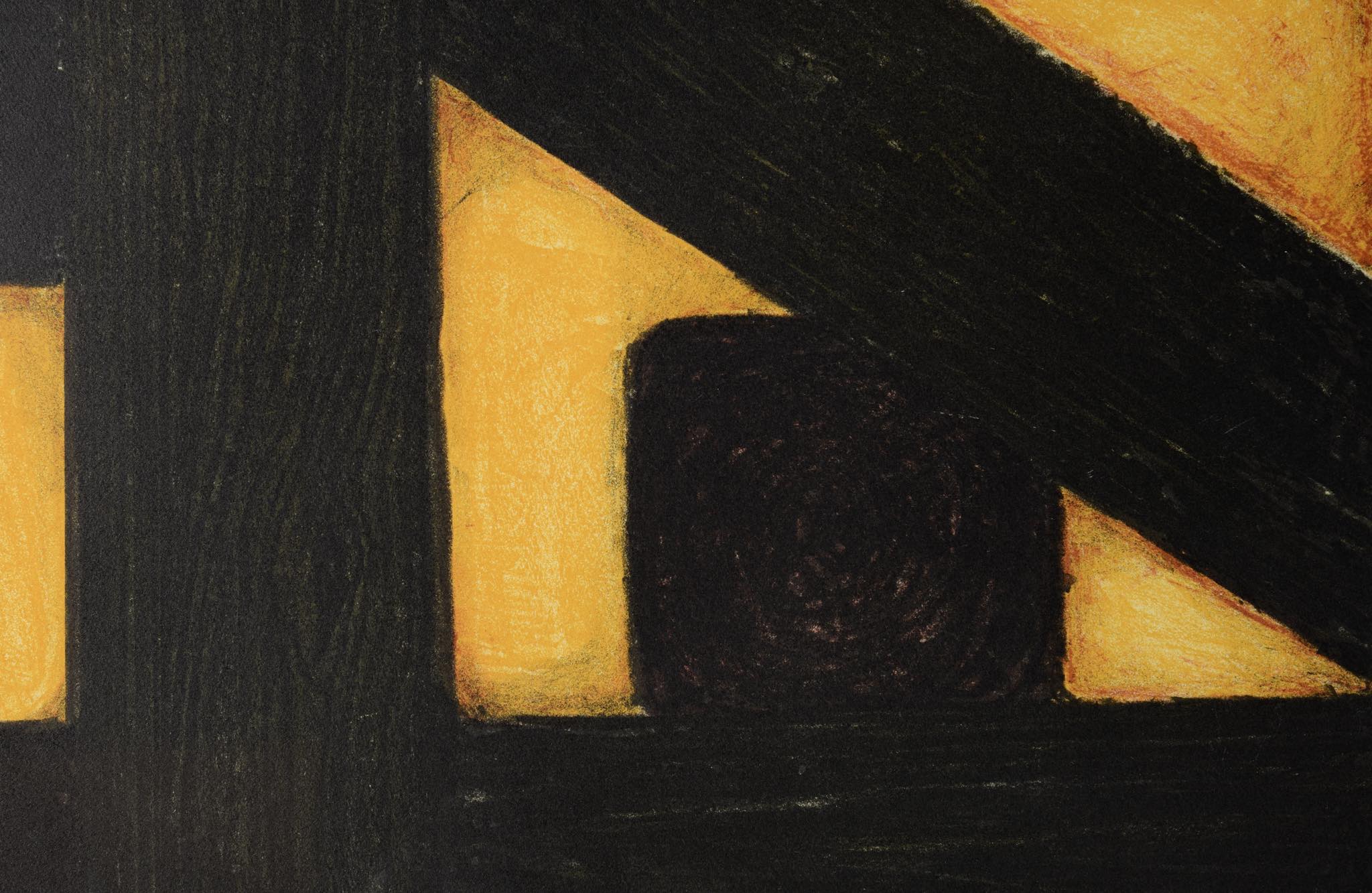 デンマークの芸術家、Villy Daugaard Pedersen/ヴィリー・ダウゴー・ペダーセンによるリトグラフ作品です。構成主義的でありながら、何か有機的な物質のシルエットを思わせるような柔らかなタッチが特徴です。木製銀箔のフレームはオリジナルのようで、若干の小傷が見られます。マットは新たに交換しました。作品のコンディションは良好です。