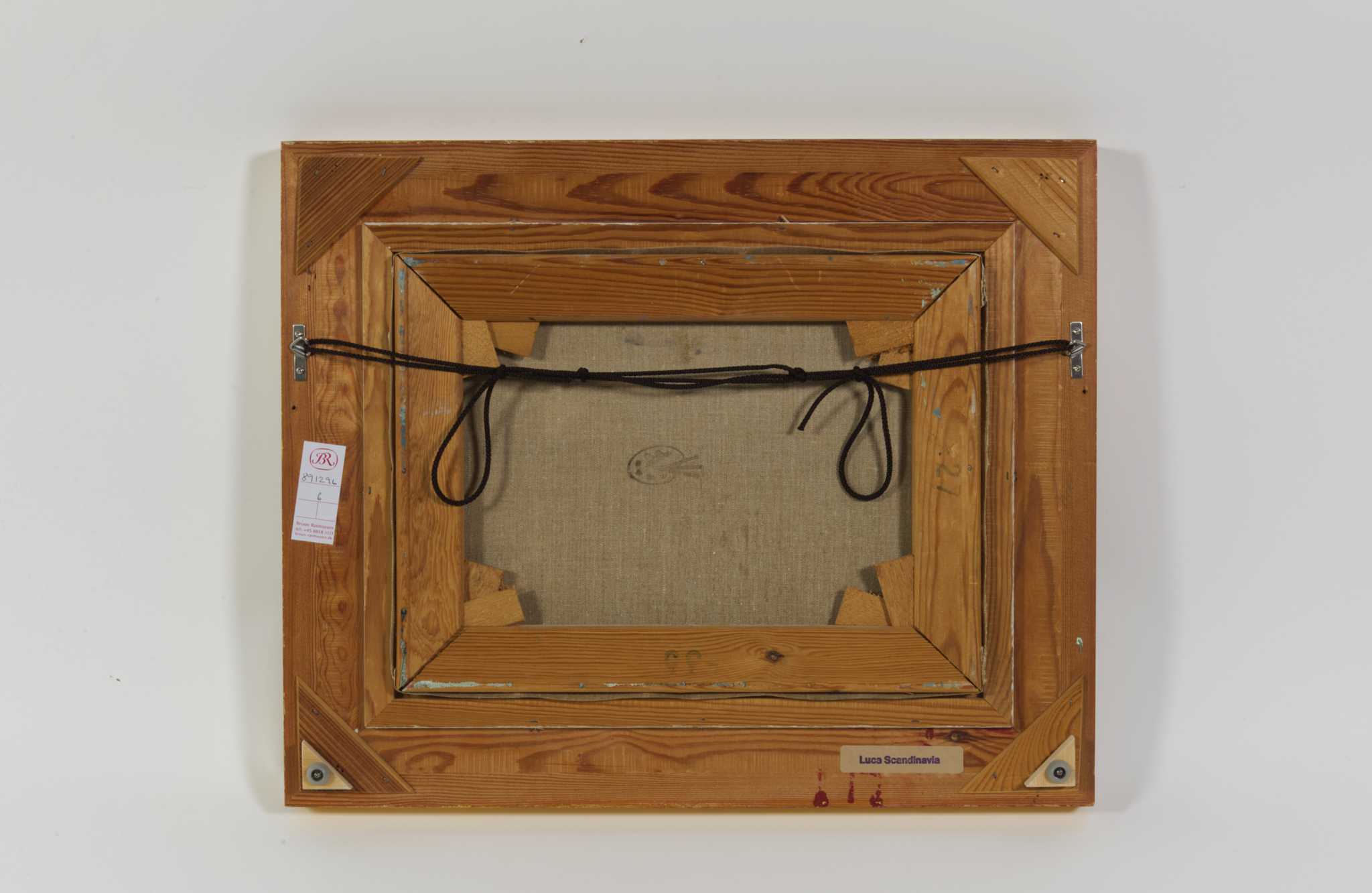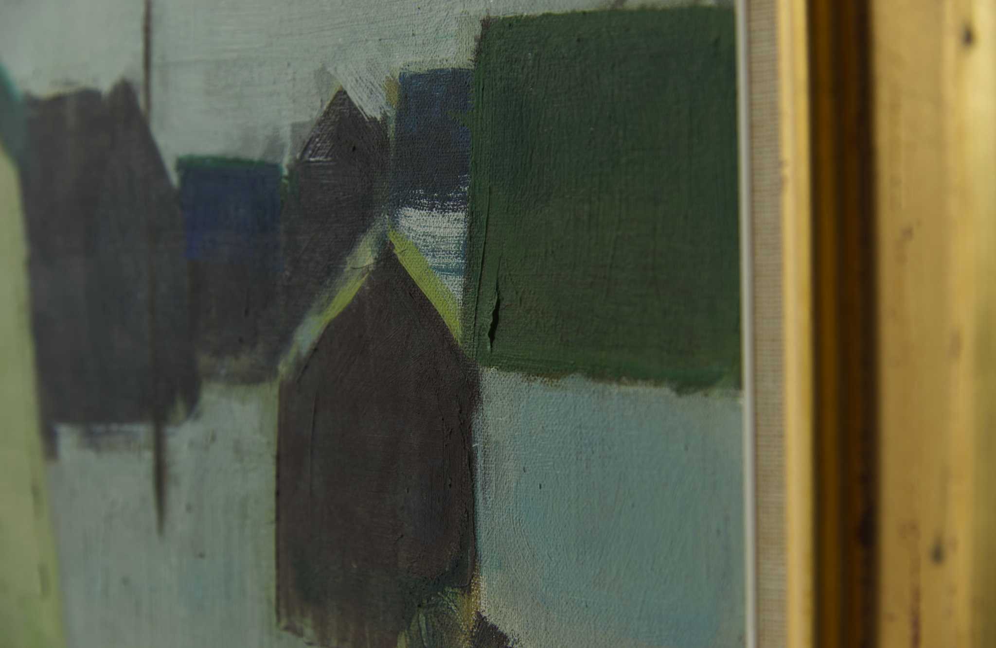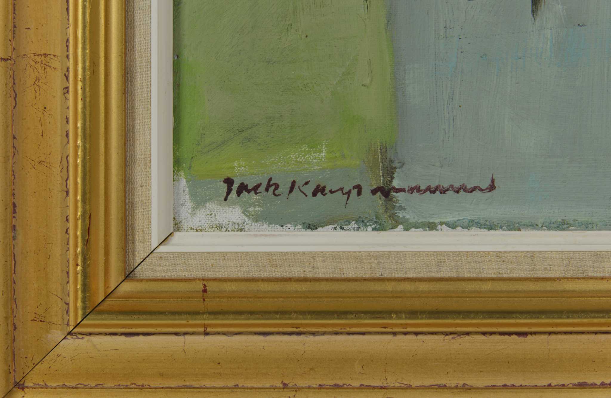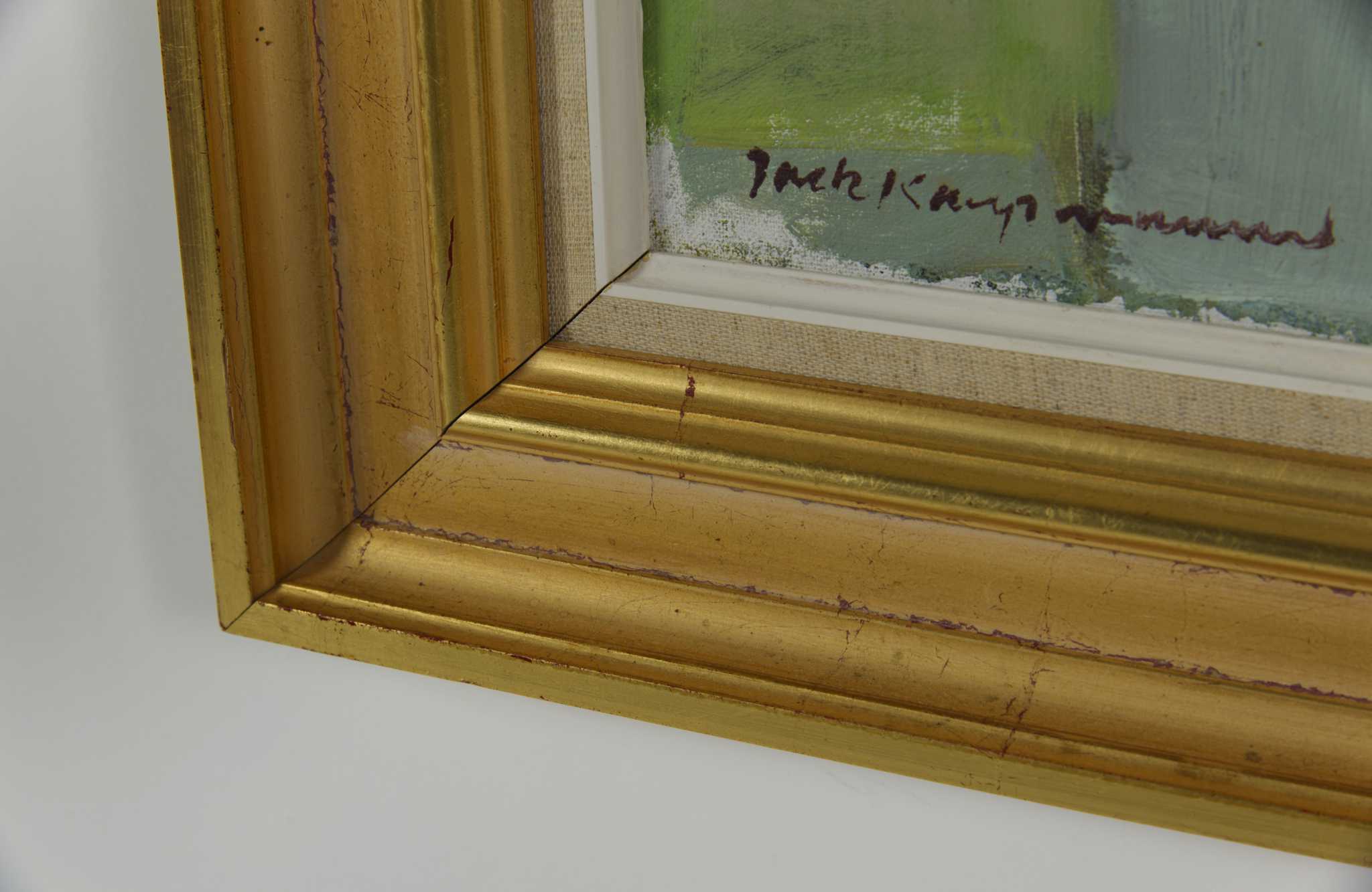 デンマーク人画家、Jack Kampmann/ジャック・カンプマンによる油彩作品です。フェロー諸島の厳しい自然環境と対峙しながら生活する島民たちの家々や情景を独自のタッチで描いています。金箔のフレームはオリジナルで、コンディションは良好です。