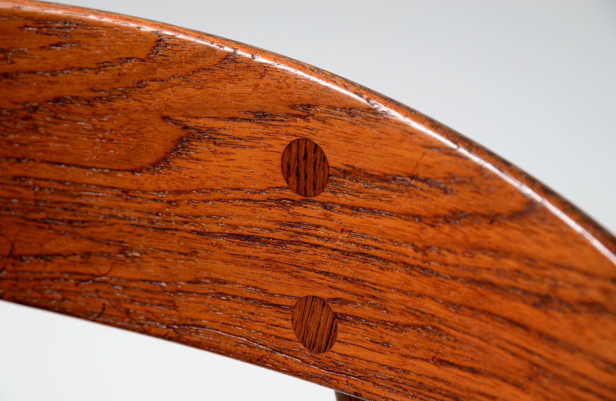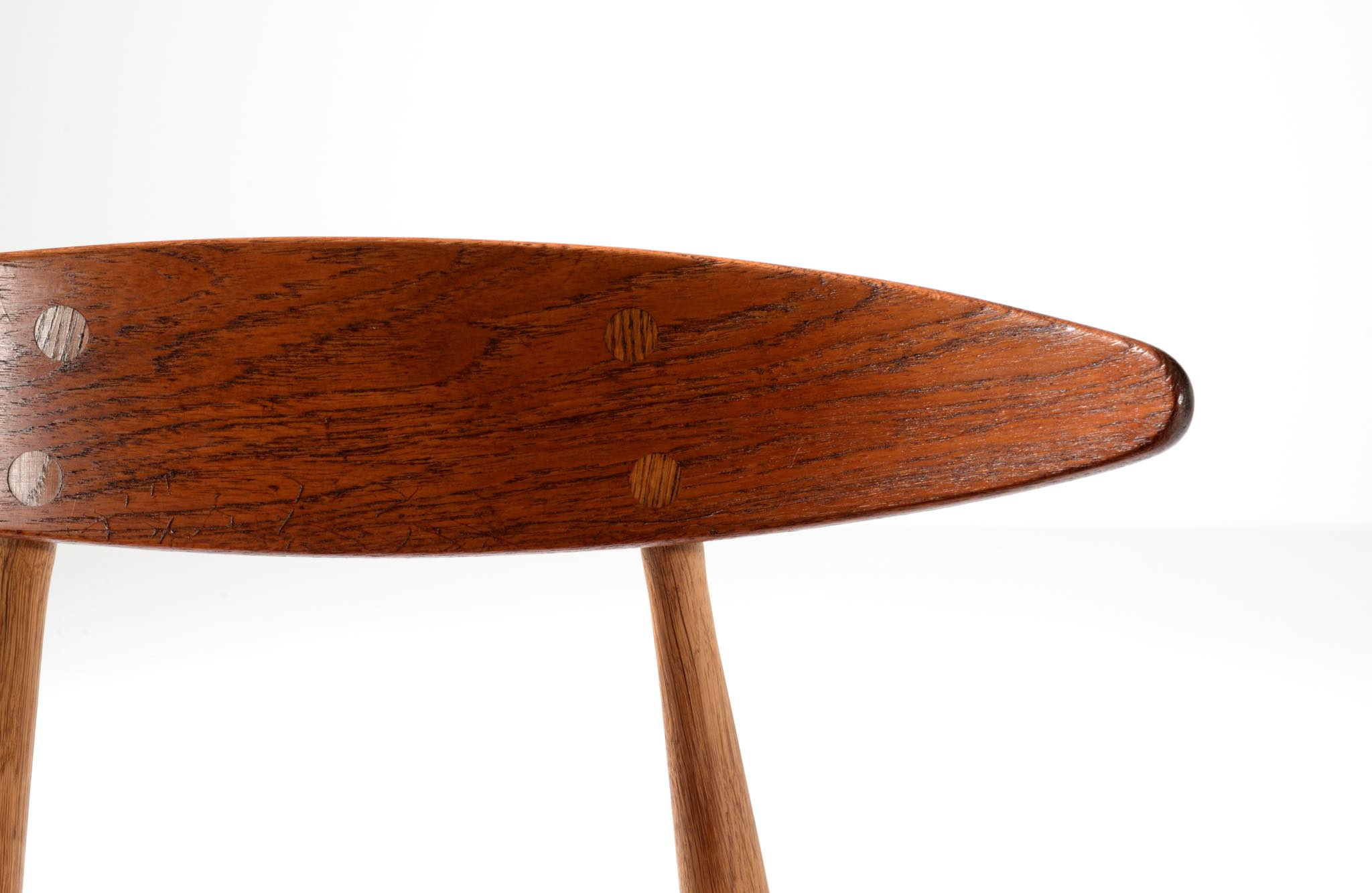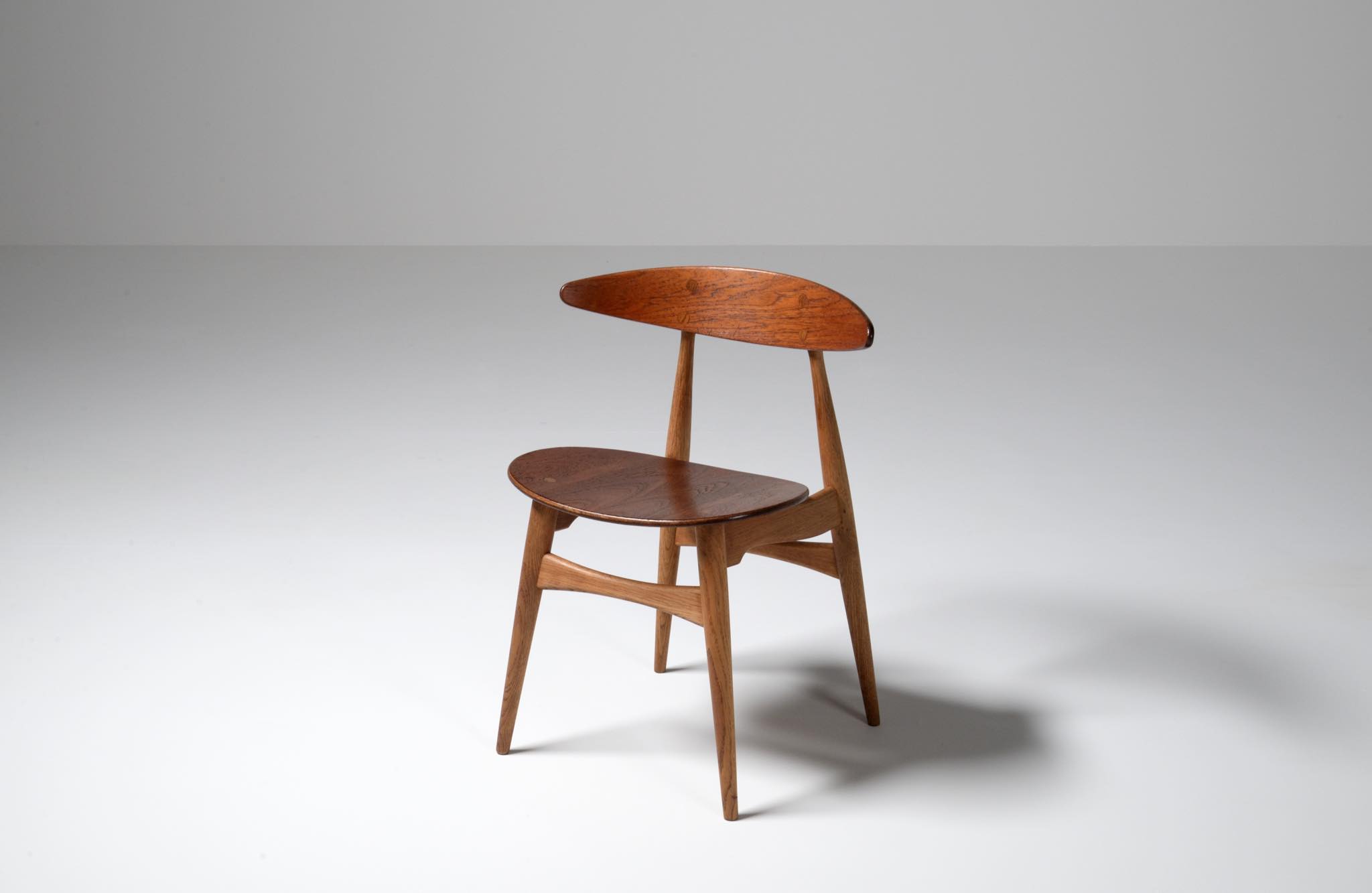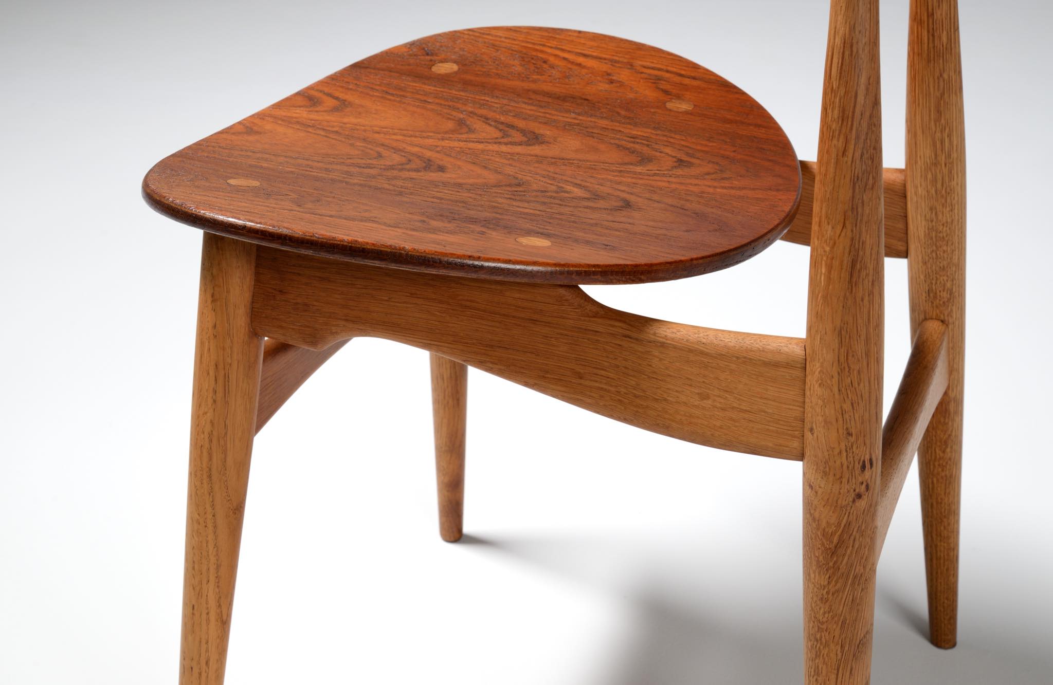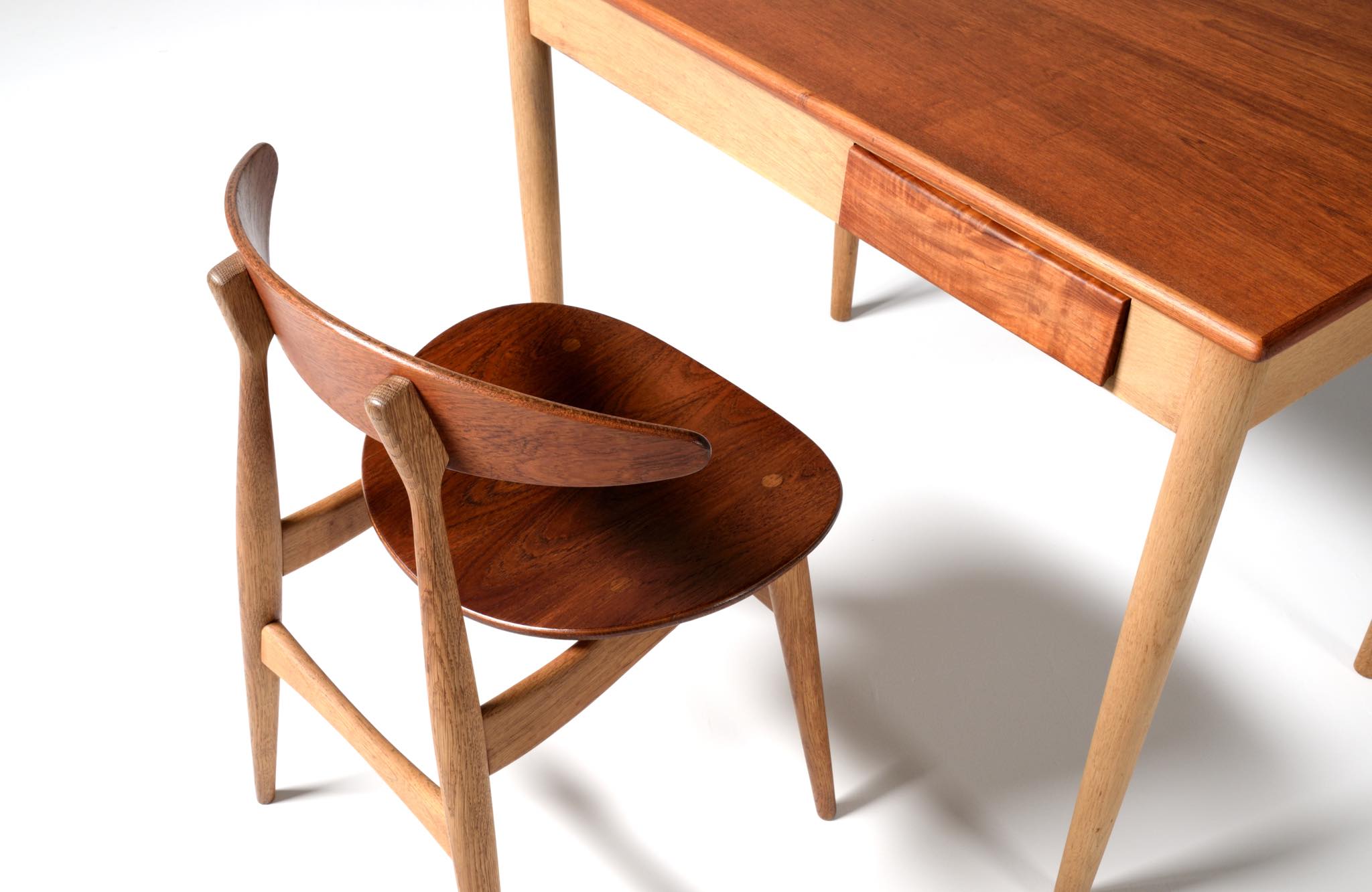 Hans J. Wegner/ハンス・ウェグナーによる"CH33"ダイニングチェアです。背もたれと座面にはチーク材、フレームにはオーク材が用いられており、板座のタイプは希少なようです。目立ったダメージはなくコンディションは良好です。