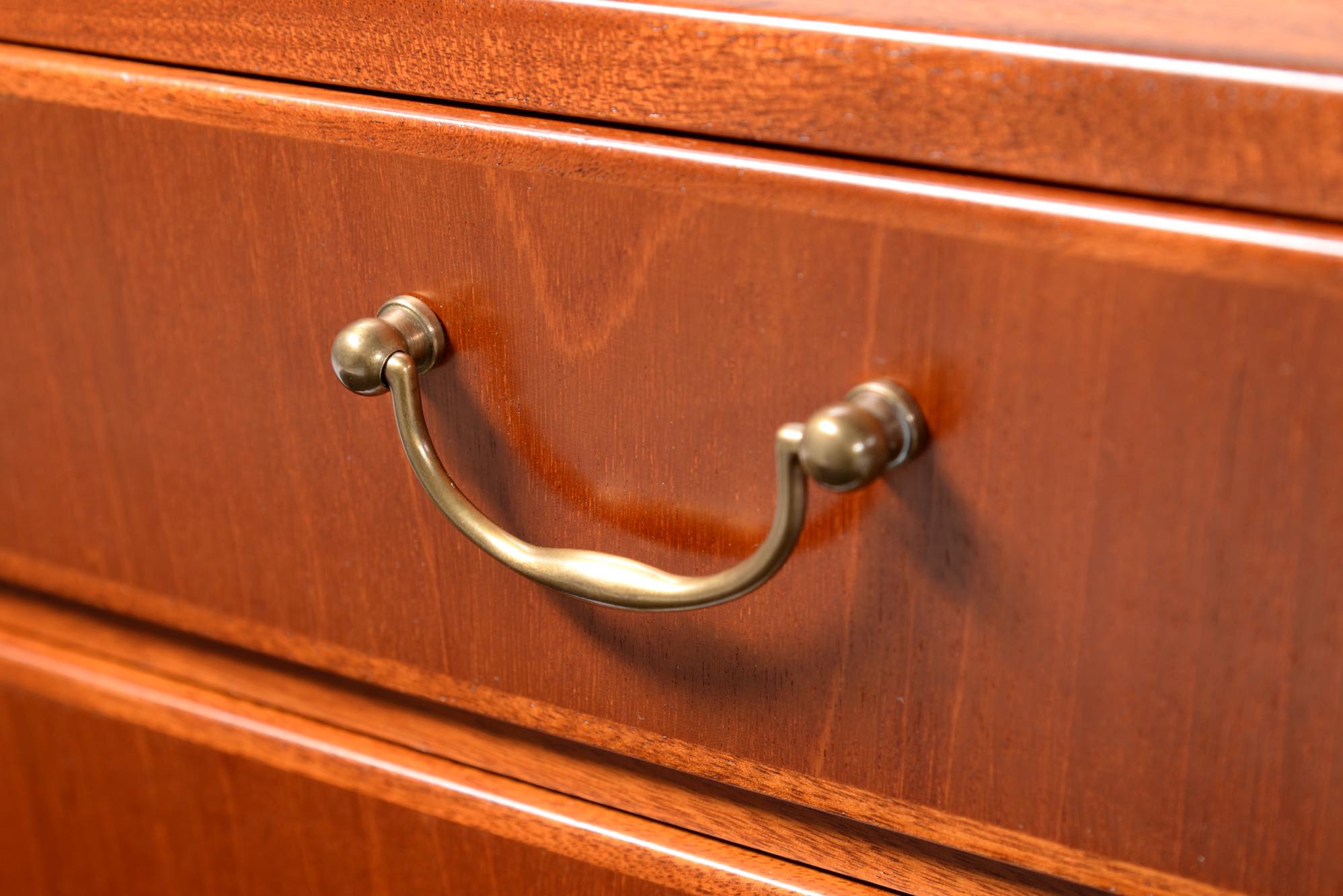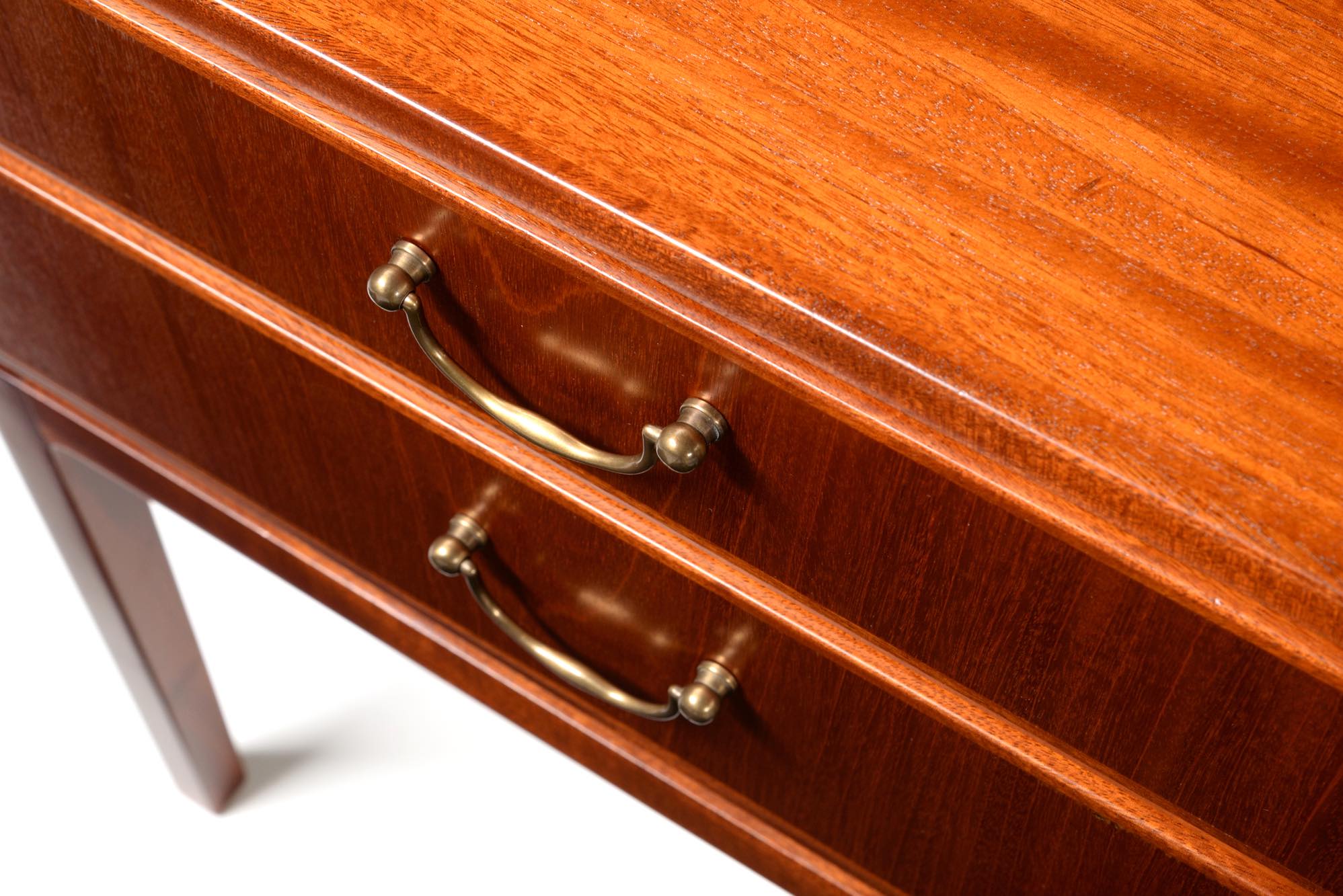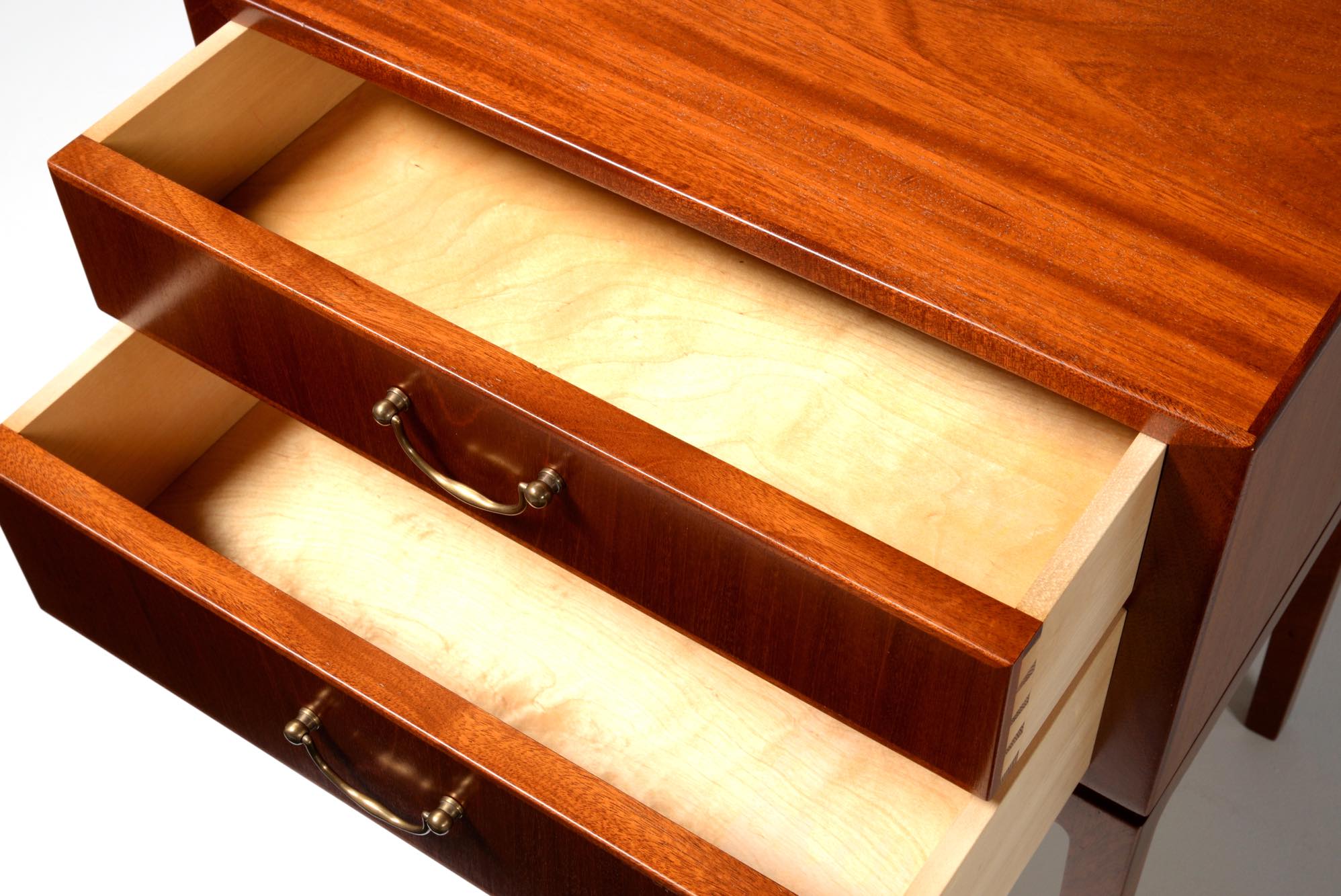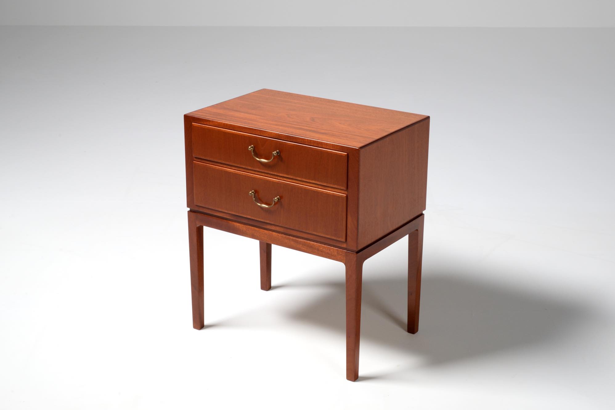 デンマークの家具工房、K.Thomsenによって作られた小振りなチェストです。K.ThomsenはMogens Lassenによる”Shoemakers stool”を手がけた工房で、こちらのチェストは1950年代に作られたものでしょう。とても丁寧な仕事で仕上げられており、深みのあるマホガニー材に真鍮の引手が備わります。